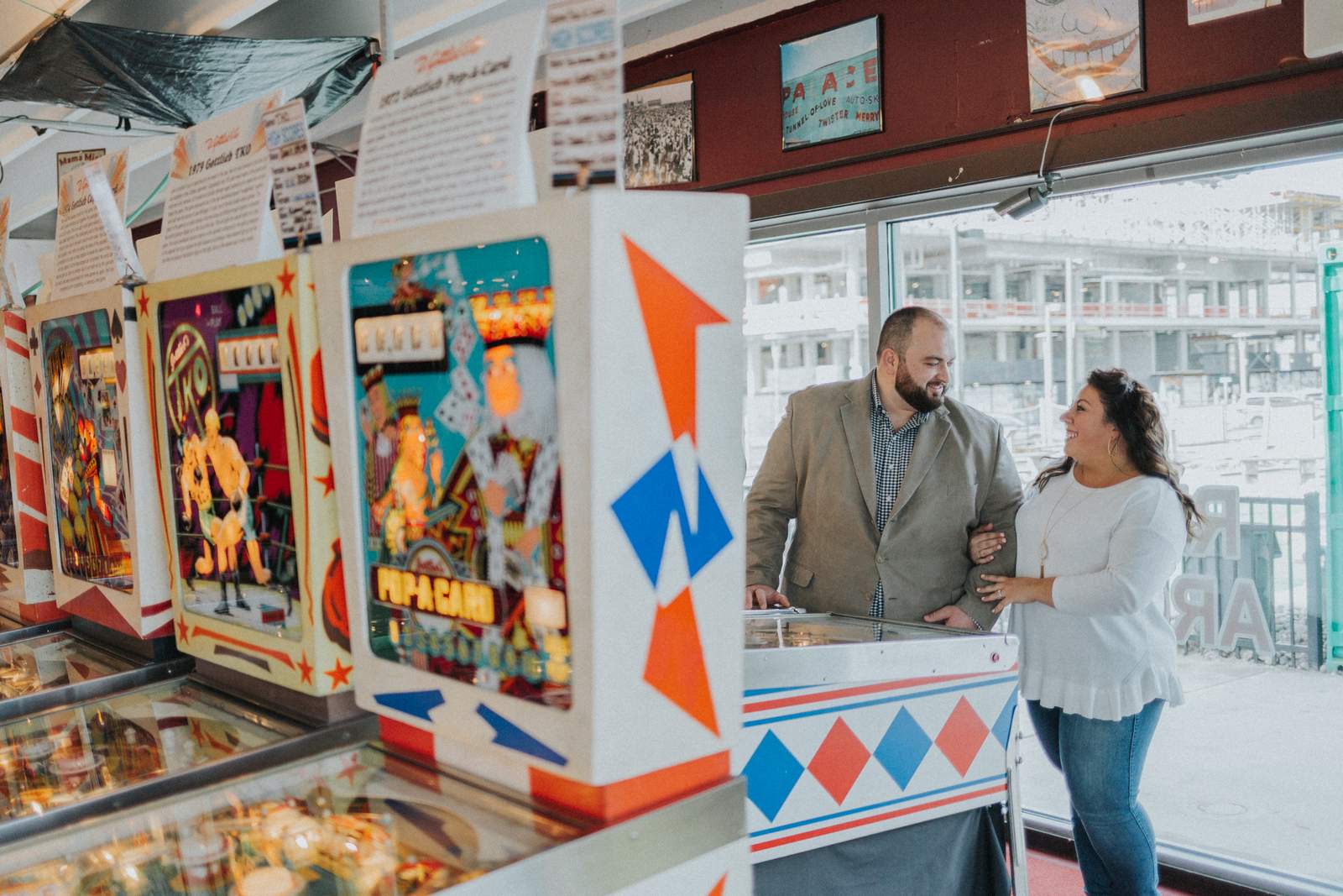 An engagement session taking place at one of our favorite jersey shore locations, Asbury Park! A town full with a artistic vibe and downright fun culture unlike like any others around. For a twist we even stopped in the Silverball Museum which is full of awesome retro pinball arcade machines where the couple went on one of their first dates. We had a blast taking a walk on the boardwalk, checking out the painted murals, and adventuring out onto the sand despite some cold winds. We can’t wait to photograph their wedding day later this fall!