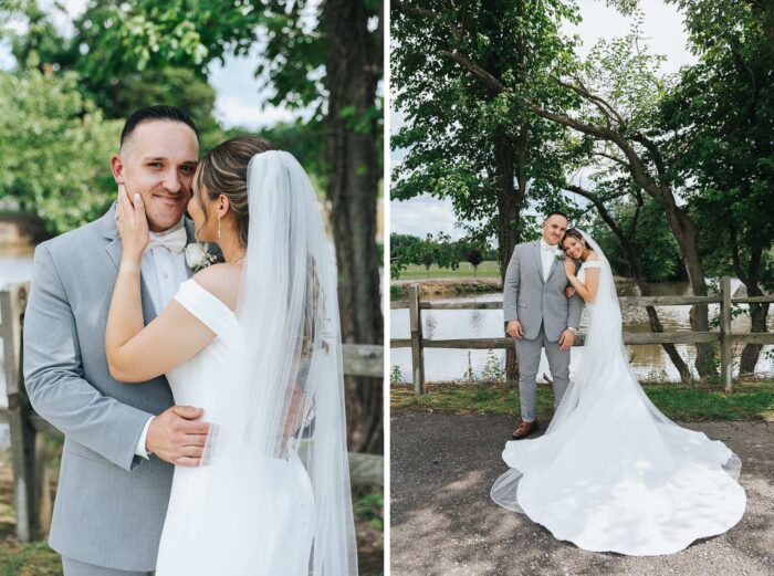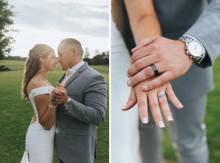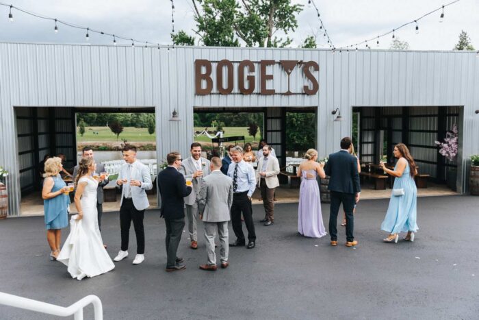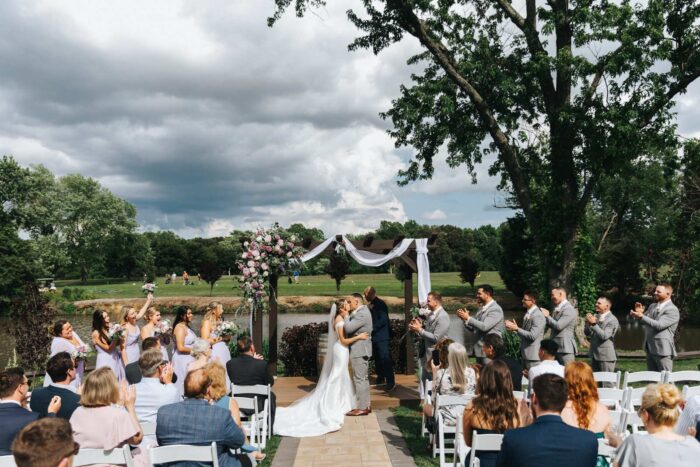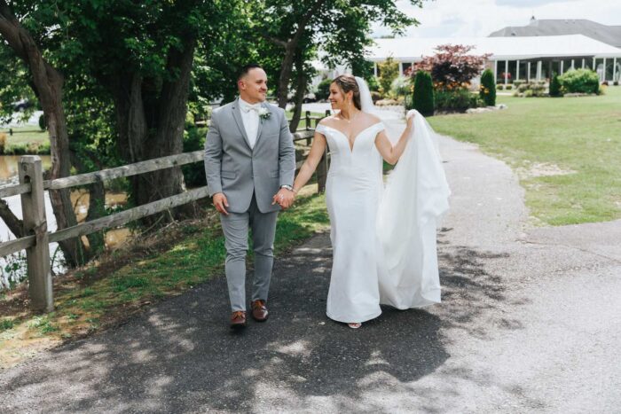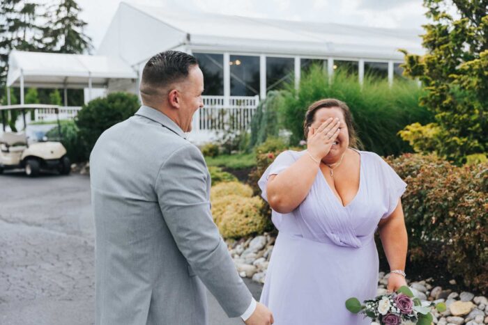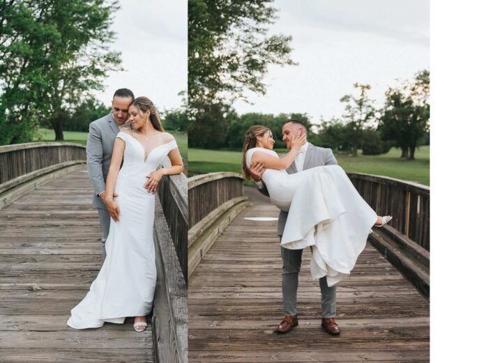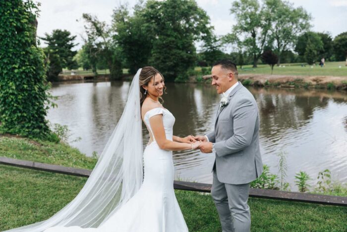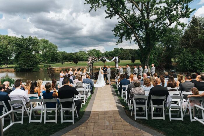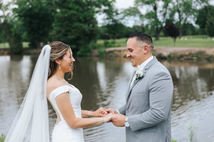 Our wedding photographs from this beautiful day taking place at the recently renovated Bogey’s located within the Pitman Golf Course in Sewell New Jersey. The bride began at her home with the finishing touches of hair and makeup before heading to Bogeys for a first look near the lake. Thought the weather kept changing on a dime we love the portraits we captured both earlier in the day before guests arrived and thenĀ again during cocktail hour and the golden hour sunset. We are pretty sure there was not a single dry eye (ours included) during the lakeside ceremony. After the entrances, first dances, and speeches guests were able to just enjoy the evening by dancing, checking out the 360 photo booth, or finding one of the many couches or lawn games spread around outdoors in the cocktail our area. We hope you enjoy looking at these photographs from Bogey’s below and can’t wait to photograph there again!