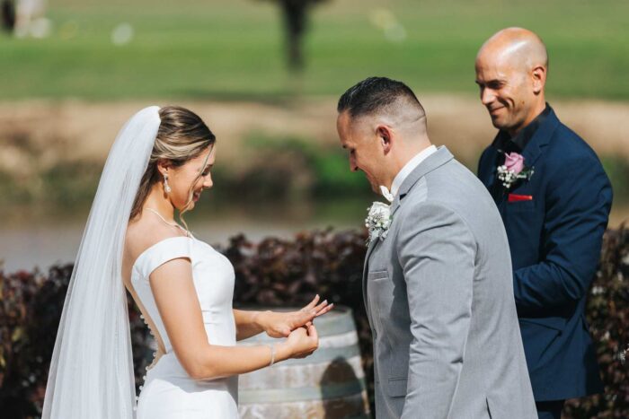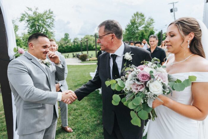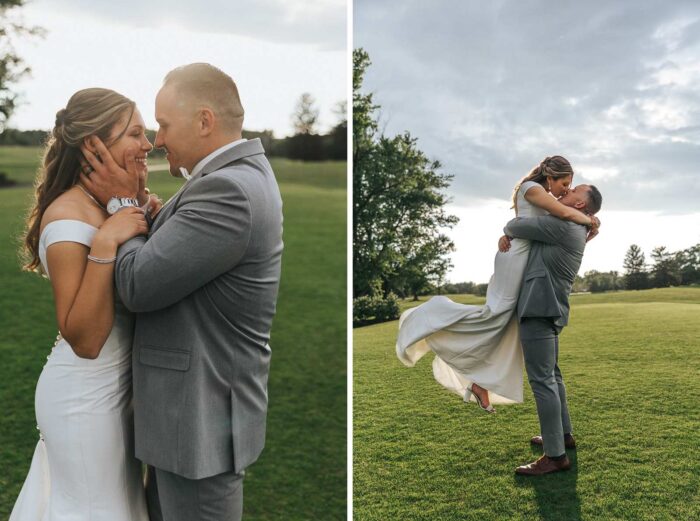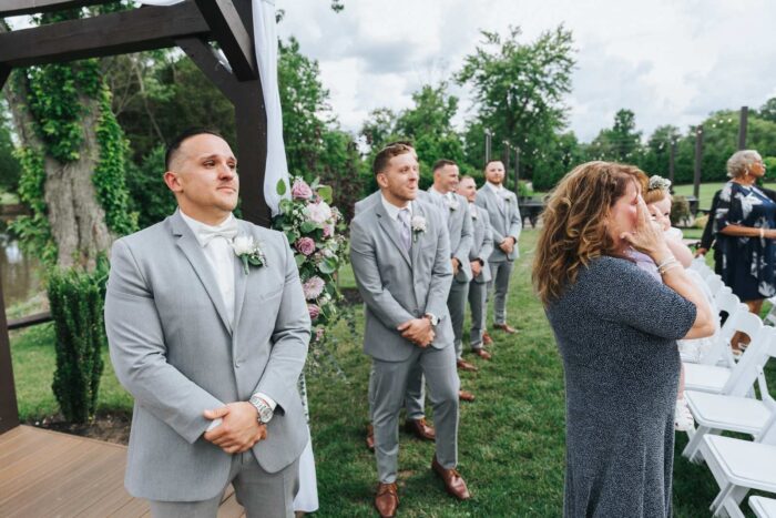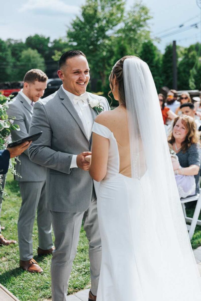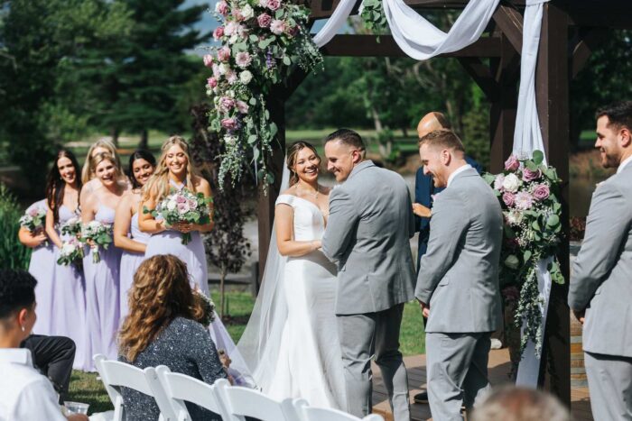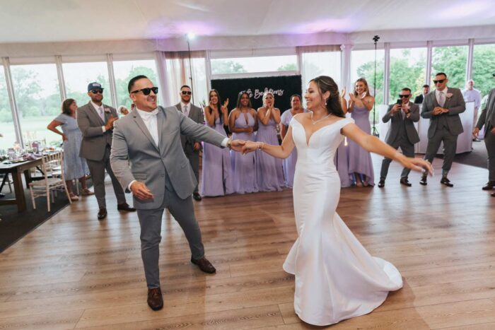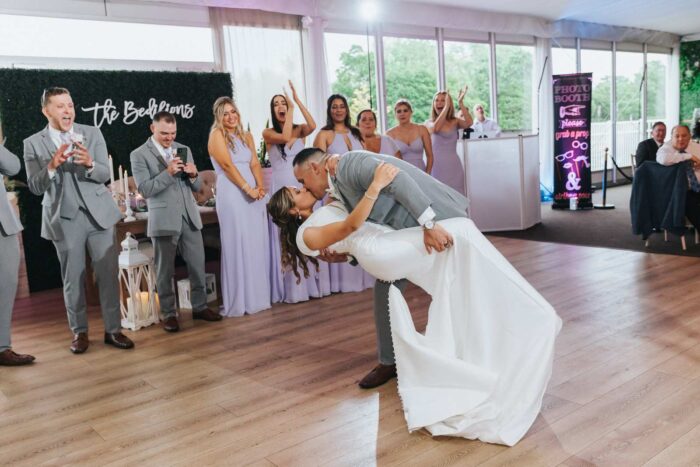 Our wedding photographs from this beautiful day taking place at the recently renovated Bogey’s located within the Pitman Golf Course in Sewell New Jersey. The bride began at her home with the finishing touches of hair and makeup before heading to Bogeys for a first look near the lake. Thought the weather kept changing on a dime we love the portraits we captured both earlier in the day before guests arrived and thenĀ again during cocktail hour and the golden hour sunset. We are pretty sure there was not a single dry eye (ours included) during the lakeside ceremony. After the entrances, first dances, and speeches guests were able to just enjoy the evening by dancing, checking out the 360 photo booth, or finding one of the many couches or lawn games spread around outdoors in the cocktail our area. We hope you enjoy looking at these photographs from Bogey’s below and can’t wait to photograph there again!