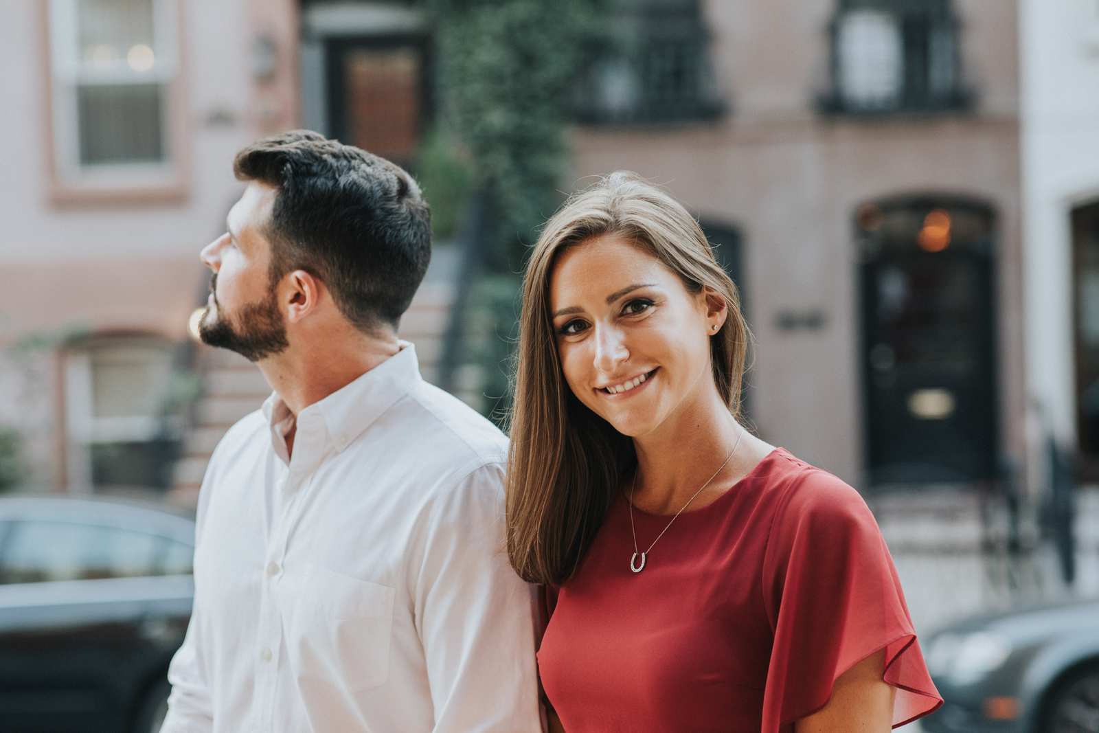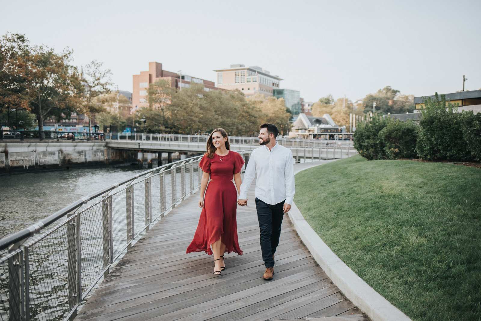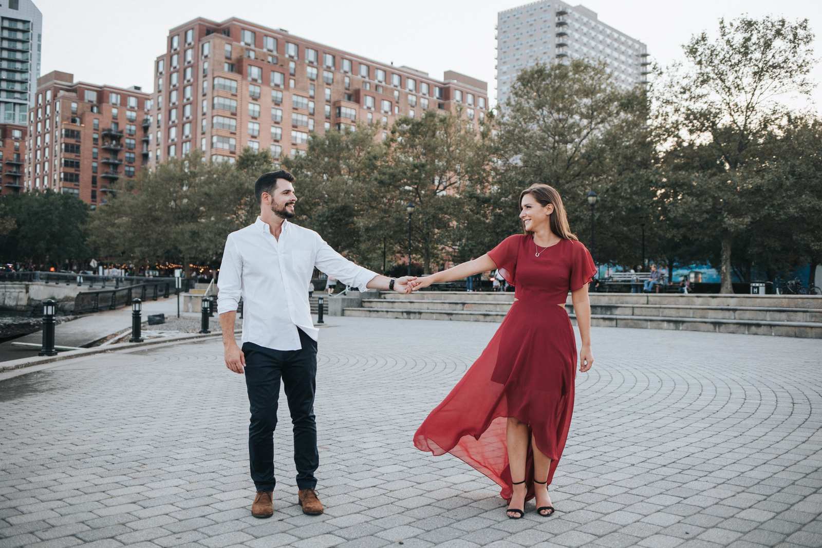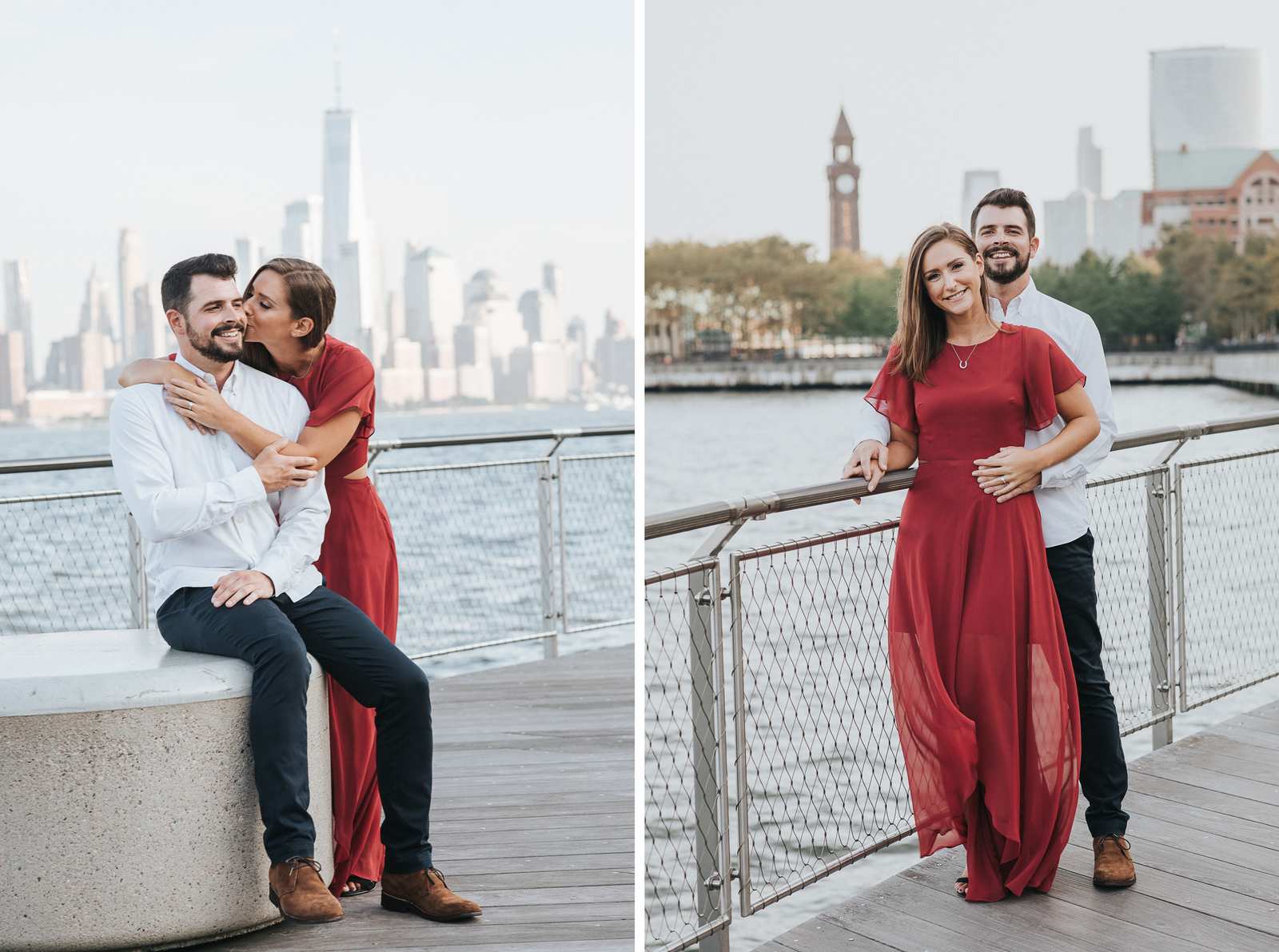 Hoboken is always an amazing spot for engagement photos as a town with a great vibe of its own but also because of the views of NYC. There are so many of options all within a short walk of the waterfront area that there is something for everyone who wants the urban feel. We met the couple and began photographing at the pier parks which extend into the Hudson River. We love using them every time we are in Hoboken because they provide completely unobstructed views of the New York City skyline but still keep a traditional park setting with pathways, benches, and more. We then made our way uptown towards the Stevens Institute and onto the streets lined with colorful brownstones as the sun began to see in the distance. Nearby we found another of our favorites – Court Street which is still paved with cobblestones from when the city was originally built. The quaint buildings and gardens there were the perfect backdrop before walked back to the waterfront once again. There we found the Lackawanna Terminal tower beautifully lit up for some last few photos with the last bit of light still in the sky! We loved capturing the connection and love between this pair and cannot wait to photograph their wedding at Perona Farms next year.