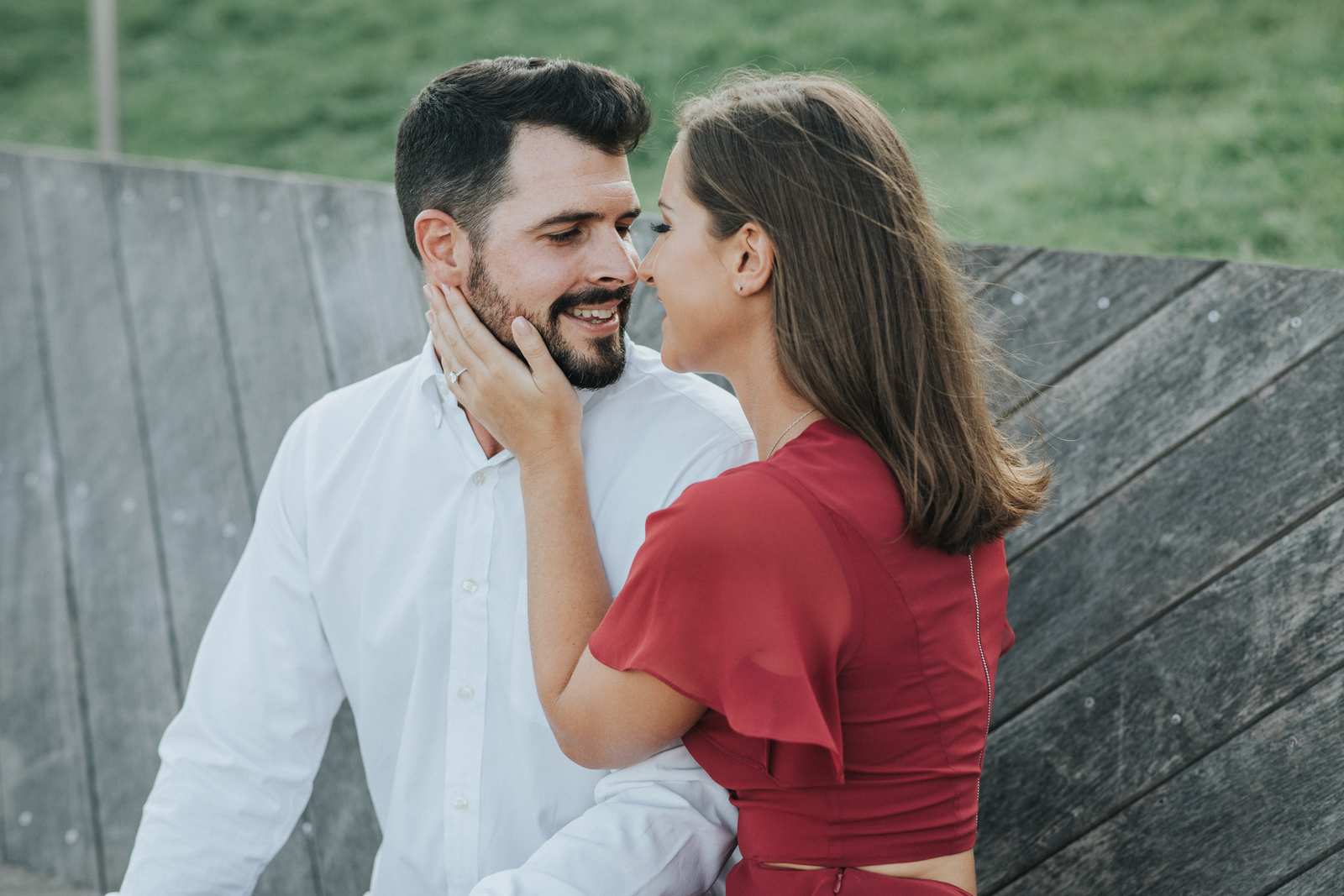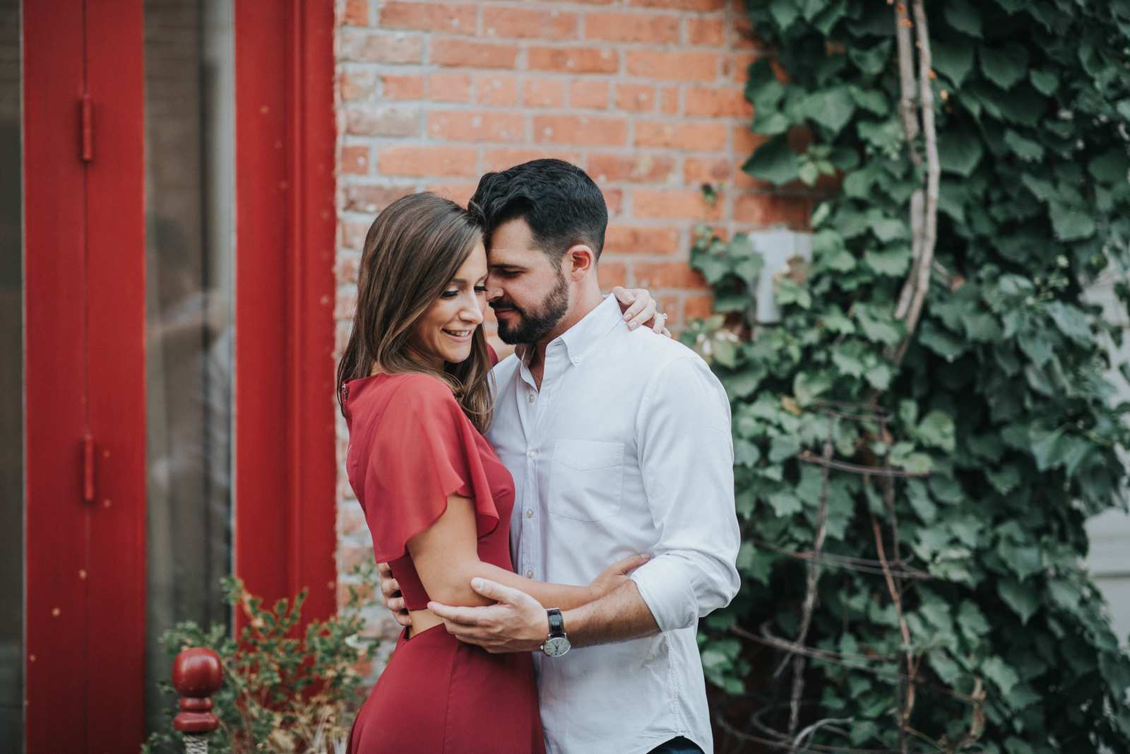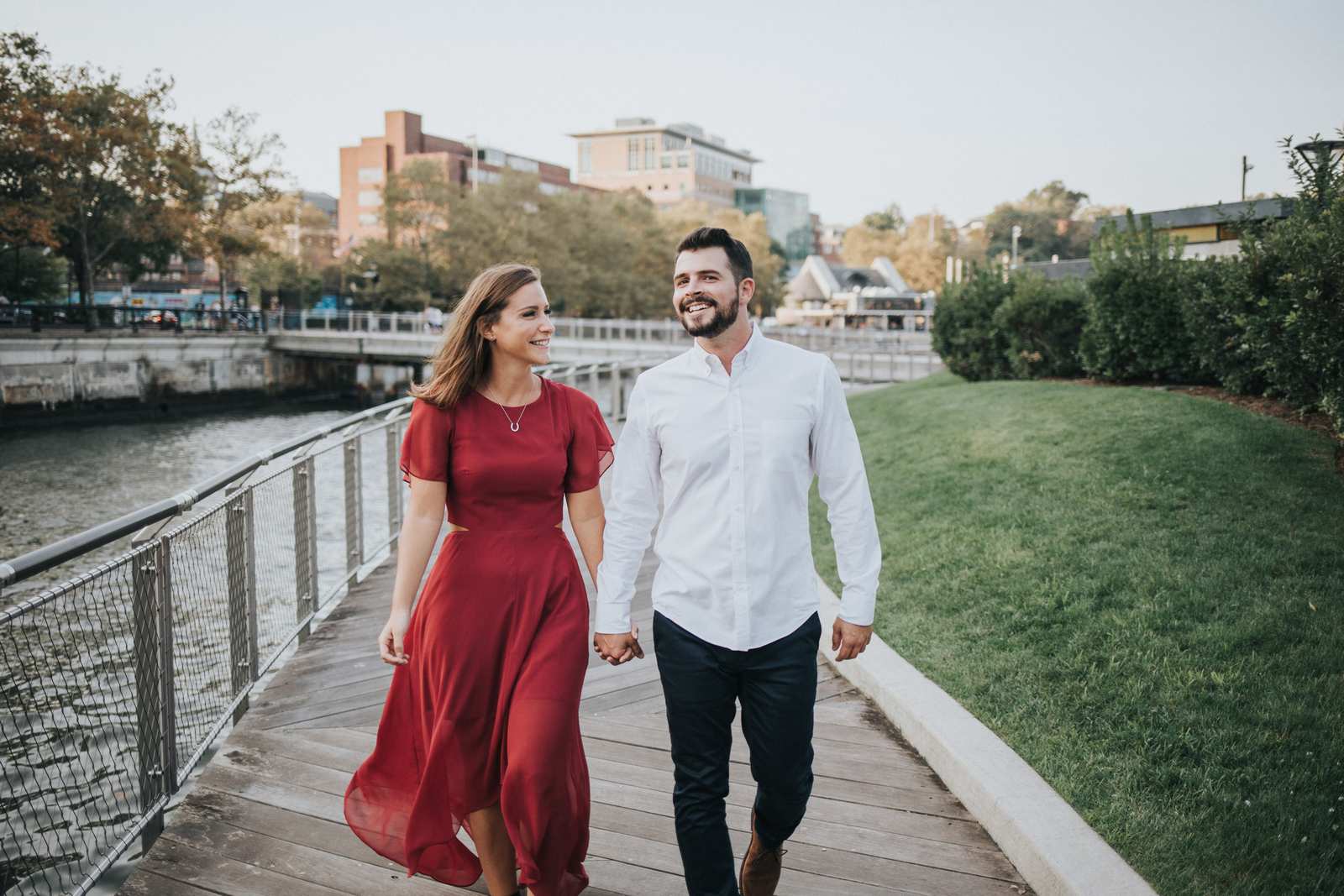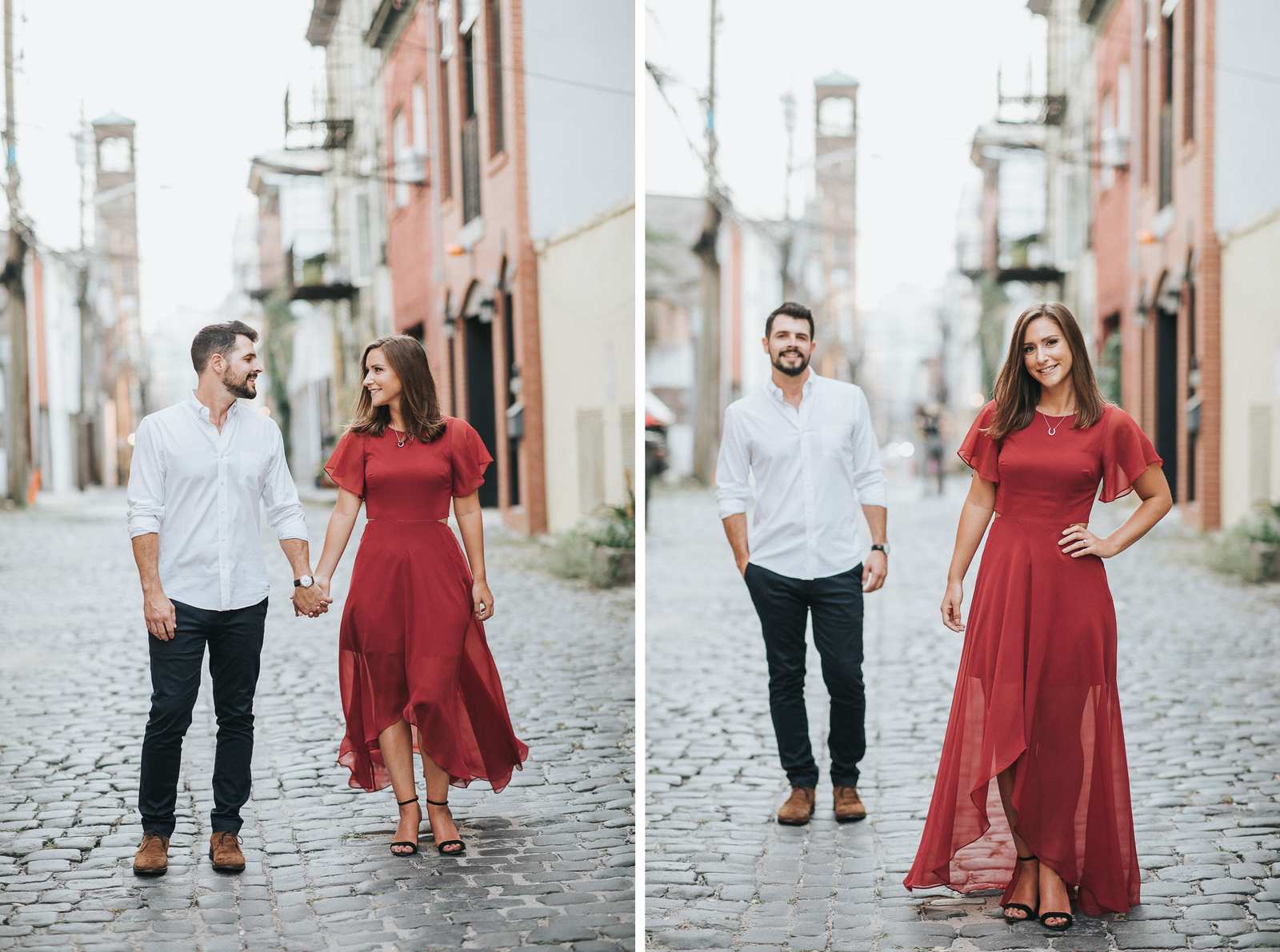 Hoboken is always an amazing spot for engagement photos as a town with a great vibe of its own but also because of the views of NYC. There are so many of options all within a short walk of the waterfront area that there is something for everyone who wants the urban feel. We met the couple and began photographing at the pier parks which extend into the Hudson River. We love using them every time we are in Hoboken because they provide completely unobstructed views of the New York City skyline but still keep a traditional park setting with pathways, benches, and more. We then made our way uptown towards the Stevens Institute and onto the streets lined with colorful brownstones as the sun began to see in the distance. Nearby we found another of our favorites – Court Street which is still paved with cobblestones from when the city was originally built. The quaint buildings and gardens there were the perfect backdrop before walked back to the waterfront once again. There we found the Lackawanna Terminal tower beautifully lit up for some last few photos with the last bit of light still in the sky! We loved capturing the connection and love between this pair and cannot wait to photograph their wedding at Perona Farms next year.