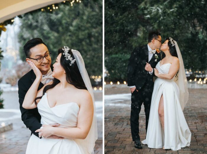 But we quickly went outside under the awning in the front of the building and the bride near the ceremony space for some winter portraits in the snow!