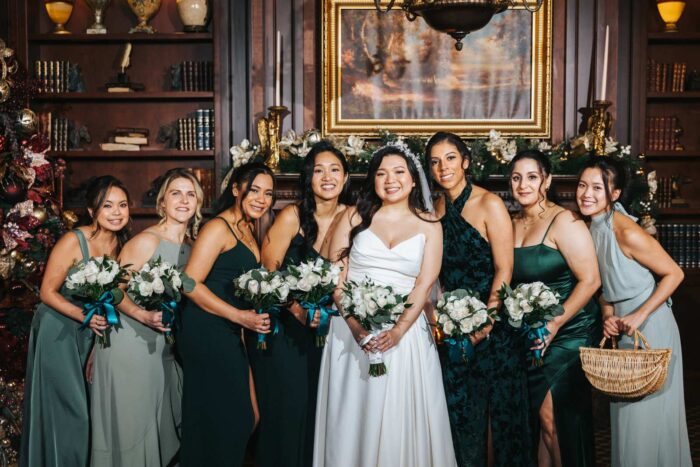 The bride getting ready surrounded by her crew of bridesmaids in the Nanina’s upstairs bridal suite.
