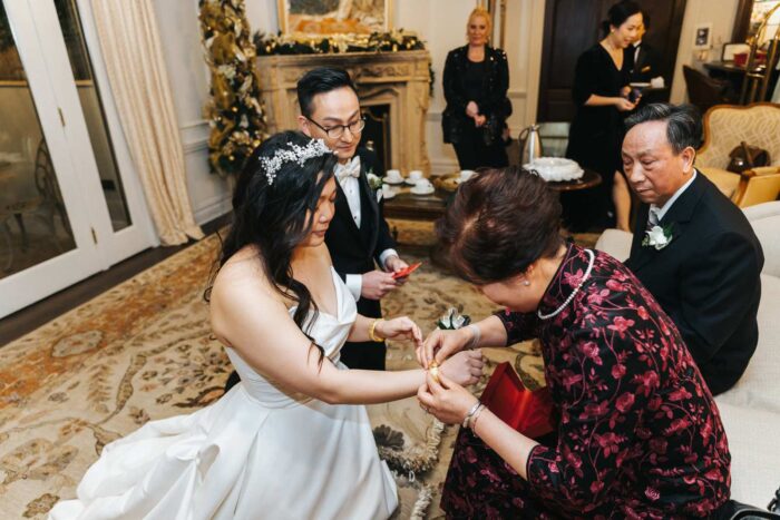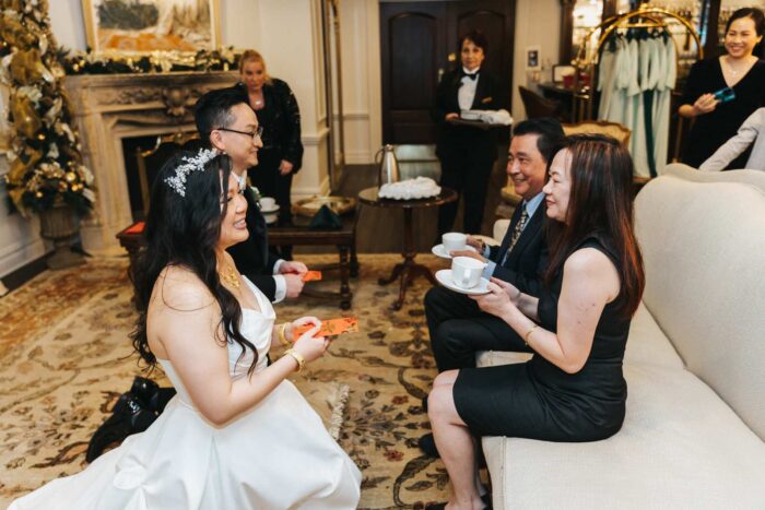 A quick traditional Chinese tea ceremony back in the bridal suite before cocktail hour