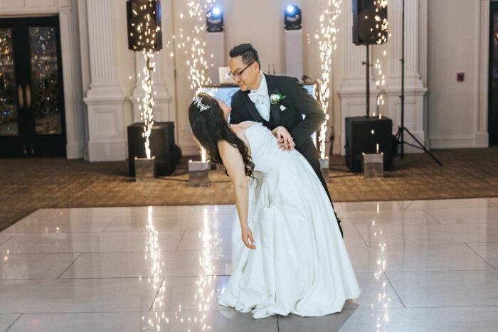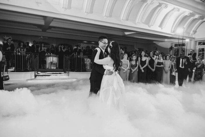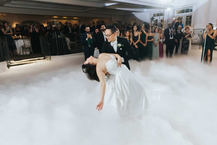 The couple then made their entrances into the reception which directly led into the first dances and toasts. The song for the first dance was sung by one of the bridesmaids and featured a smokey cloud from the DJ.