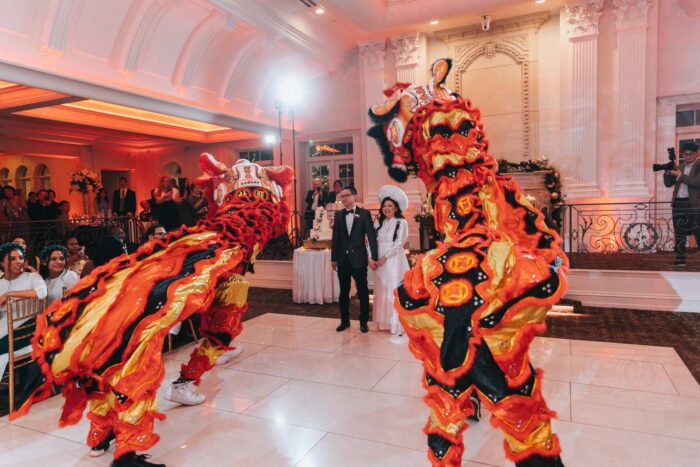 After the main events of the reception, the couple did a quick outfit change and did another set of entrances followed by the Chinese Dragon Dance crew!