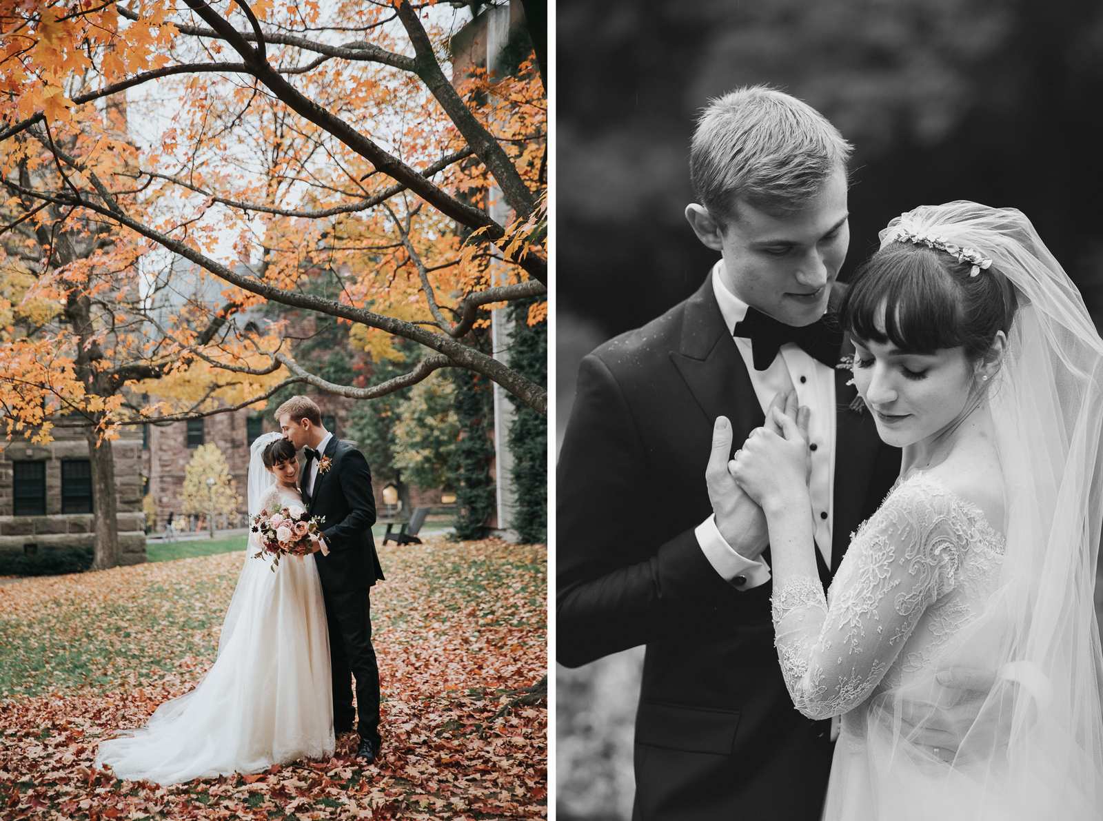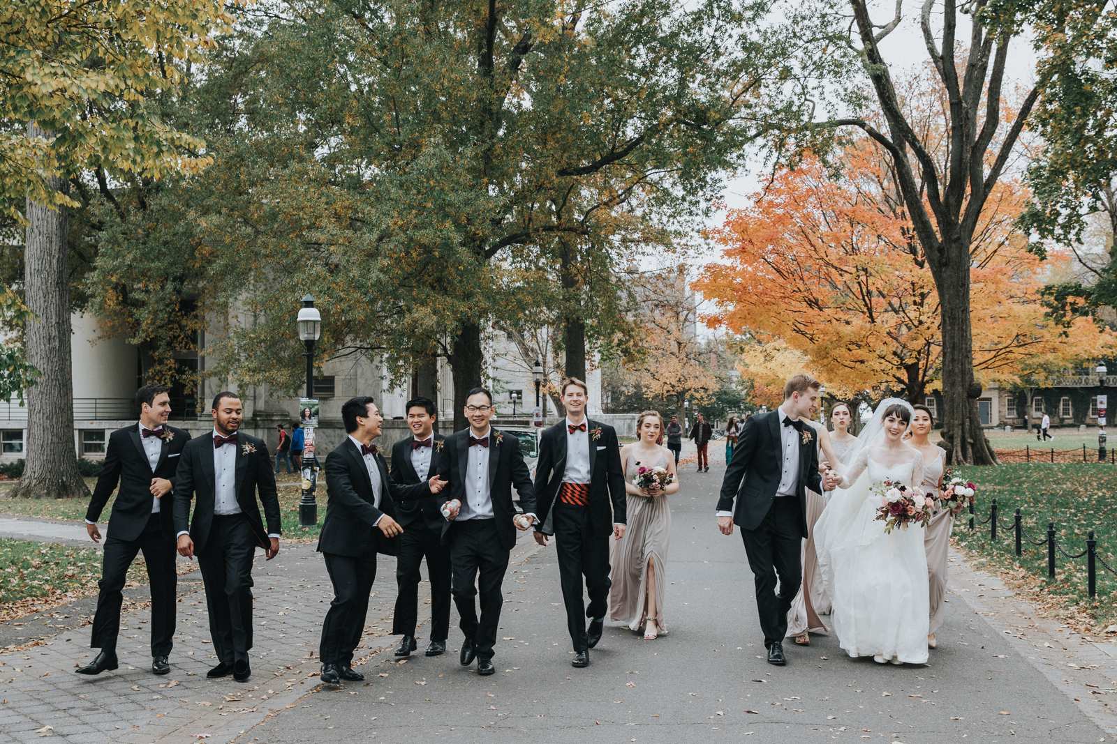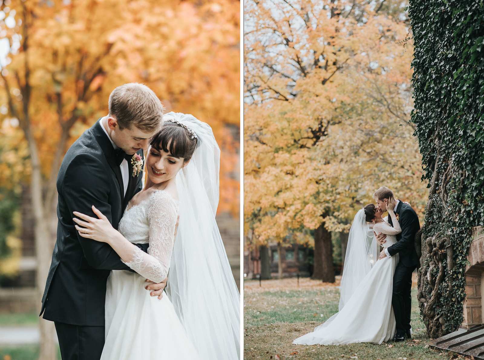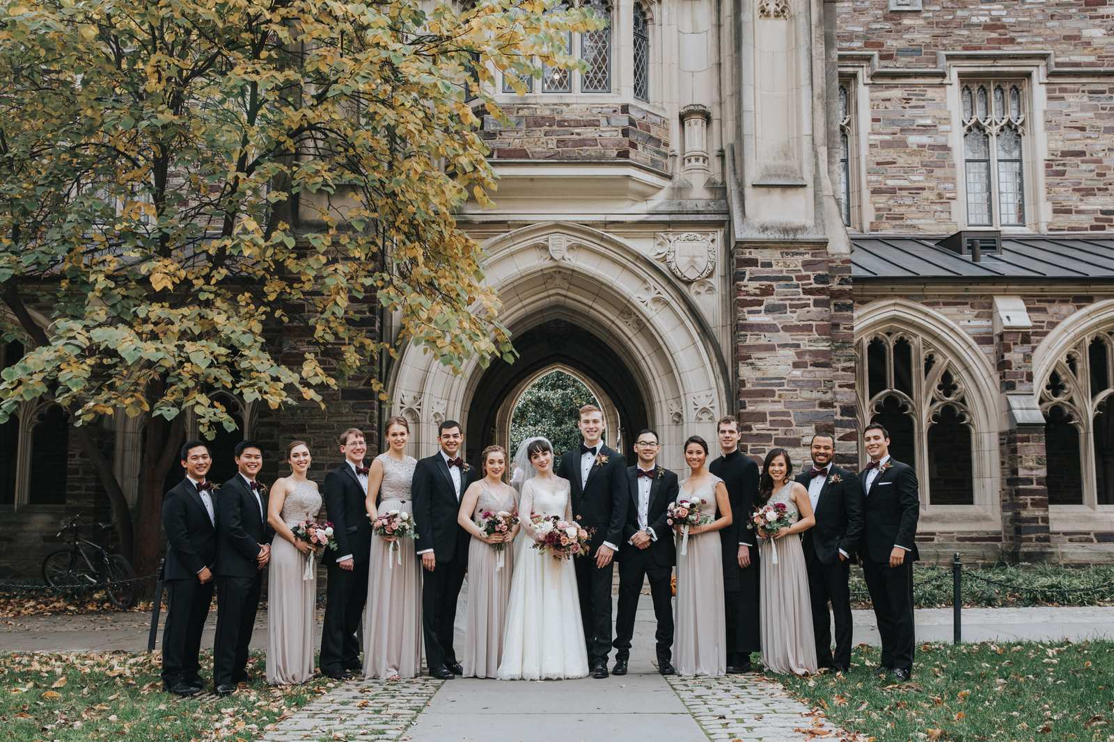 Both Princeton University and the surrounding town are one of our favorites places to photograph both wedding days and engagement sessions. But this wedding with this wonderful couple is near our all time favorite from the area. We began capturing all the getting ready activities of the guys and gals at the Palmer House along Nassau Street. The courtyard behind it was full of fall colors and perfect for the first look and family photos! We then walked across the campus, stopping along the way to capture bridal party photos until we reached the Princeton chapel. The unique cathedral interior with parliament style seating made for the perfect ambiance for this tradition filled marriage ceremony. Afterwards and despite a bit of rain, we took another tour of the campus to capture some photos of both the bride and groom. The cocktail and hour and reception dinner took place at the Prospect House where friends and family mingled, ate, and danced the night away! We had a ton of fun photographing this wedding day and hope you enjoy looking through some of our favorite photos that we captured along the way.