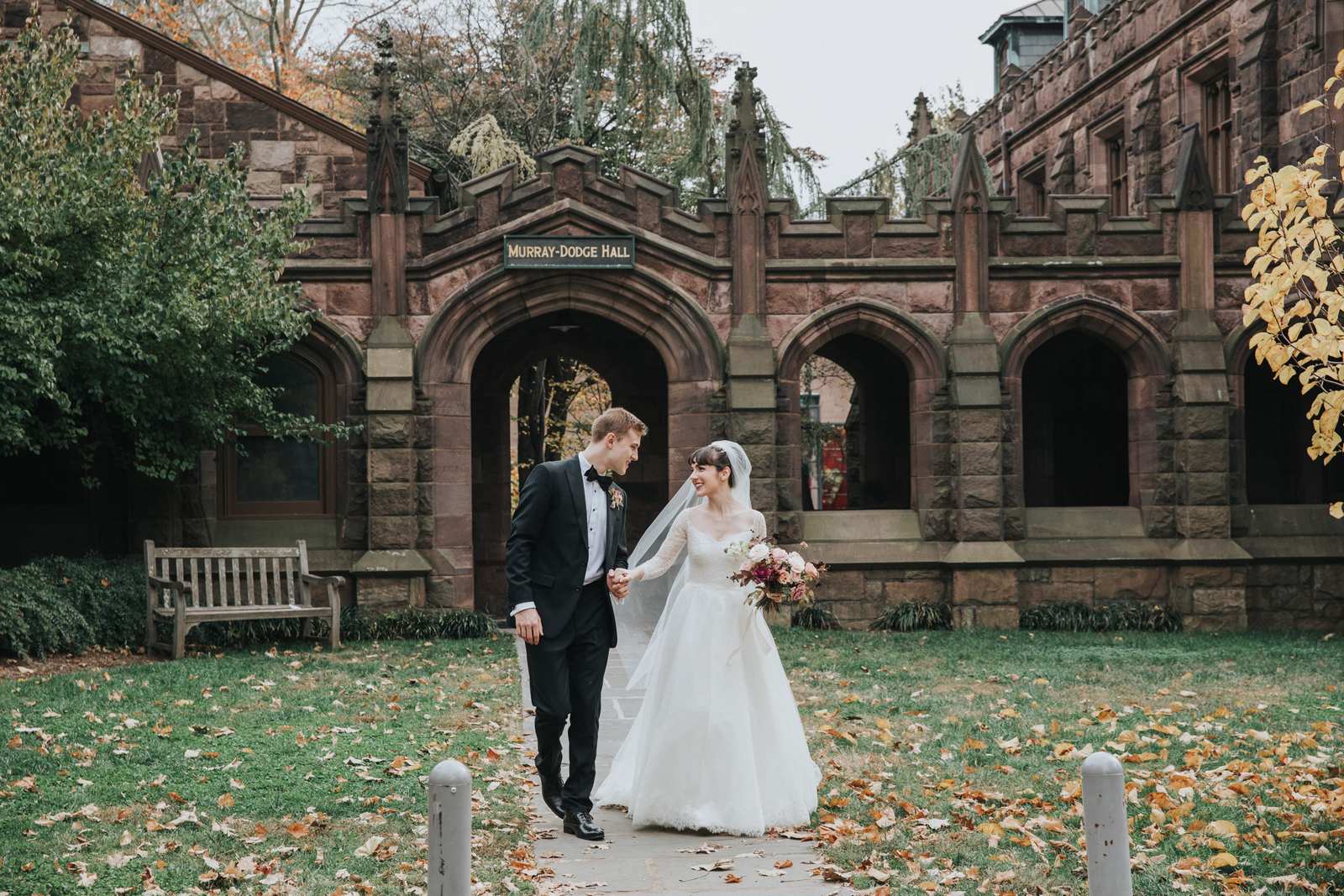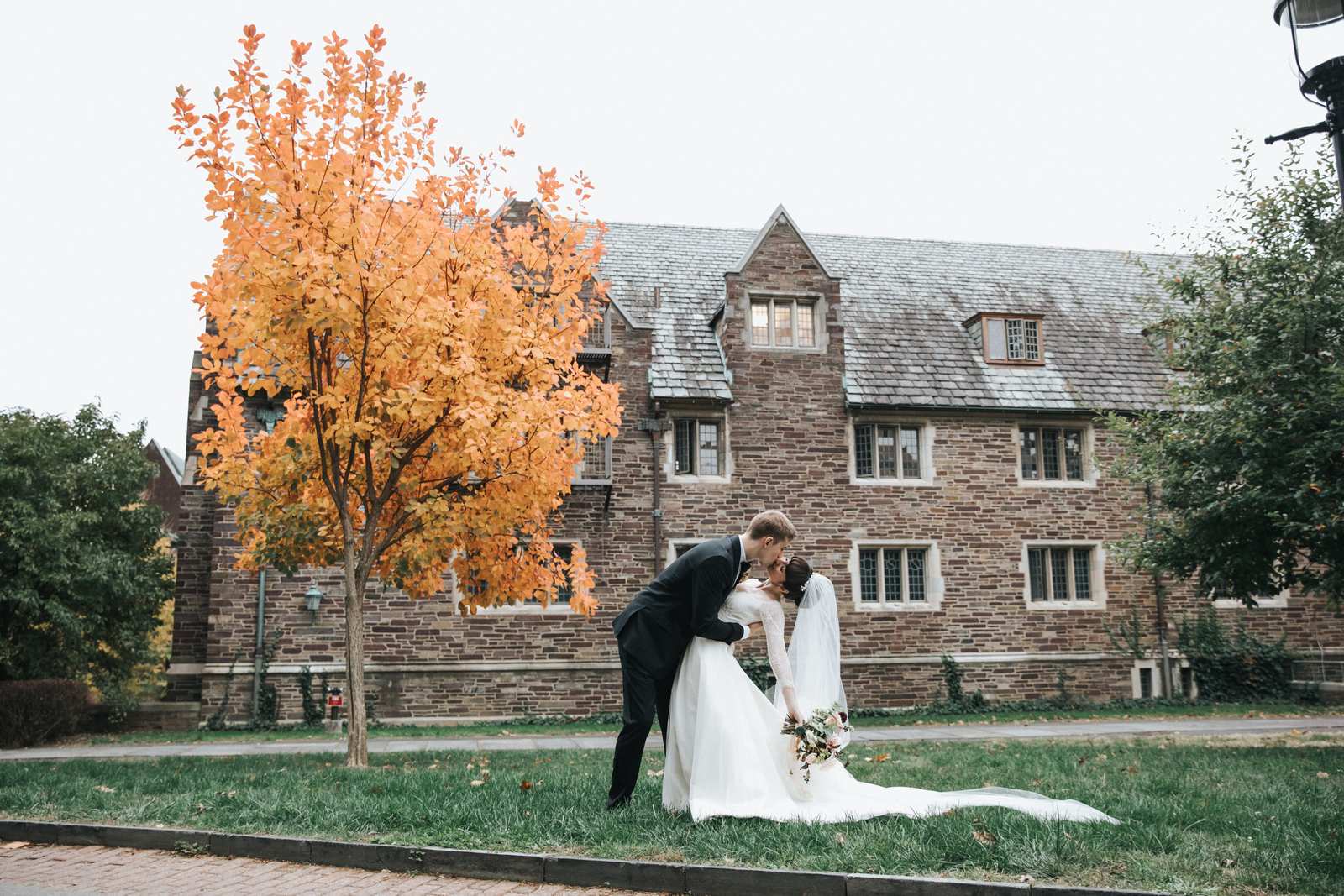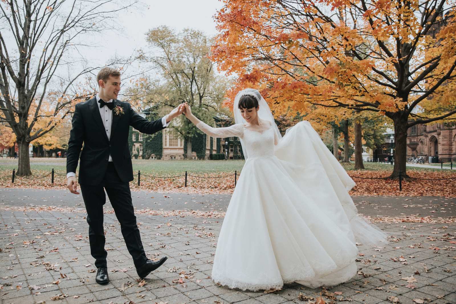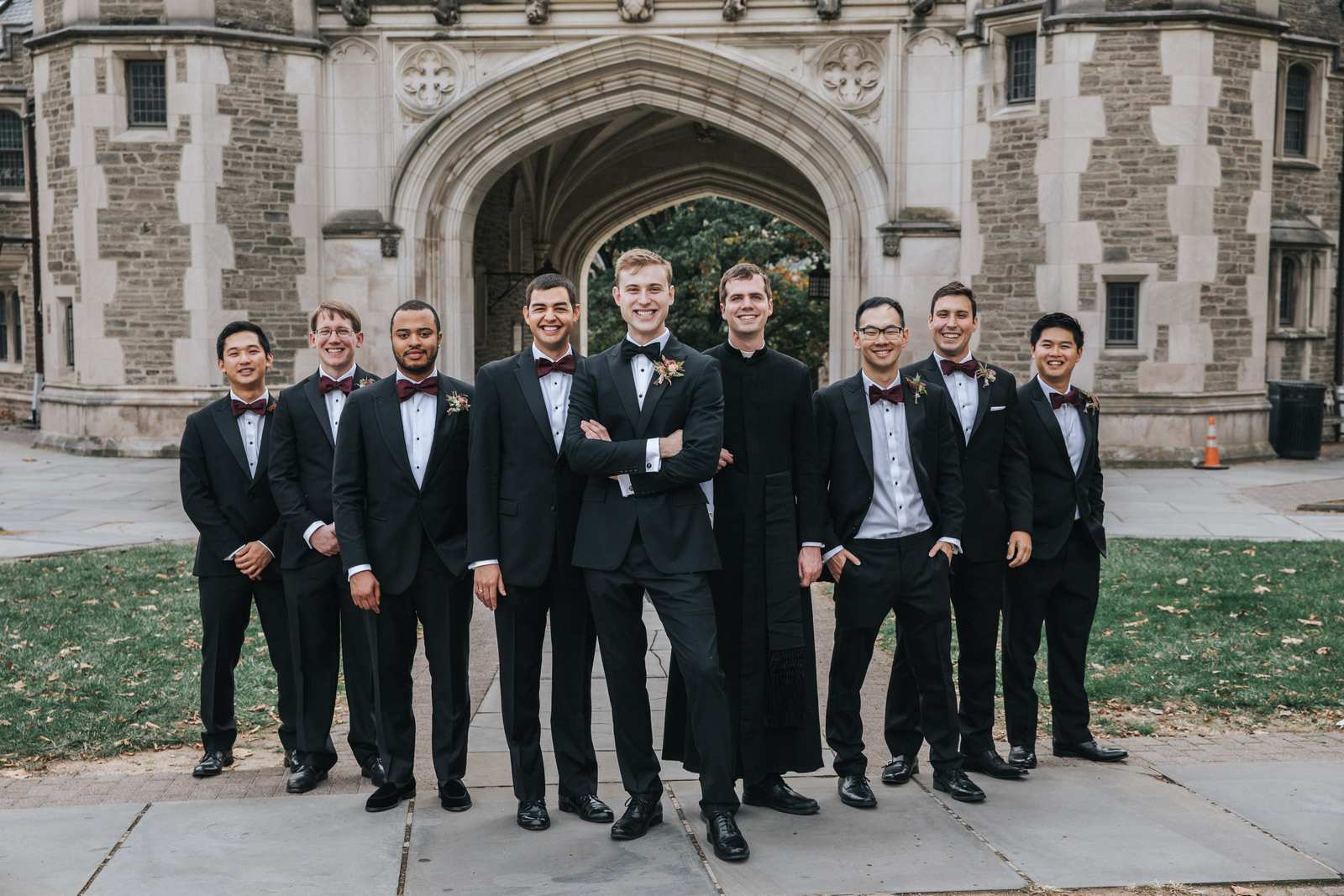 Both Princeton University and the surrounding town are one of our favorites places to photograph both wedding days and engagement sessions. But this wedding with this wonderful couple is near our all time favorite from the area. We began capturing all the getting ready activities of the guys and gals at the Palmer House along Nassau Street. The courtyard behind it was full of fall colors and perfect for the first look and family photos! We then walked across the campus, stopping along the way to capture bridal party photos until we reached the Princeton chapel. The unique cathedral interior with parliament style seating made for the perfect ambiance for this tradition filled marriage ceremony. Afterwards and despite a bit of rain, we took another tour of the campus to capture some photos of both the bride and groom. The cocktail and hour and reception dinner took place at the Prospect House where friends and family mingled, ate, and danced the night away! We had a ton of fun photographing this wedding day and hope you enjoy looking through some of our favorite photos that we captured along the way.