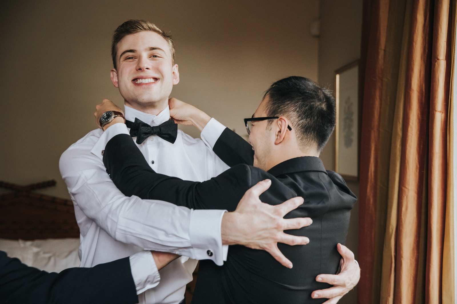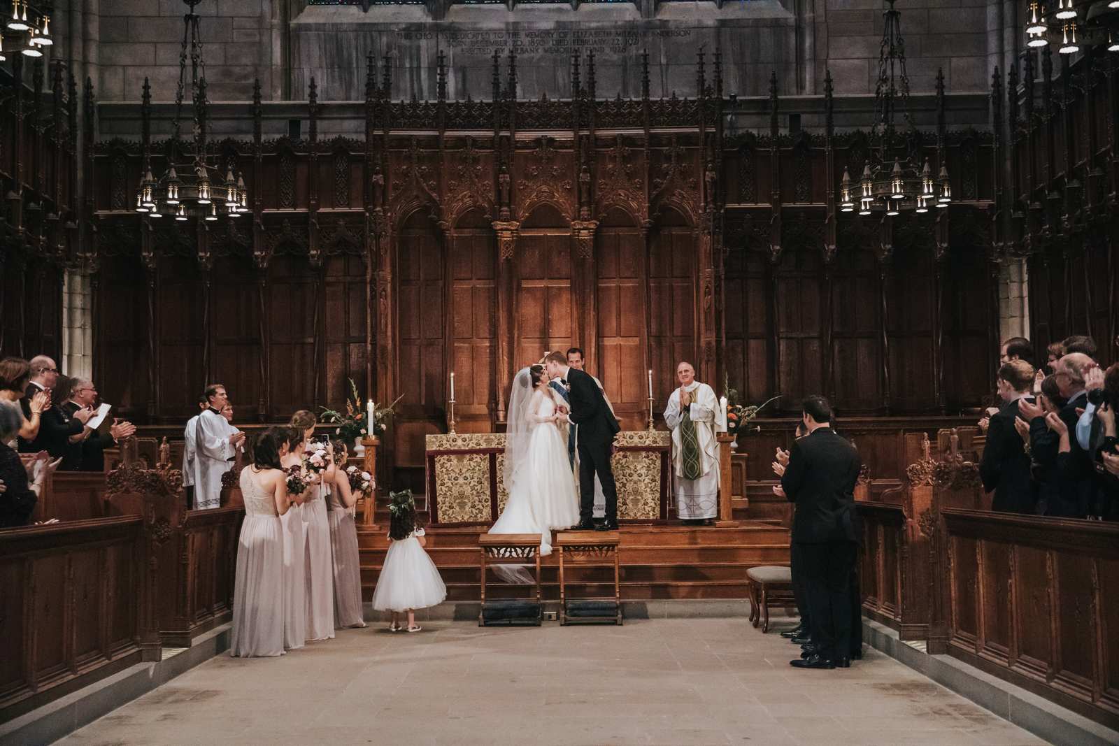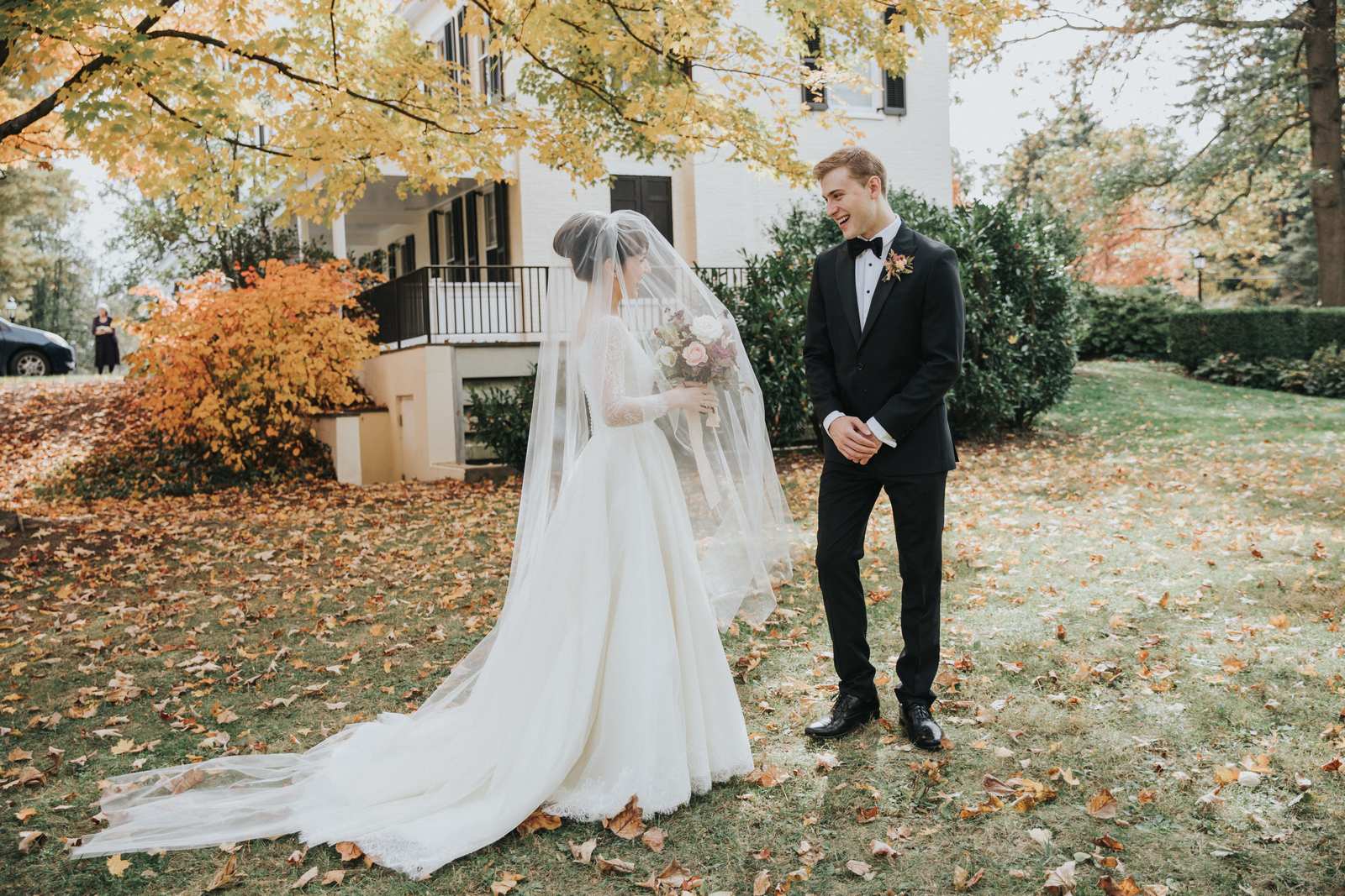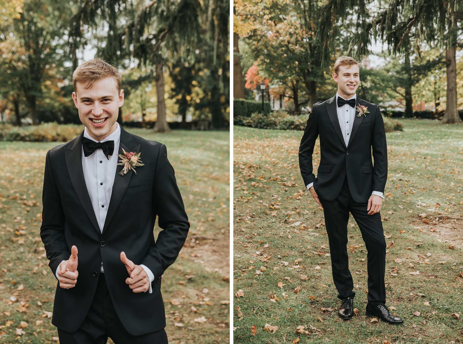 Both Princeton University and the surrounding town are one of our favorites places to photograph both wedding days and engagement sessions. But this wedding with this wonderful couple is near our all time favorite from the area. We began capturing all the getting ready activities of the guys and gals at the Palmer House along Nassau Street. The courtyard behind it was full of fall colors and perfect for the first look and family photos! We then walked across the campus, stopping along the way to capture bridal party photos until we reached the Princeton chapel. The unique cathedral interior with parliament style seating made for the perfect ambiance for this tradition filled marriage ceremony. Afterwards and despite a bit of rain, we took another tour of the campus to capture some photos of both the bride and groom. The cocktail and hour and reception dinner took place at the Prospect House where friends and family mingled, ate, and danced the night away! We had a ton of fun photographing this wedding day and hope you enjoy looking through some of our favorite photos that we captured along the way.