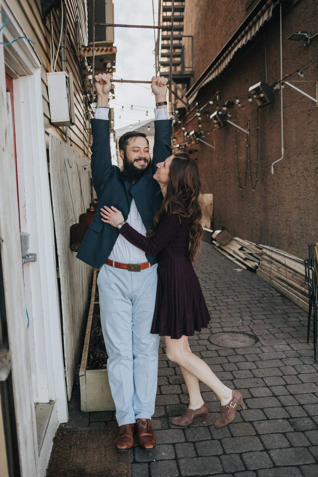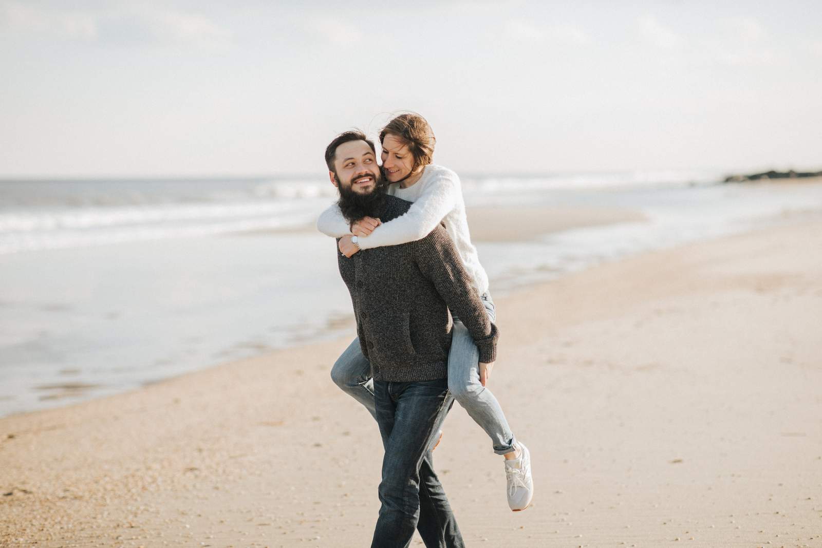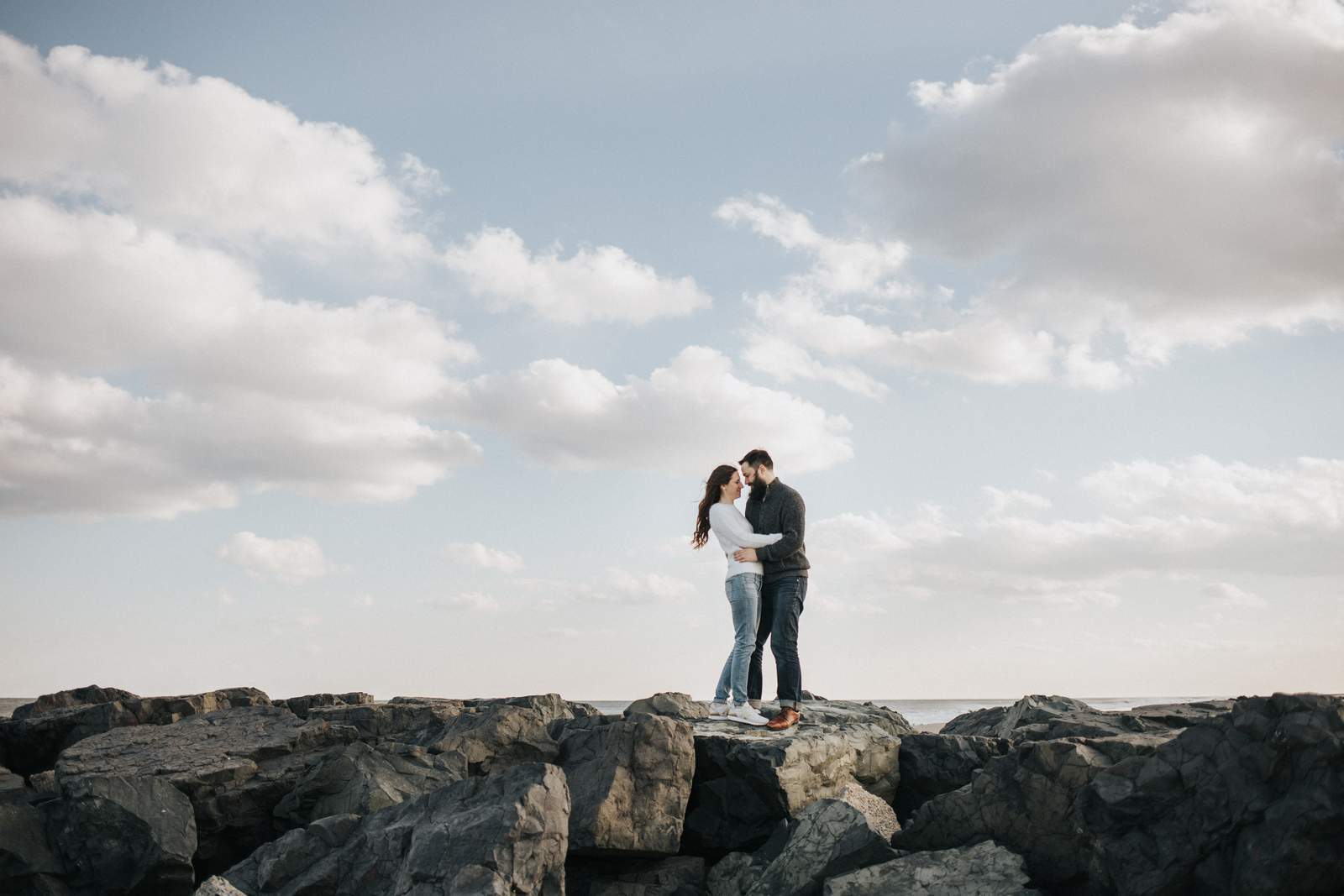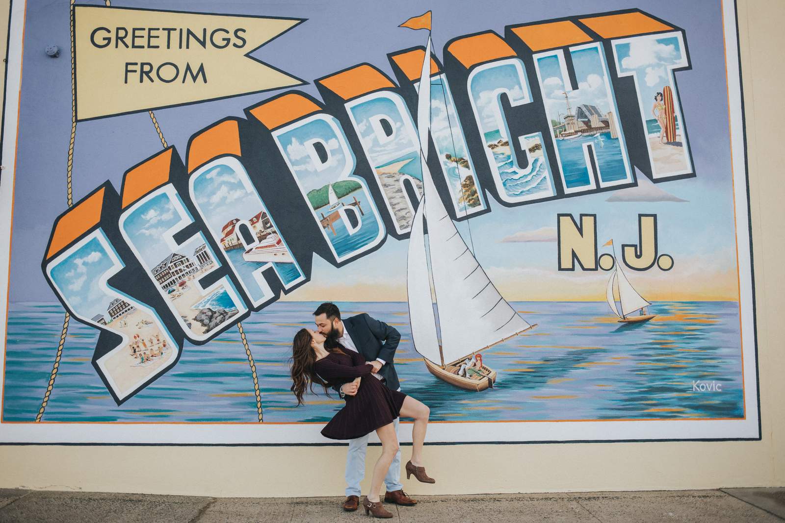 We had a blast photographing this engagement session in the small shore town of Sea Bright New Jersey. It became one of this couples favorite spots due to many trips onto the Sandy Hook beaches on the road that goes directly through the town. But after stopping by chance at one of the many restaurants and bars, they found themselves coming back again and again even outside of beach season. Despite it being a cold winter day, we found endless little spots that we feel really captured the vibe of this town and this pairs relationship with each other. From the sidewalks to little alleyways and a a giant mural, to one of the most interestingly decorate bus stops we have ever seen; we couldn’t believe the variety within just a few blocks of walking. We even hopped onto the beach for a few last photos with the sand and waves as the sun set. We can’t wait to photograph their wedding day just a few months from now and hope you enjoy looking through some of our favorite photographs from this day.