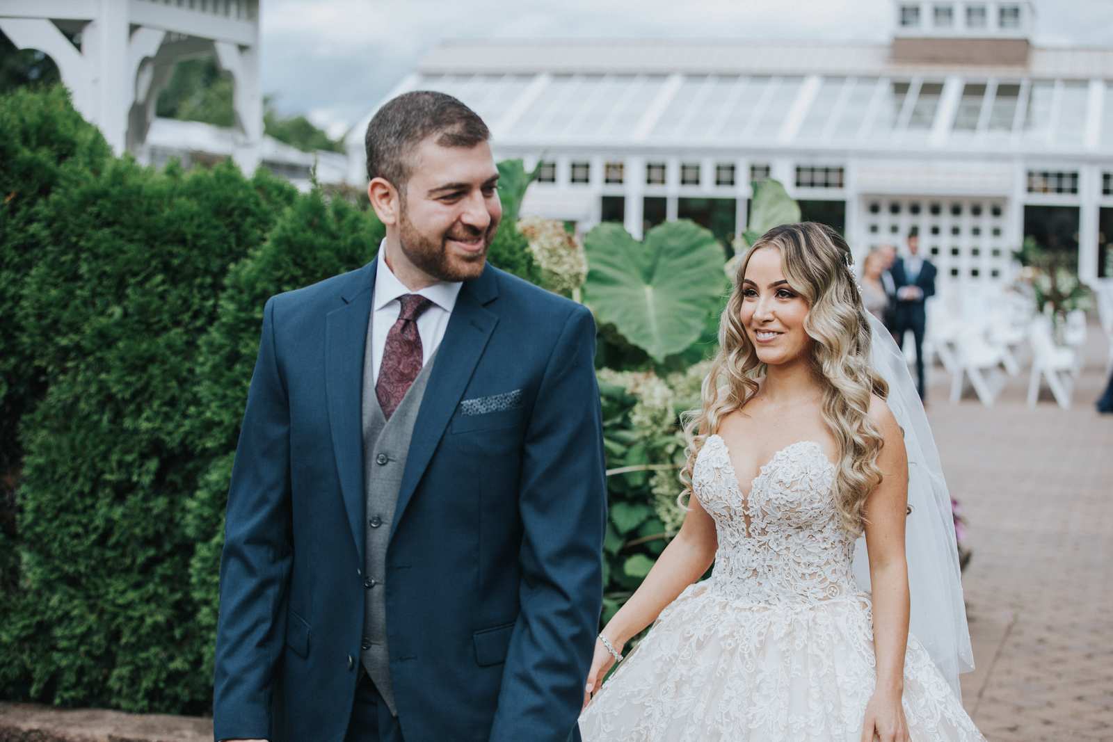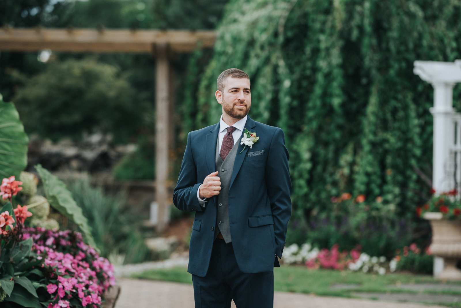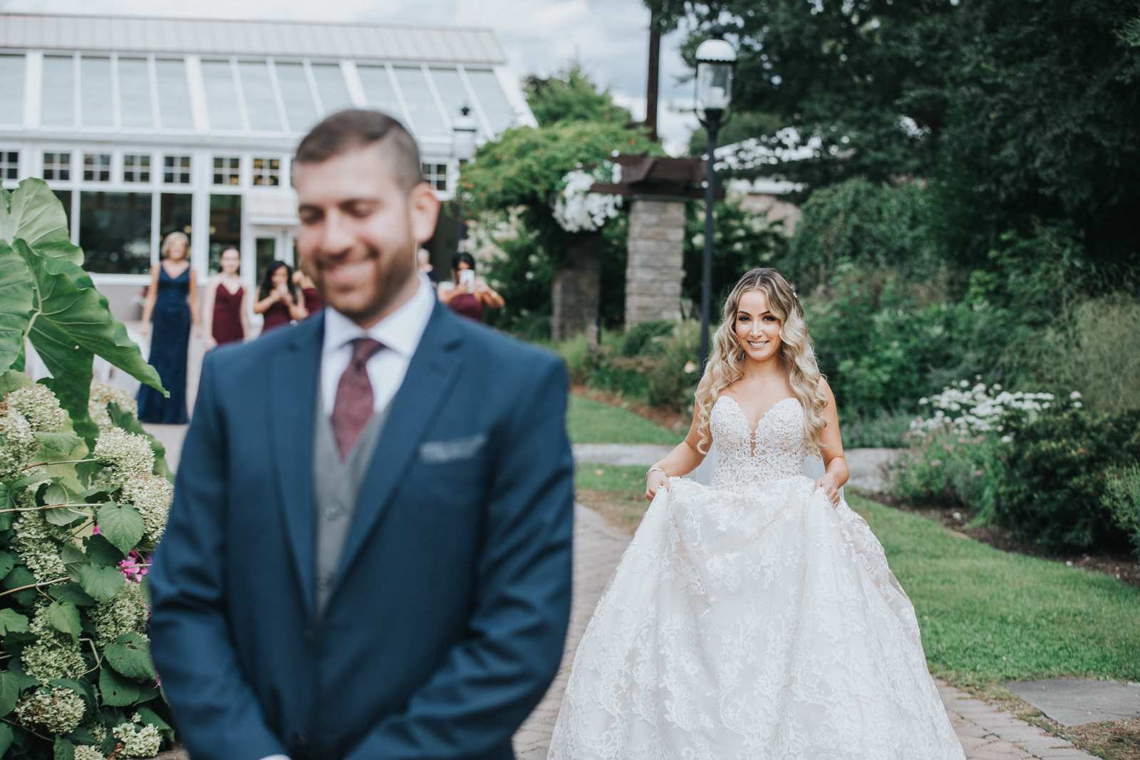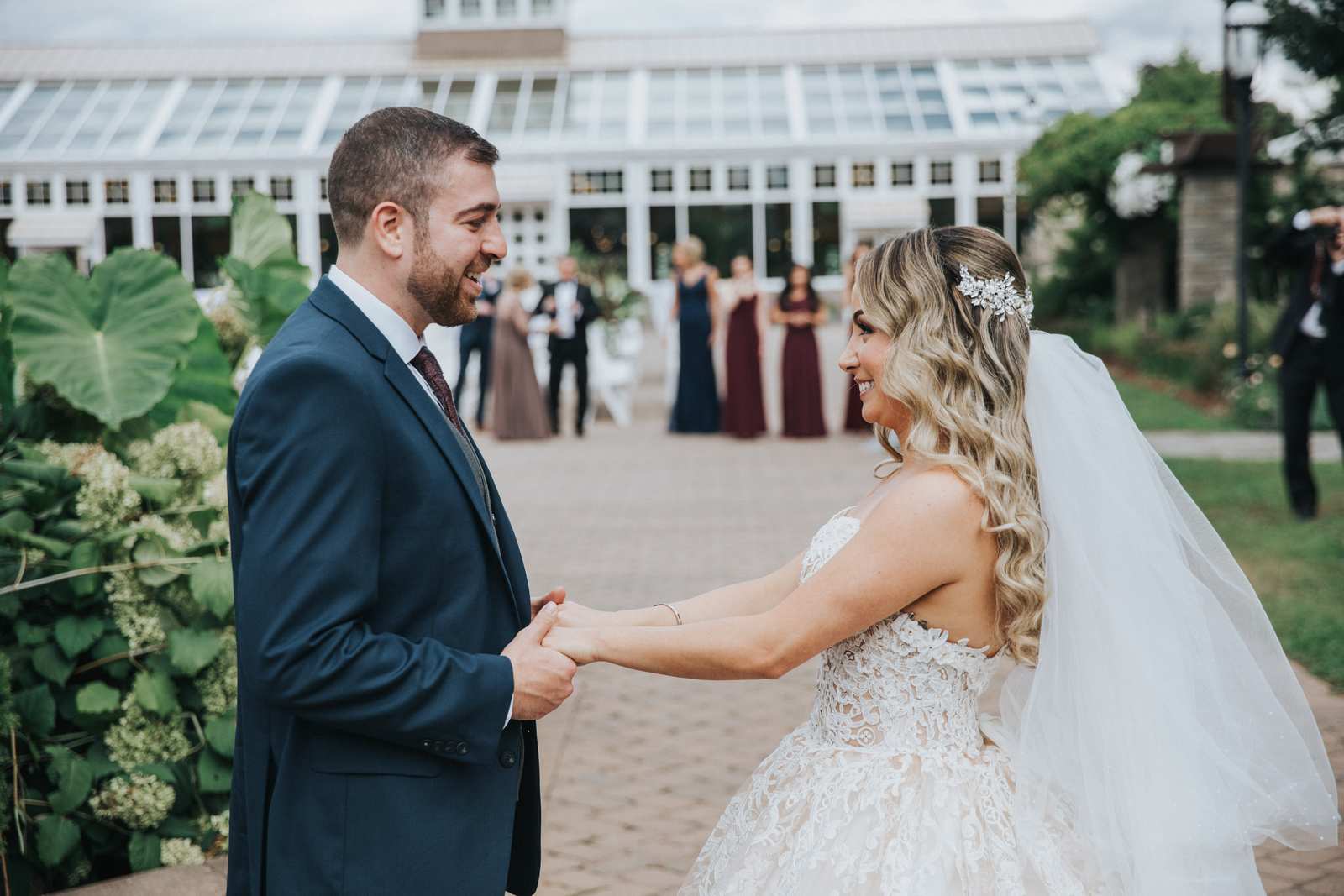After both bride and groom were ready, we moved outside to the beautifully landscaped grounds behind the Conservatory for the first look, group photos, and their portraits!