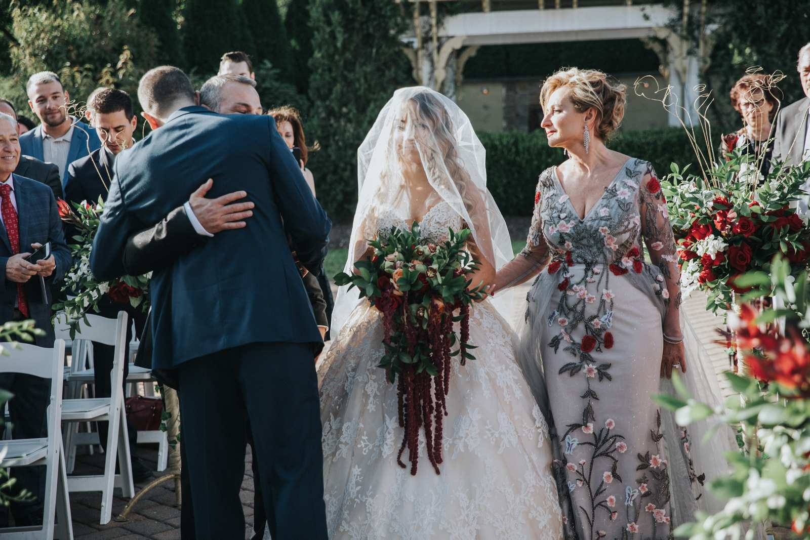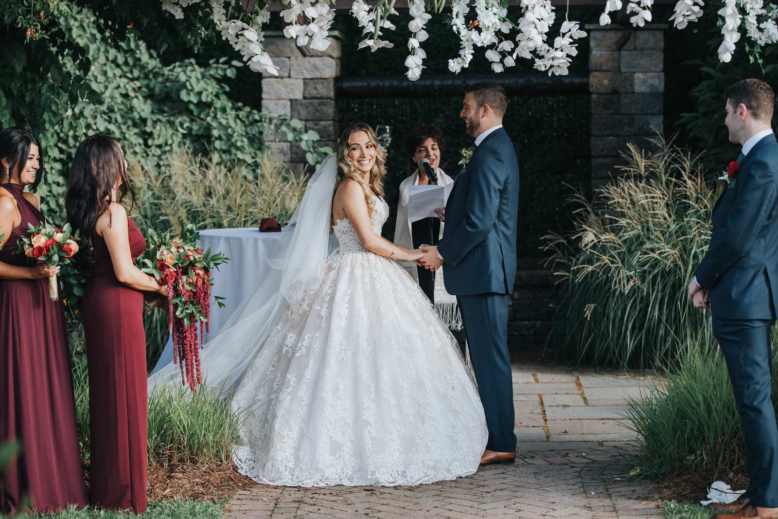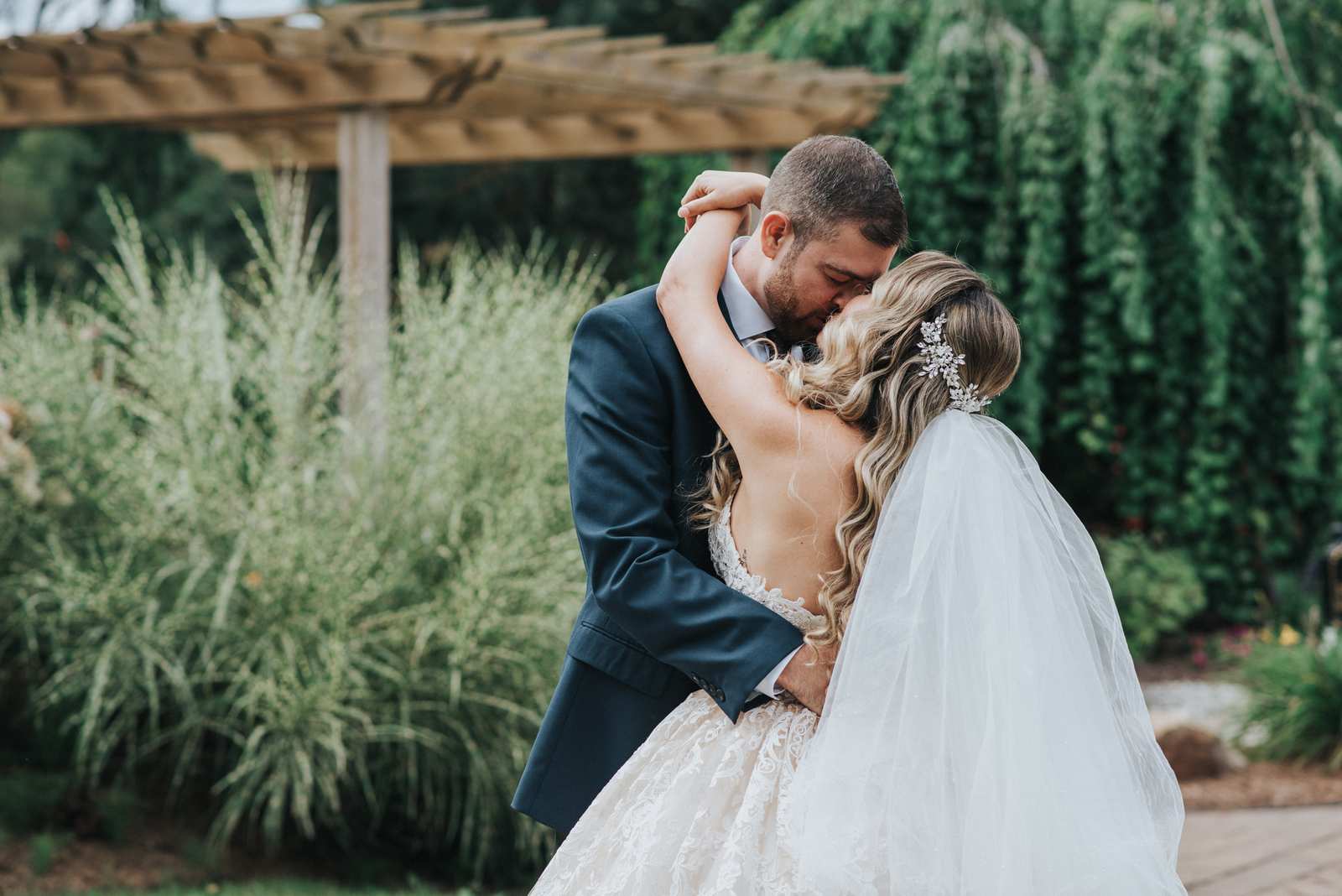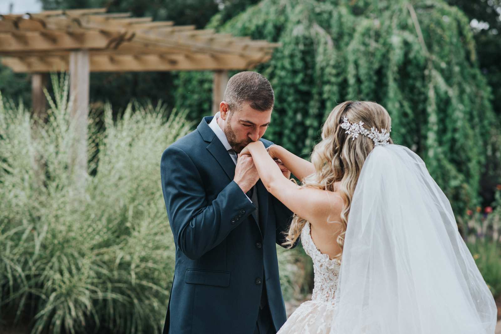 After both bride and groom were ready, we moved outside to the beautifully landscaped grounds behind the Conservatory for the first look, group photos, and their portraits!