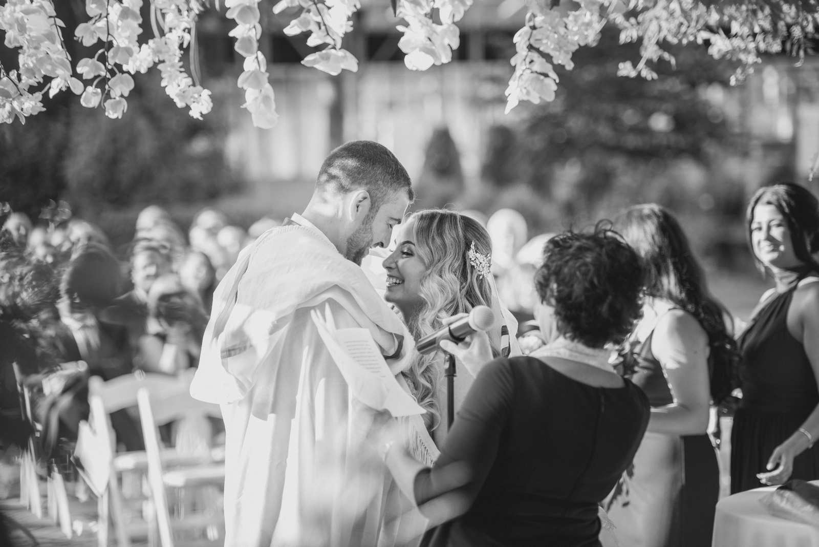 As guests began to arrive everyone took their places for the ceremony to begin! A wooden gazebo covered with icy served as the Huppah for the Jewish portions of this blended ceremony.