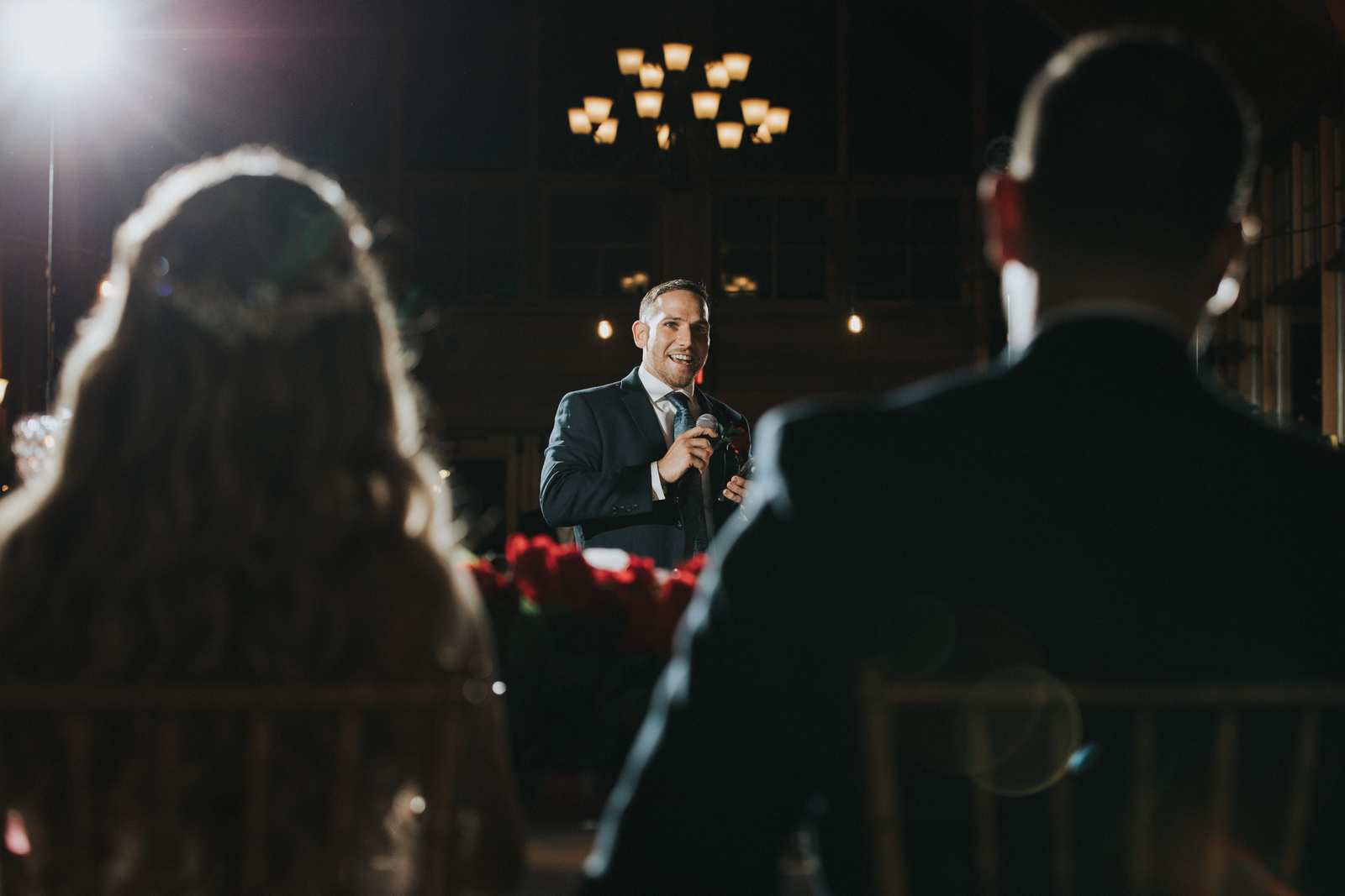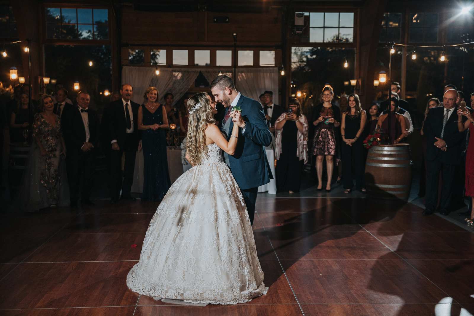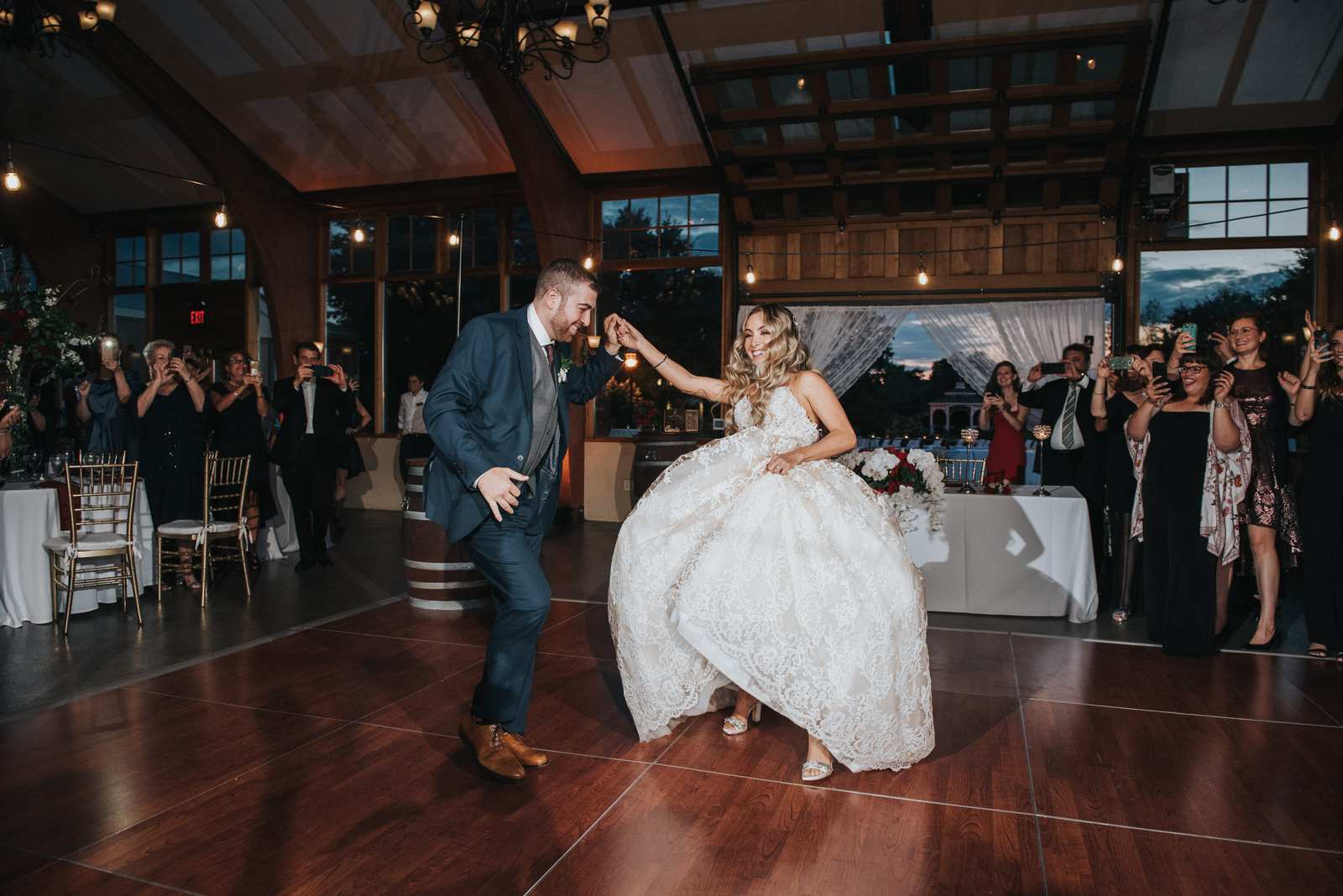Finally it was time for the reception with entrances, first dances, toasts, dinner, and finally the party all in the spacious and beautiful reception room lined with glass windows.