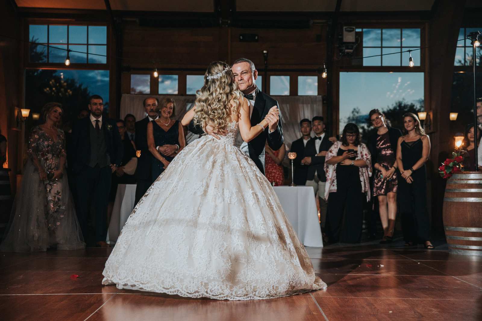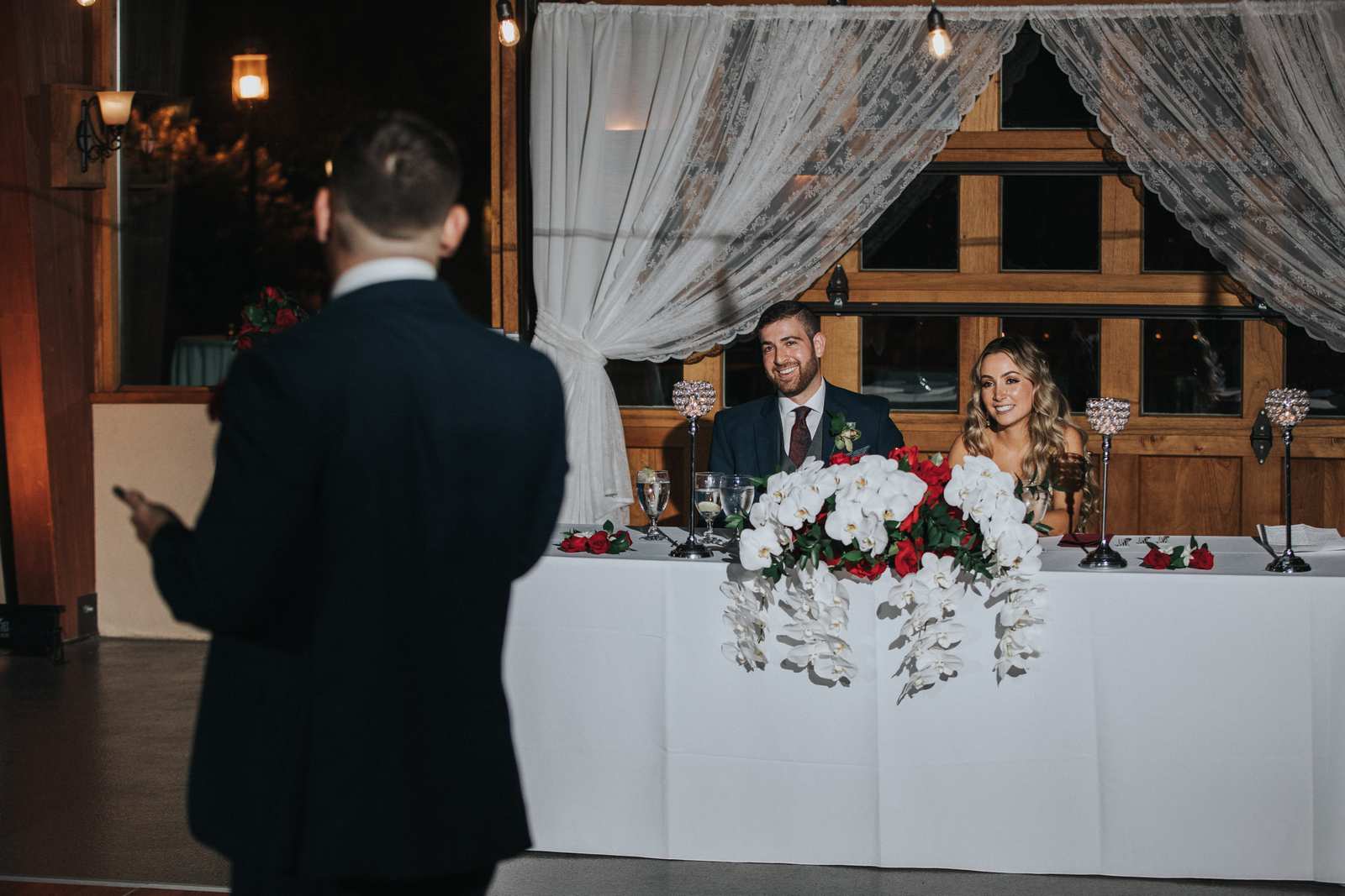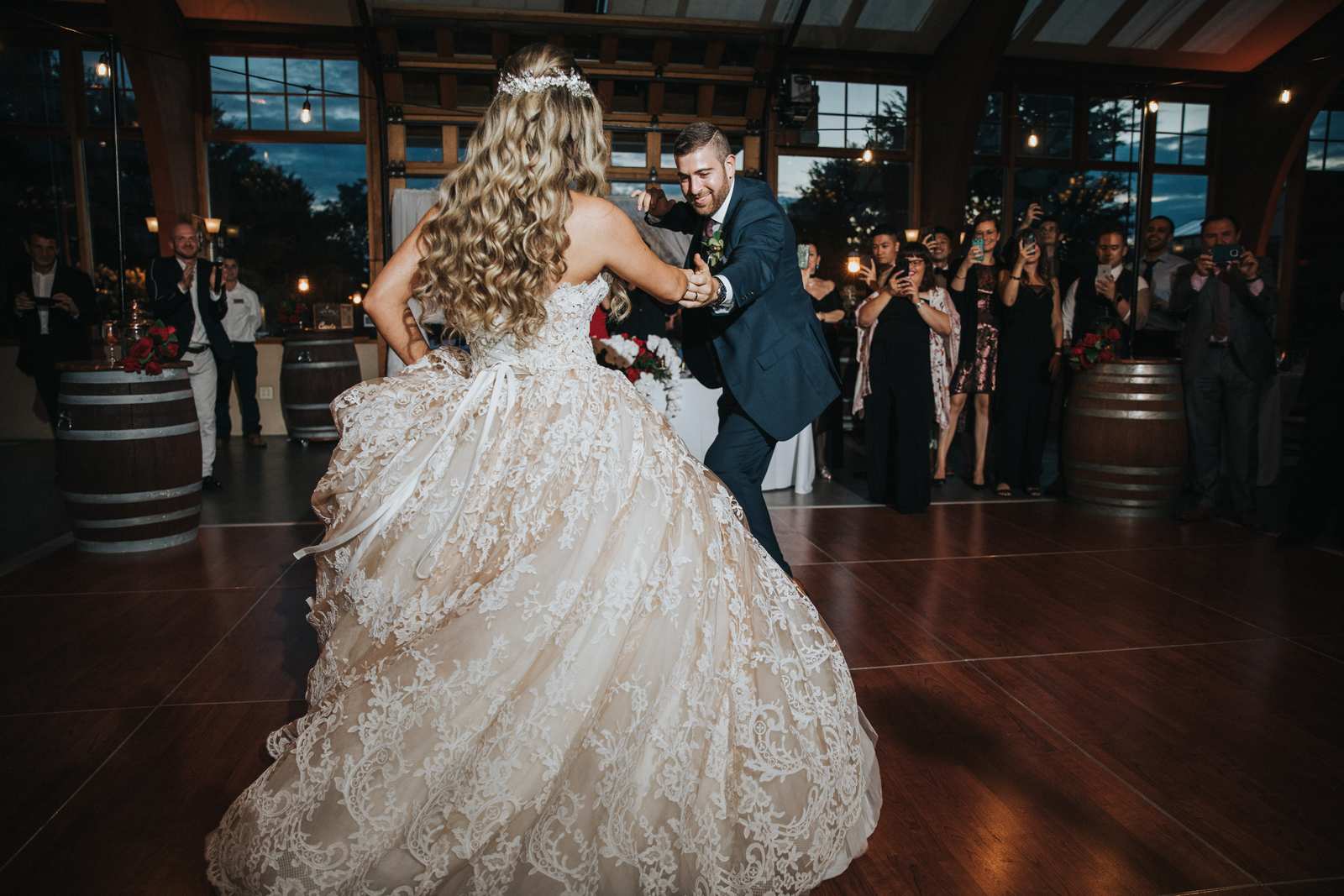 Finally it was time for the reception with entrances, first dances, toasts, dinner, and finally the party all in the spacious and beautiful reception room lined with glass windows.