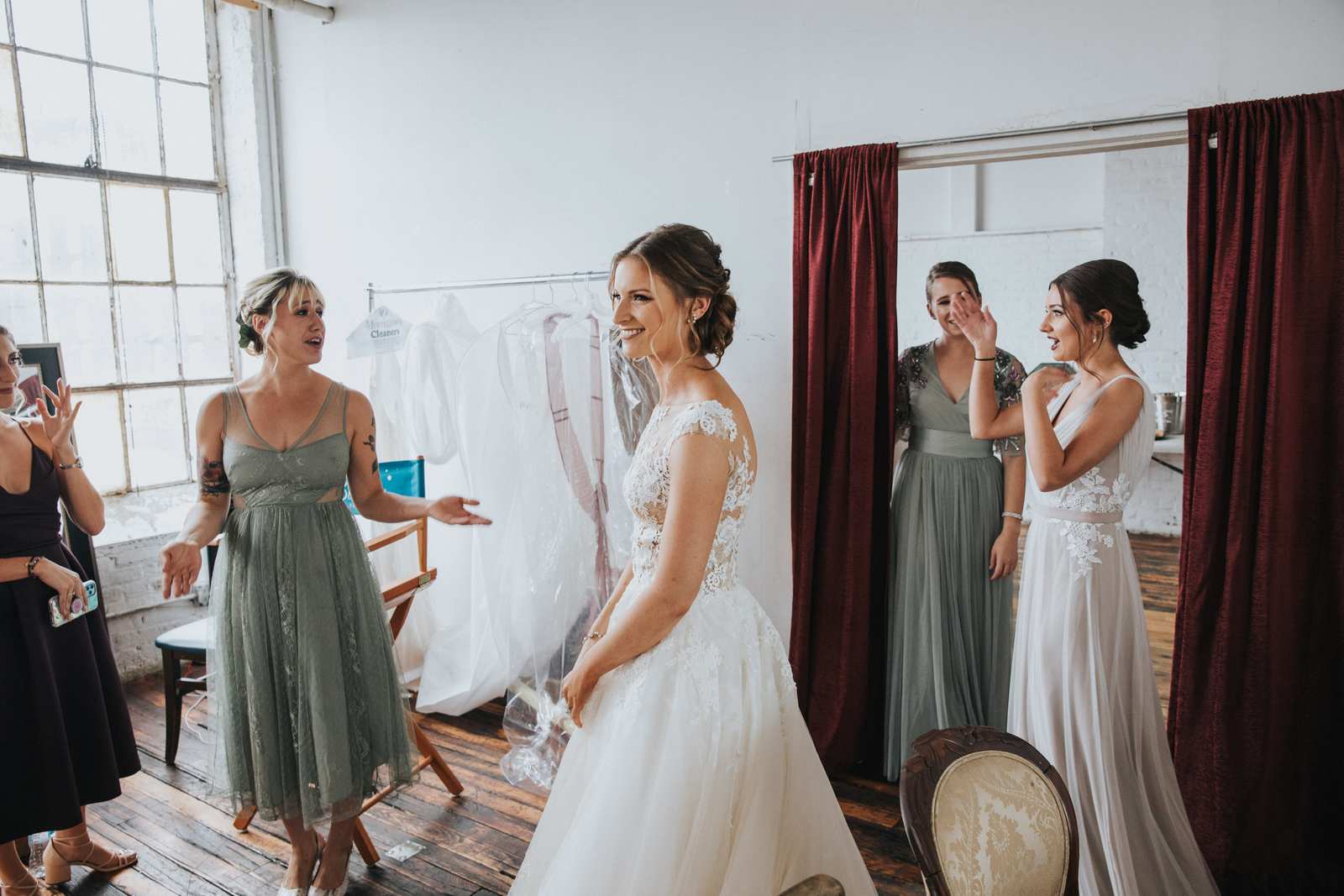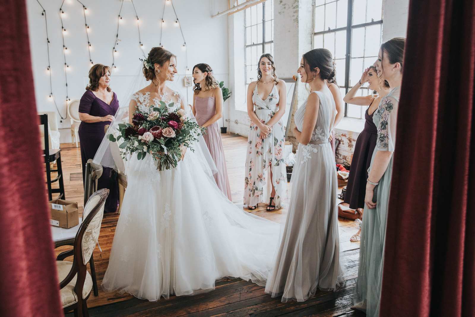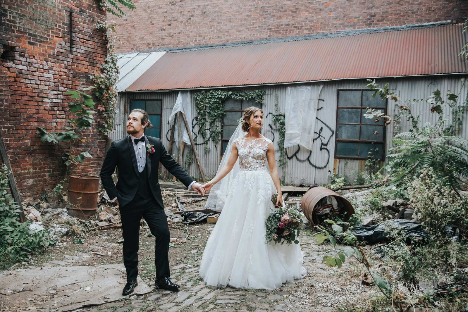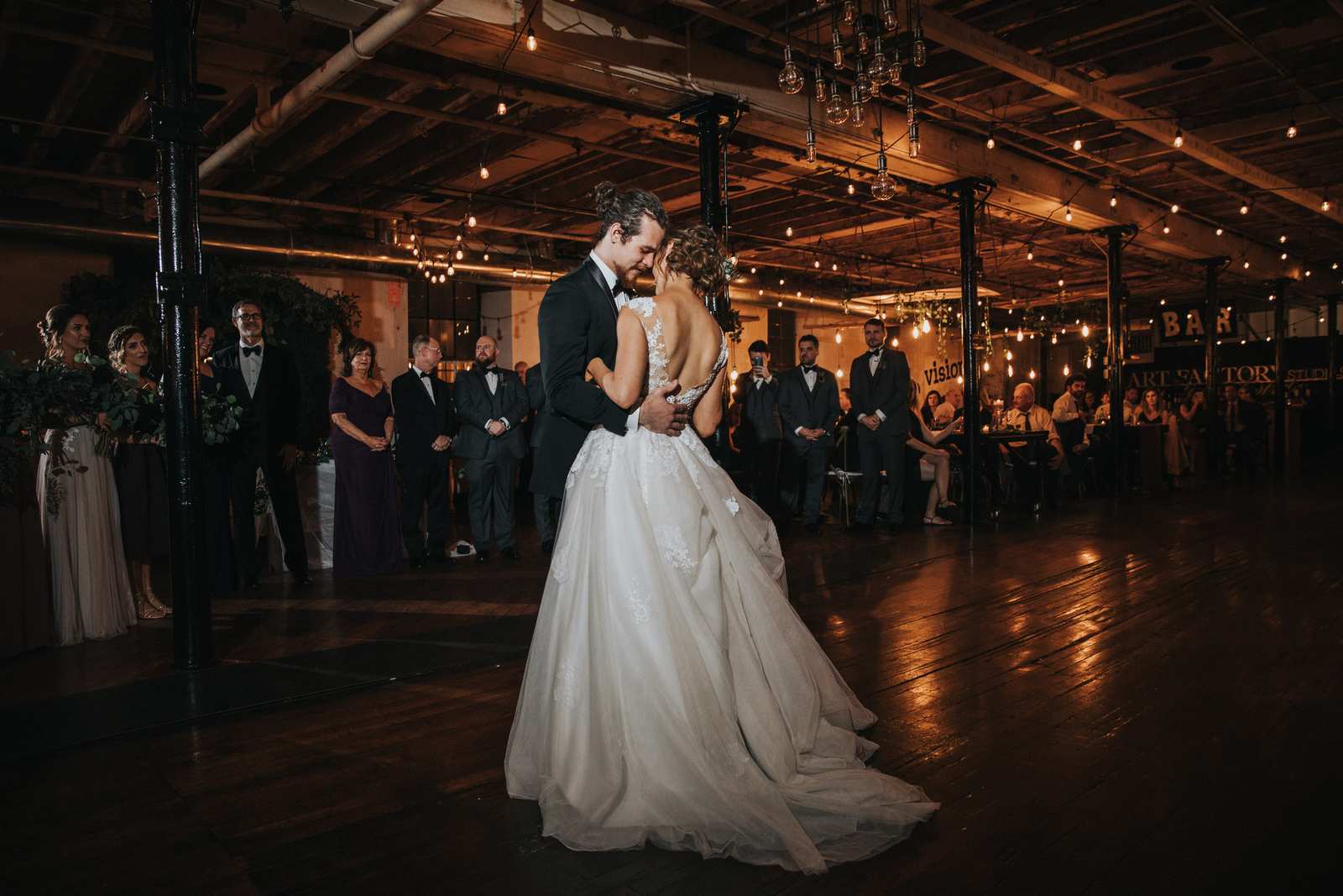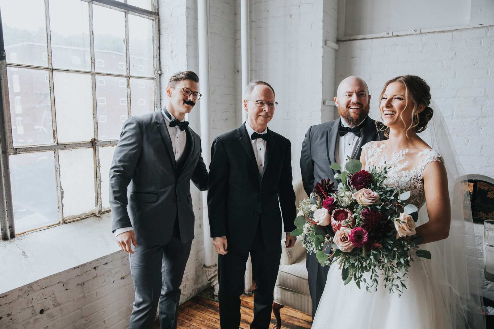 Photographs from a wedding in one of the most unique wedding venues we have seen in the New jersey – The Art Factory! We can only describe the space as fully authentic industrial chic. The factory maintains almost all of the original elements from when served as a textile mill in the 19th century from exposed wood and metal beams, wood plank floors, concrete walls, machinery mounts, and more. It is not a place that could describe as stereotypically pretty but we think it is the perfect backdrop for couples looking for a unique wedding vibe fit for a party!