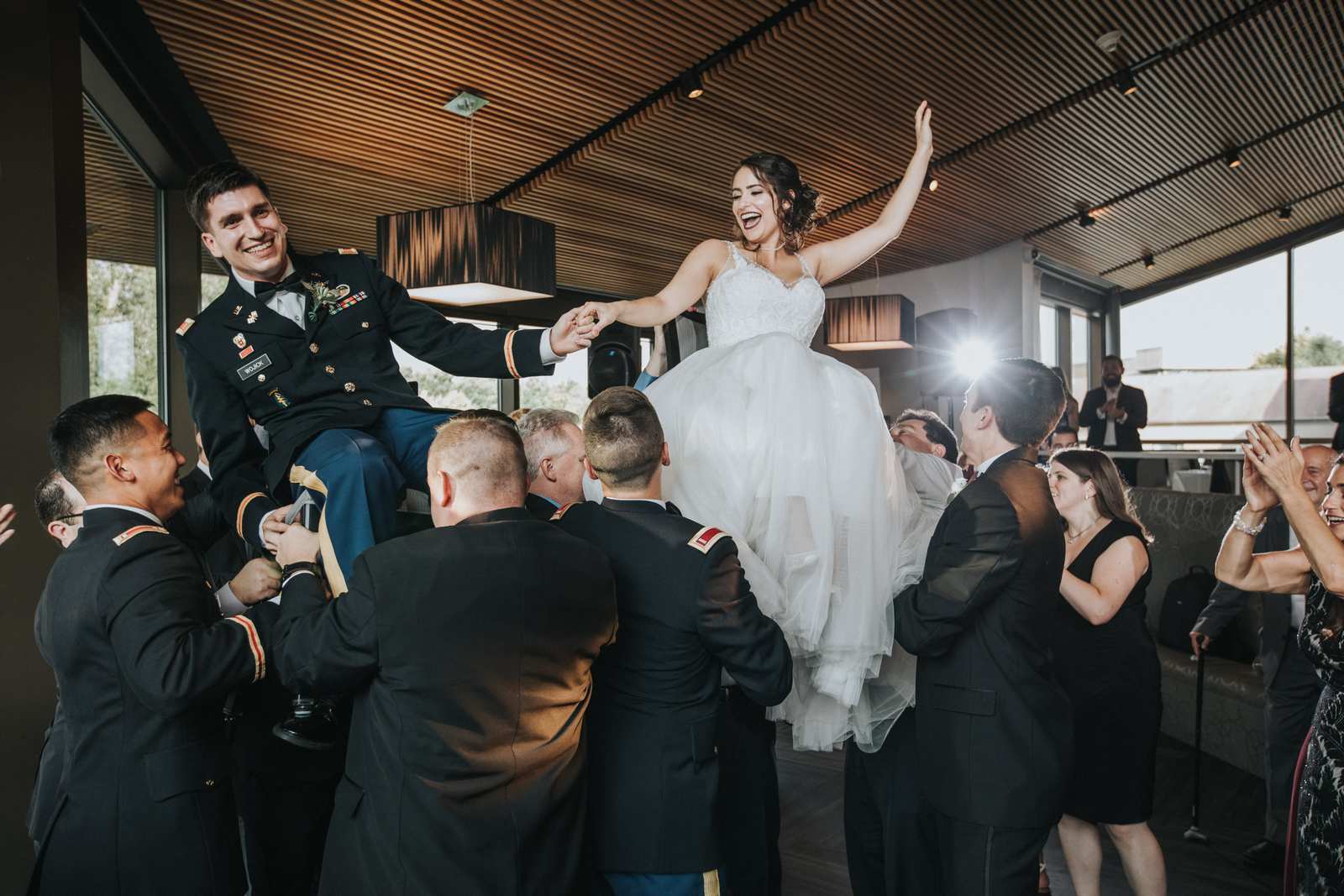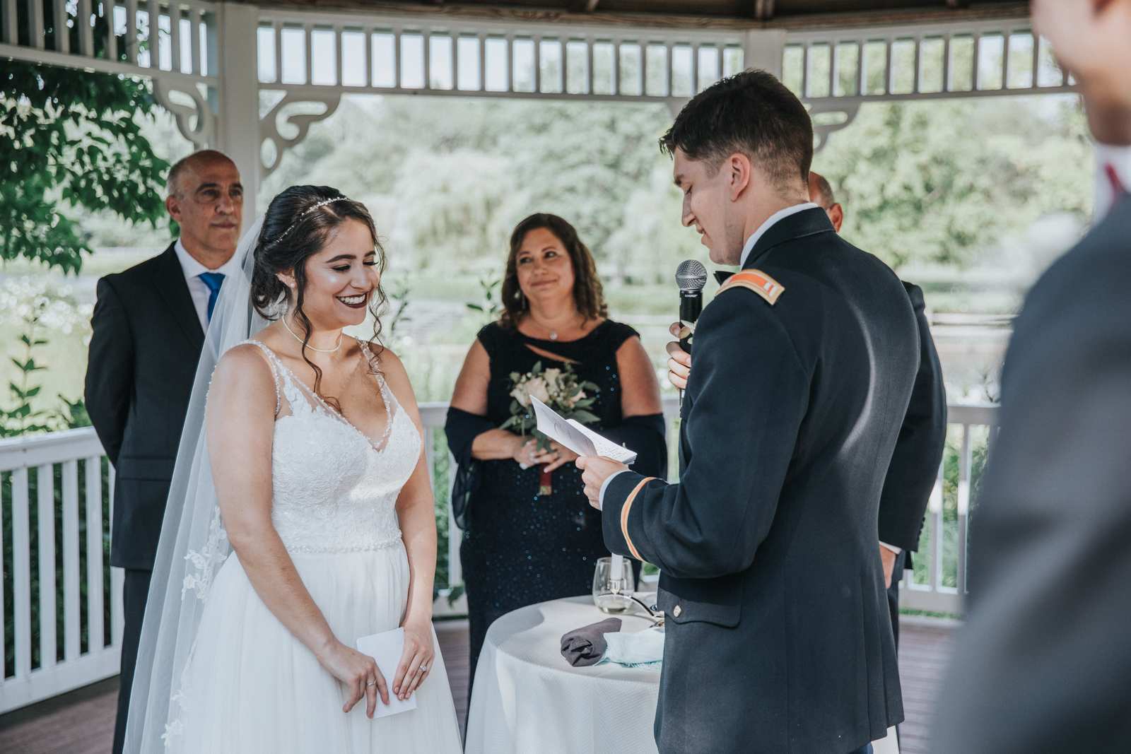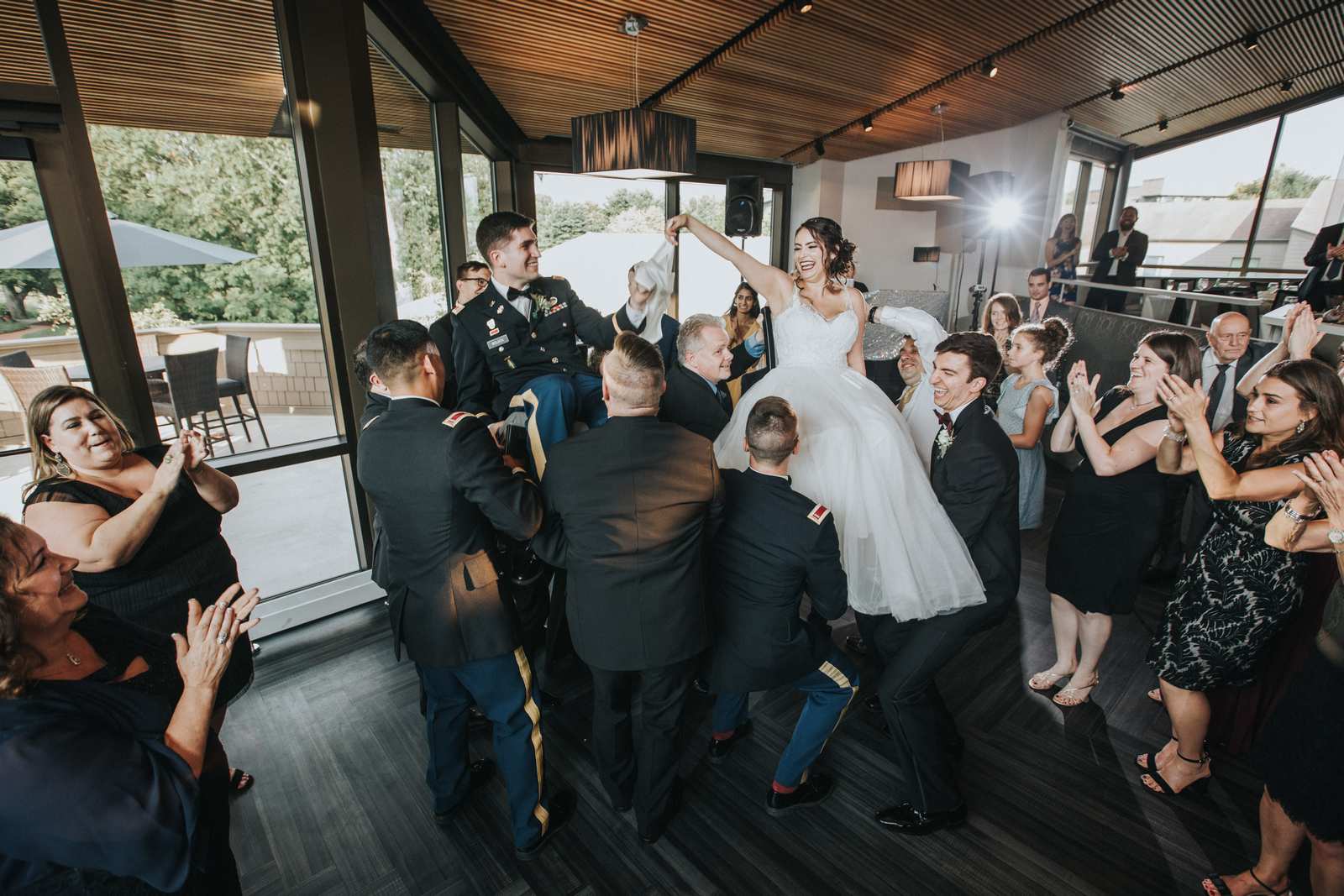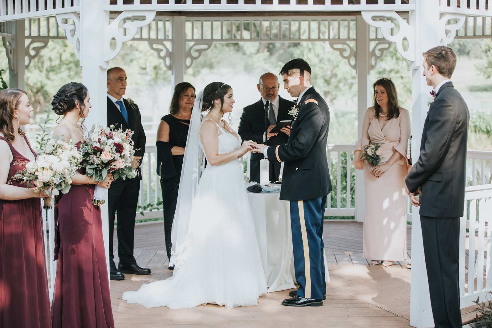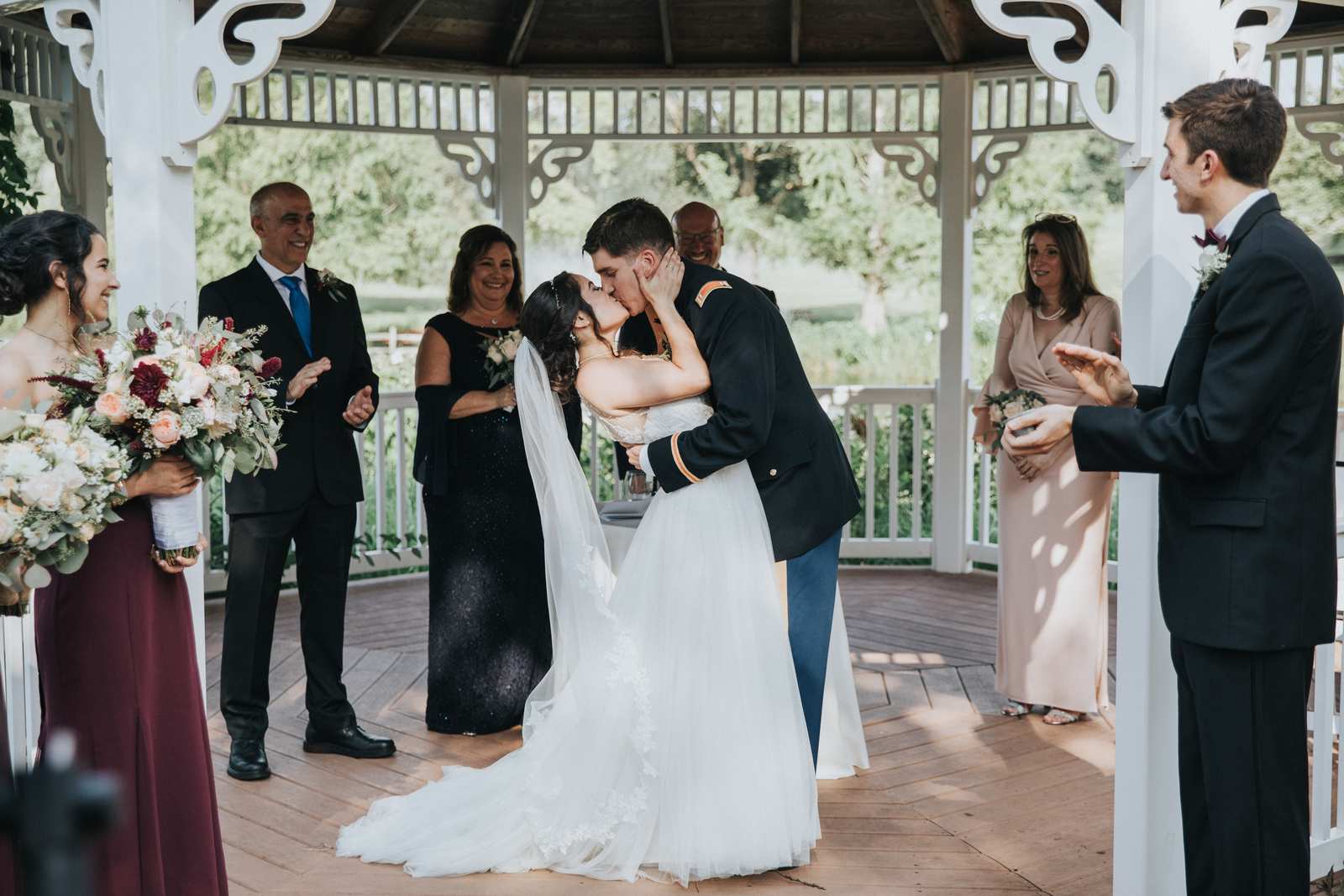 Below are our photographs from a fun filled wedding celebration taking place entirely at the Chauncey in Princeton, NJ! When we arrived, we captured the many candid moments of both the groomsmen and bridesmaids getting ready at the hotel overlooking the lake. After the first look between bride and groom we found lakeside paths, willow trees, and so many more spots just perfect for their portraits. We captured family photos and the bridal party photos then hid away back in the hotel to sign the Ketubah to make the marriage official before the ceremony even took place and as the guests arrived. By the beautiful lake once again, the gazebo served as the Huppah (Chuppah) during this blended Catholic and Jewish ceremony. After saying their congratulation to the new couple, everyone enjoyed cocktail hour under the tent as the sun began to set. Soon we all moved upstairs into the Solomon Dining Room for the reception. We had a blast capturing the grand entrances, first dances, chair dance, toasts, and all the other formalities until dinner began and all friends and families enjoyed their meals. But soon everyone was back on the dance floor to party for the rest of the night while we photographed the fun!