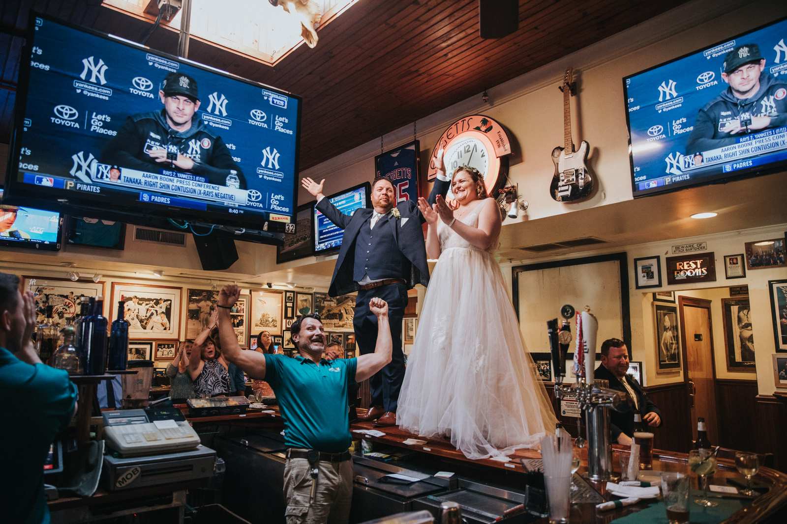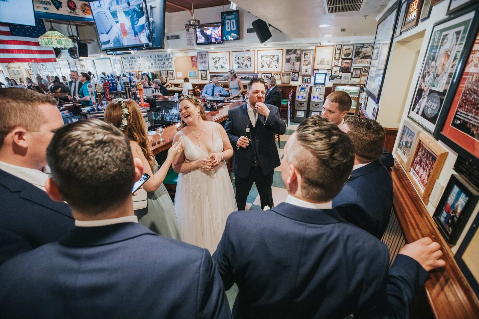 Below are among our favorite photos we captured of this wedding taking place at the Crystal Point Yacht Club at Point Pleasant on a perfect spring day at the Jersey Shore. It was the exact definition of a go with the flow wedding just full of candid moments at many of the iconic spots of Manasquan! We began at Salon J’Za on main street and then traveled to the brides parents home for the final touches of the getting ready. After a touching Catholic ceremony at Our Lady Star of the Sea we made a quick stop at Leggett’s for some beer, pizza, and a bit of dancing on top of the bar! After some photos of bridal party and the newlywed couple at the Manasquan inlet, we made our way to the Yacht Club for a reception full of amazing moments from the first dances through the cake cutting. We had a blast capturing this day and hope you enjoy looking through the photos as much as we do!