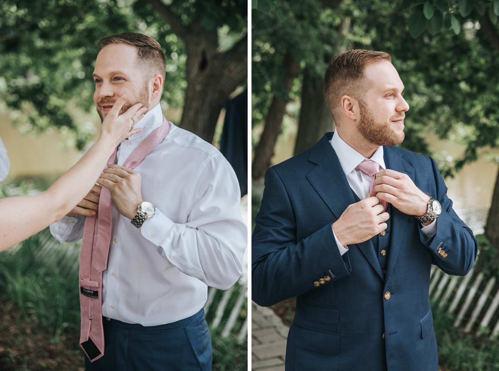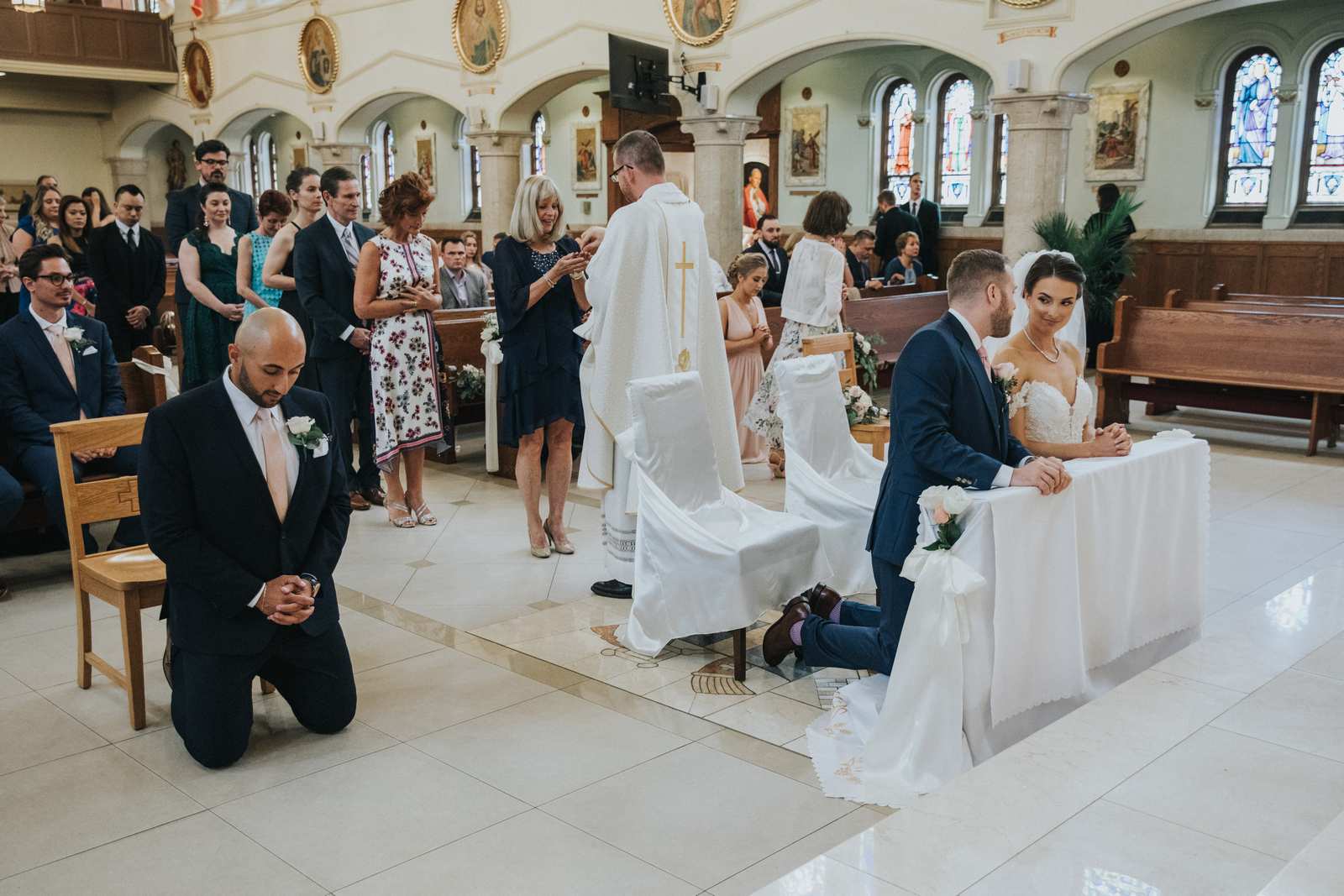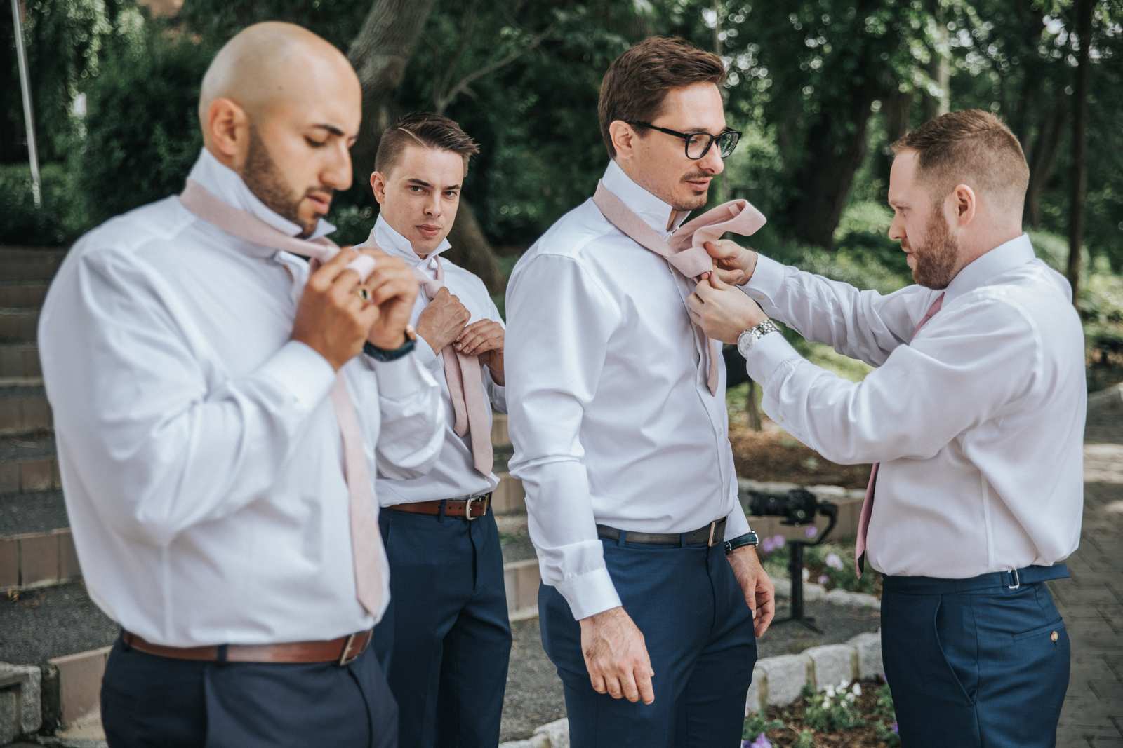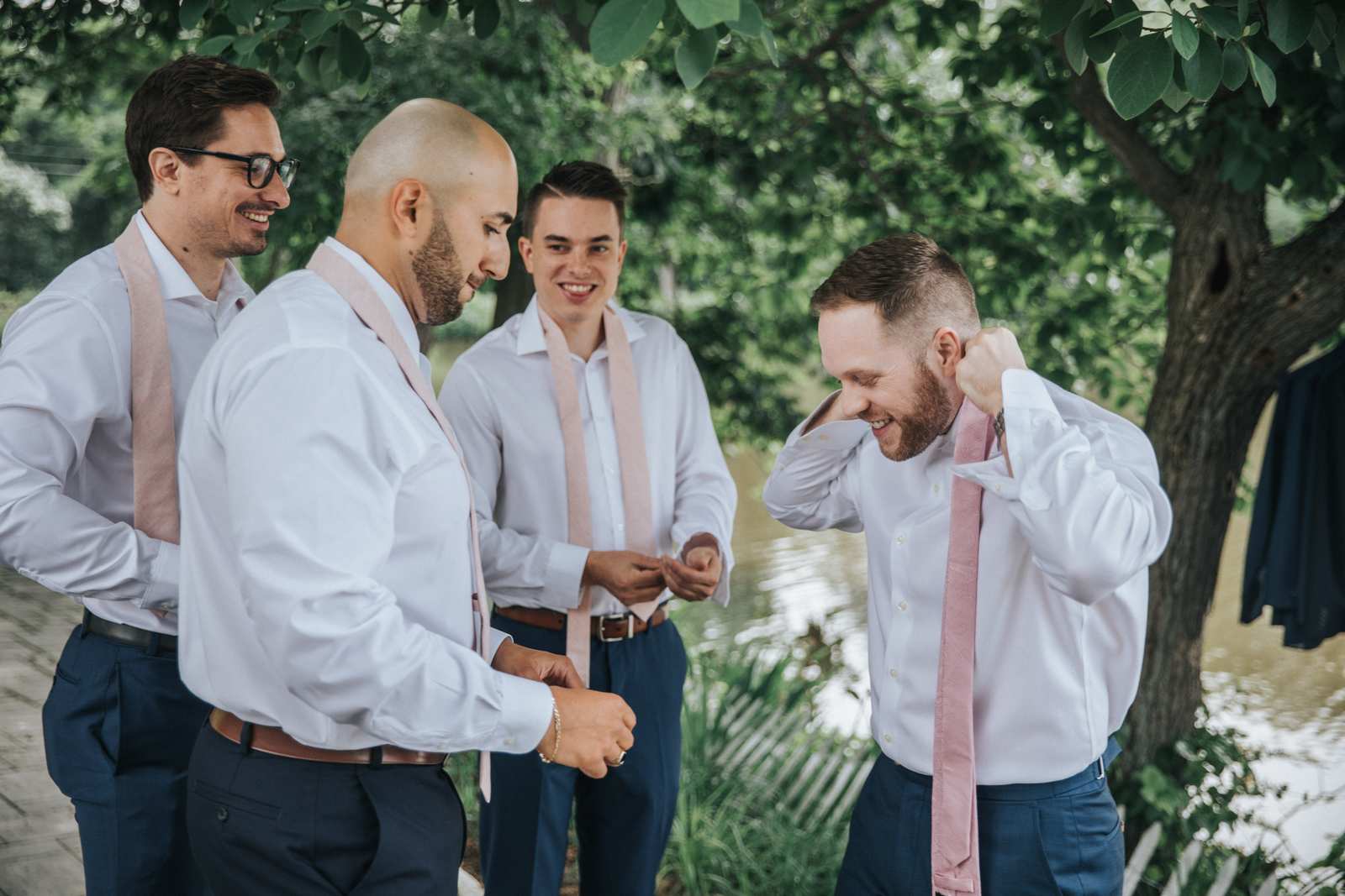 We began at the Estate where we found the bridesmaids in the middle of hair and makeup yet the groomsmen hanging out watching an EDM concert. Soon enough though both bride and groom were ready for the day and for the first look on a beautiful lakeside path! Then we headed to the family Polish church in Linden for a ceremony where lots of smiles and laughter was exchanged between the couple alongside the traditional rings. Back at the Estate again we explored some more and found so many perfect spots for family photos and the couples portraits spread around the grounds. The cocktail hour and reception was the ideal set up for the pair with plenty of the traditional moments but having more a relaxed and low-key atmosphere as guests enjoyed both the food, music, and view late into the day. We hope you enjoy looking through all these images below!