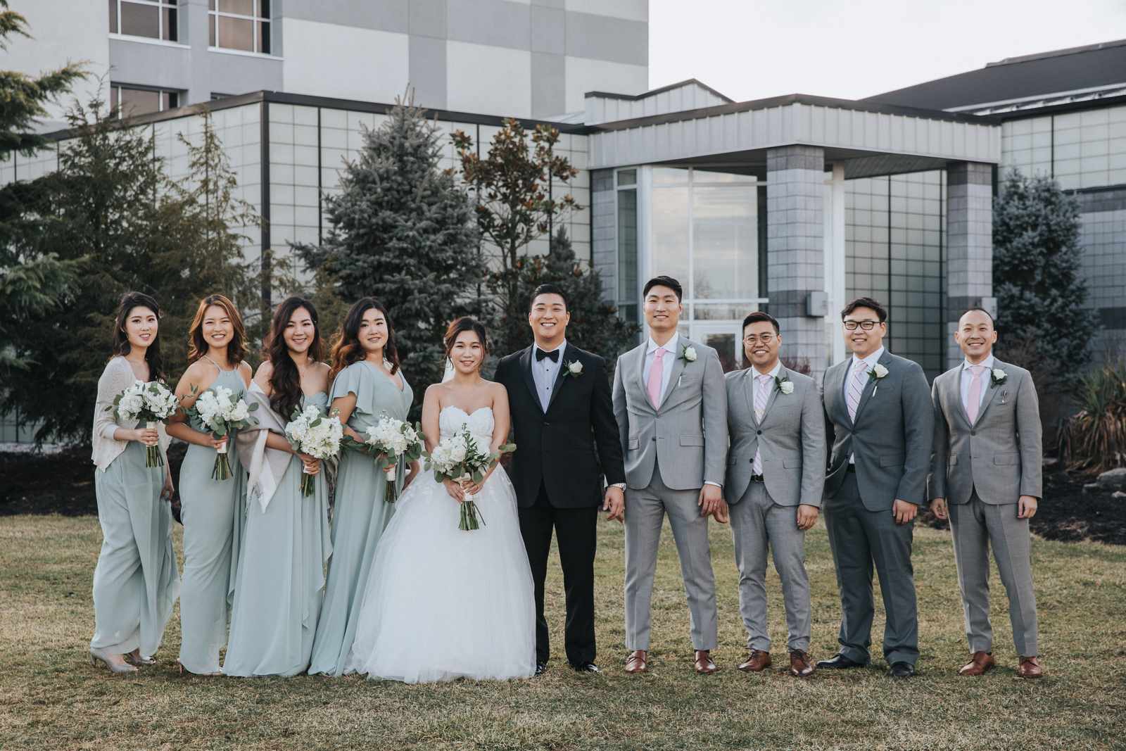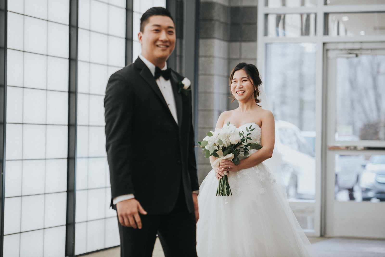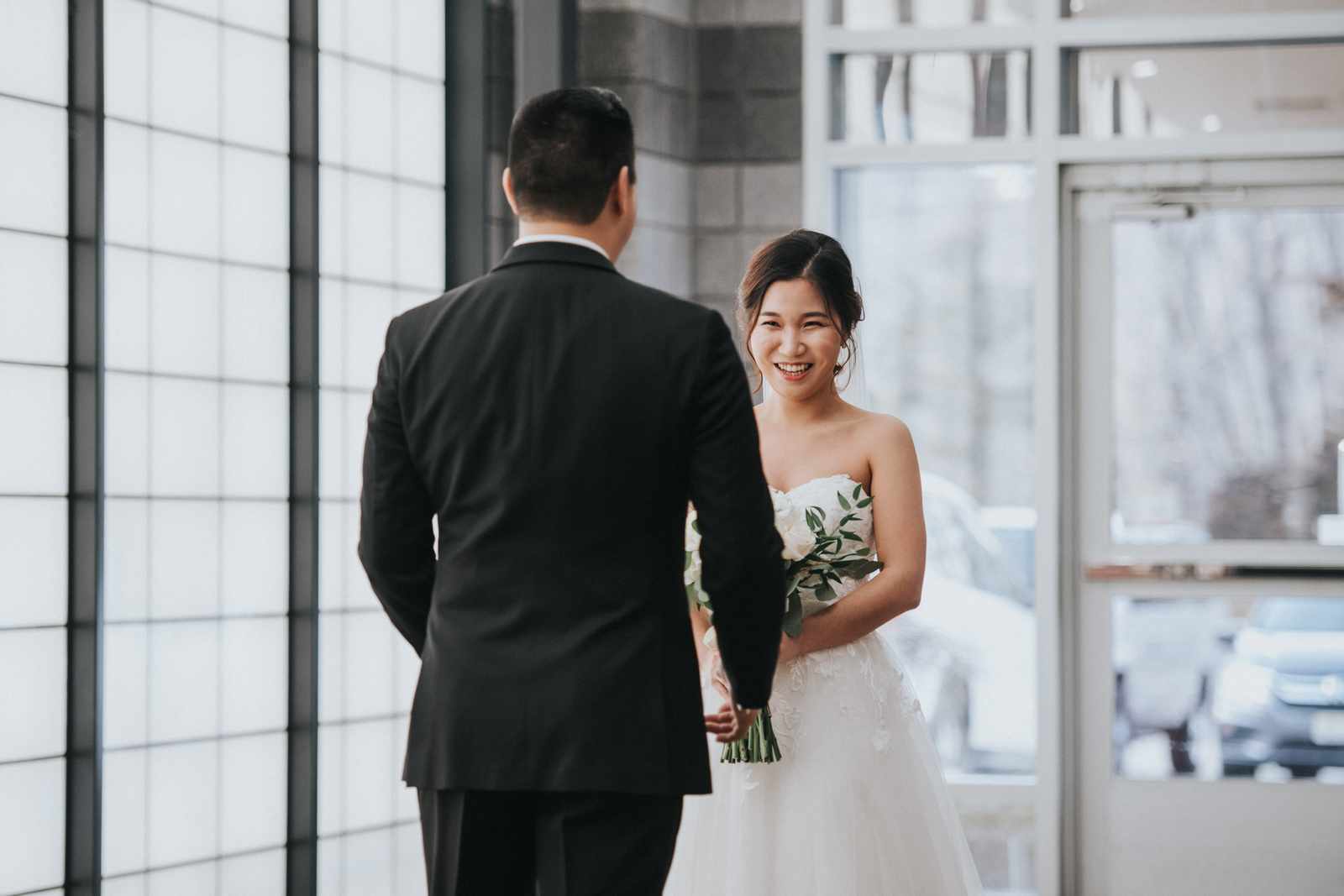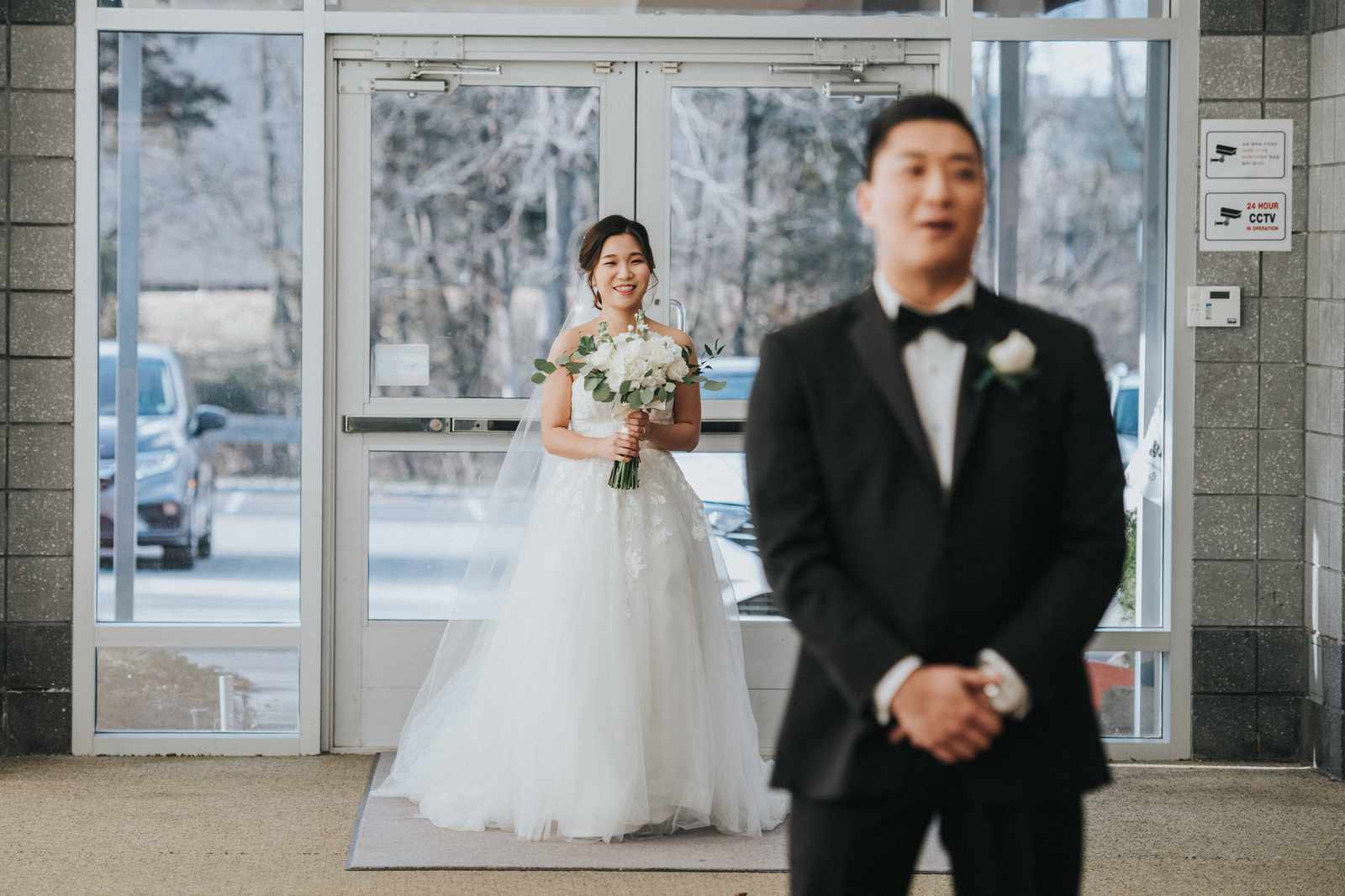 A wonderful winter wedding taking place at the elegant Imperia with church ceremony at the Korean Praise Presbyterian Church in Somerset NJ. We began photographing a few hours before the ceremony began as the bride got ready at a nearby hotel and groom at the church itself. The beginning of the wedding is always the least planned time of the day for us. We arrive and just start capturing anything that catches our eye. The dress, hair and makeup, bridesmaids hanging out, and all the other little moments that happen alongside. Soon it was time for the first look which also was going to take place at the church! With the groom in position his bride made her way up the hallway and into a moment filled with pure joy! We then braved the cold weather to take some photos of the bridal party and couple on the church grounds. The church was soon filled with the wedding guests and the ceremony was ready to begin. This deeply religious Korean wedding ceremony began with an acoustic guitar backing the hymns and flowed beautifully through prayers, vows, and the exchanging of the rings. After a thank you speech given by the bride’s father all of the friends and family headed to the cocktail hour at the Imperia. An hour later, the grand entrances, first dances, and toasts kicked off a reception that can only be described as a giant party full of dancing, laughter, and joy. Every moment from the very beginning to the end was honestly a joy to capture and it was an honor to be the photographer for this wedding.
