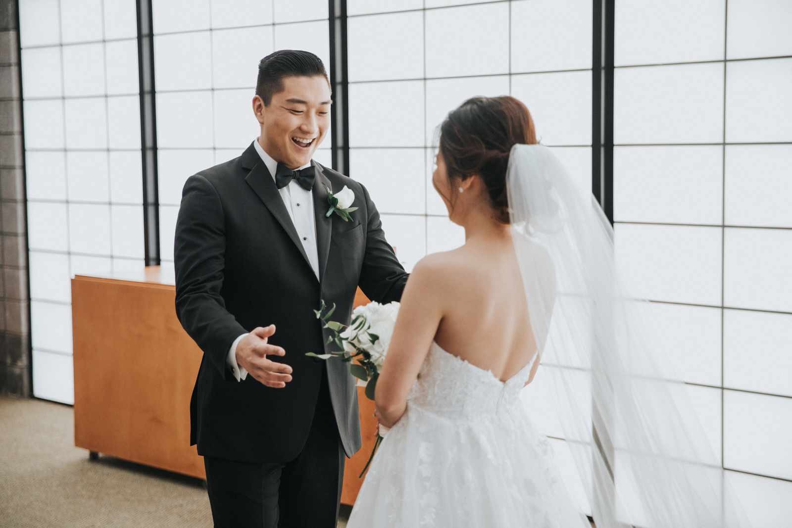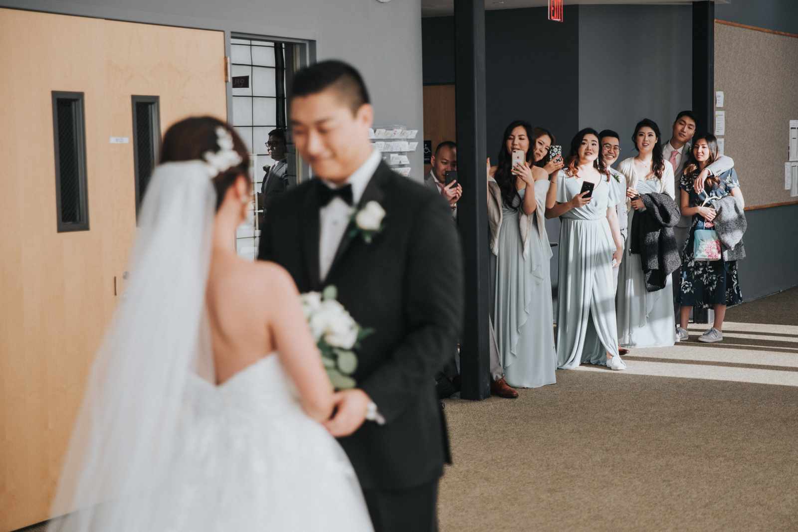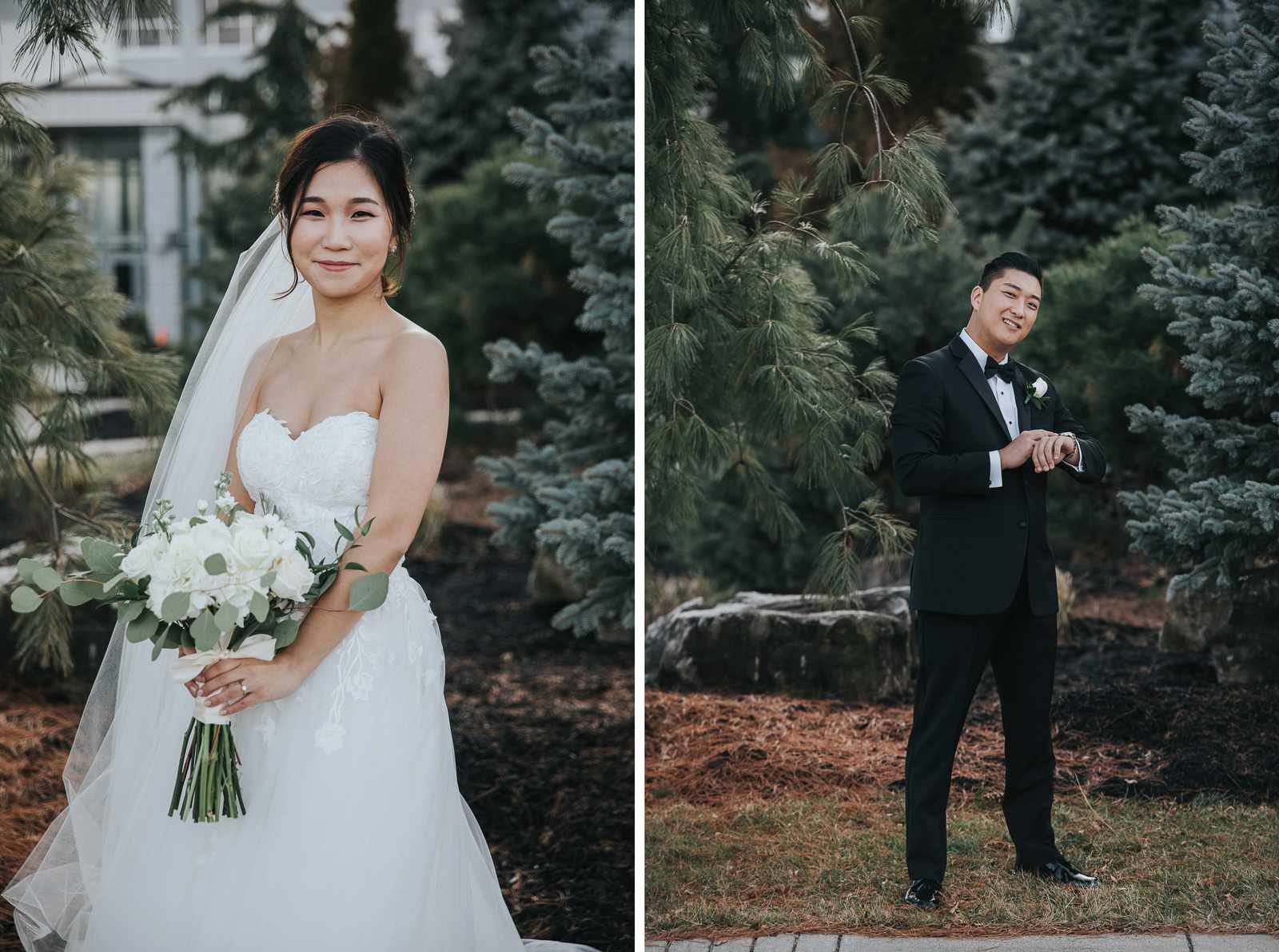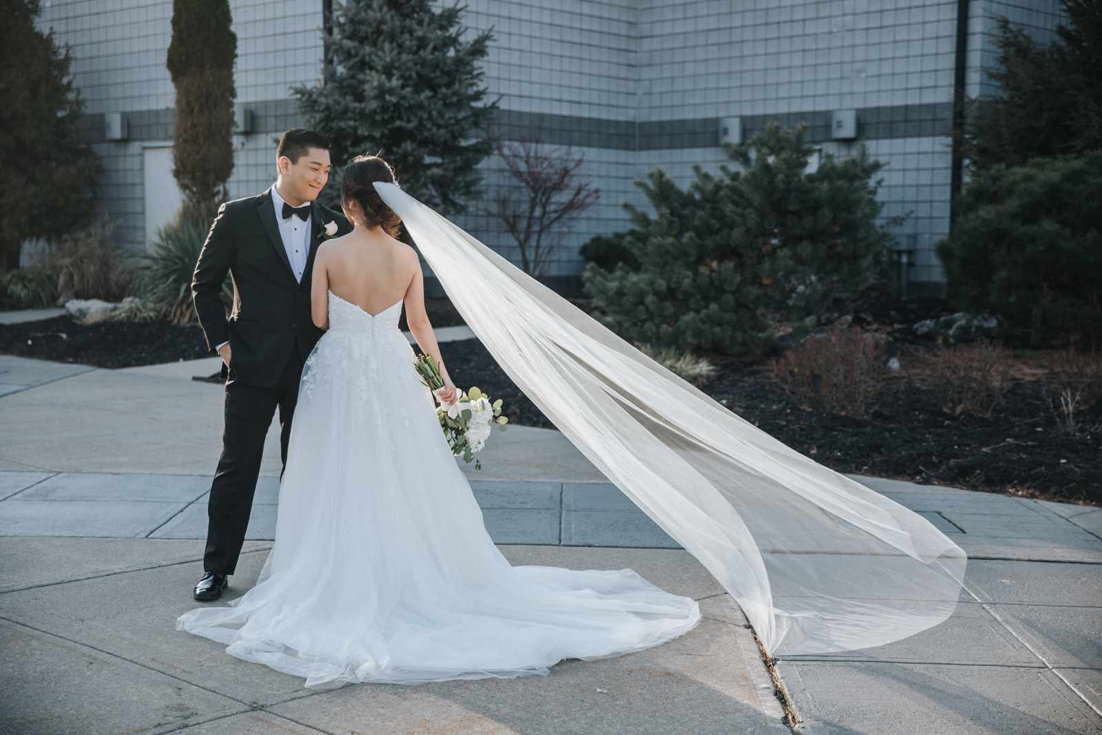 A wonderful winter wedding taking place at the elegant Imperia with church ceremony at the Korean Praise Presbyterian Church in Somerset NJ. We began photographing a few hours before the ceremony began as the bride got ready at a nearby hotel and groom at the church itself. The beginning of the wedding is always the least planned time of the day for us. We arrive and just start capturing anything that catches our eye. The dress, hair and makeup, bridesmaids hanging out, and all the other little moments that happen alongside. Soon it was time for the first look which also was going to take place at the church! With the groom in position his bride made her way up the hallway and into a moment filled with pure joy! We then braved the cold weather to take some photos of the bridal party and couple on the church grounds. The church was soon filled with the wedding guests and the ceremony was ready to begin. This deeply religious Korean wedding ceremony began with an acoustic guitar backing the hymns and flowed beautifully through prayers, vows, and the exchanging of the rings. After a thank you speech given by the bride’s father all of the friends and family headed to the cocktail hour at the Imperia. An hour later, the grand entrances, first dances, and toasts kicked off a reception that can only be described as a giant party full of dancing, laughter, and joy. Every moment from the very beginning to the end was honestly a joy to capture and it was an honor to be the photographer for this wedding.