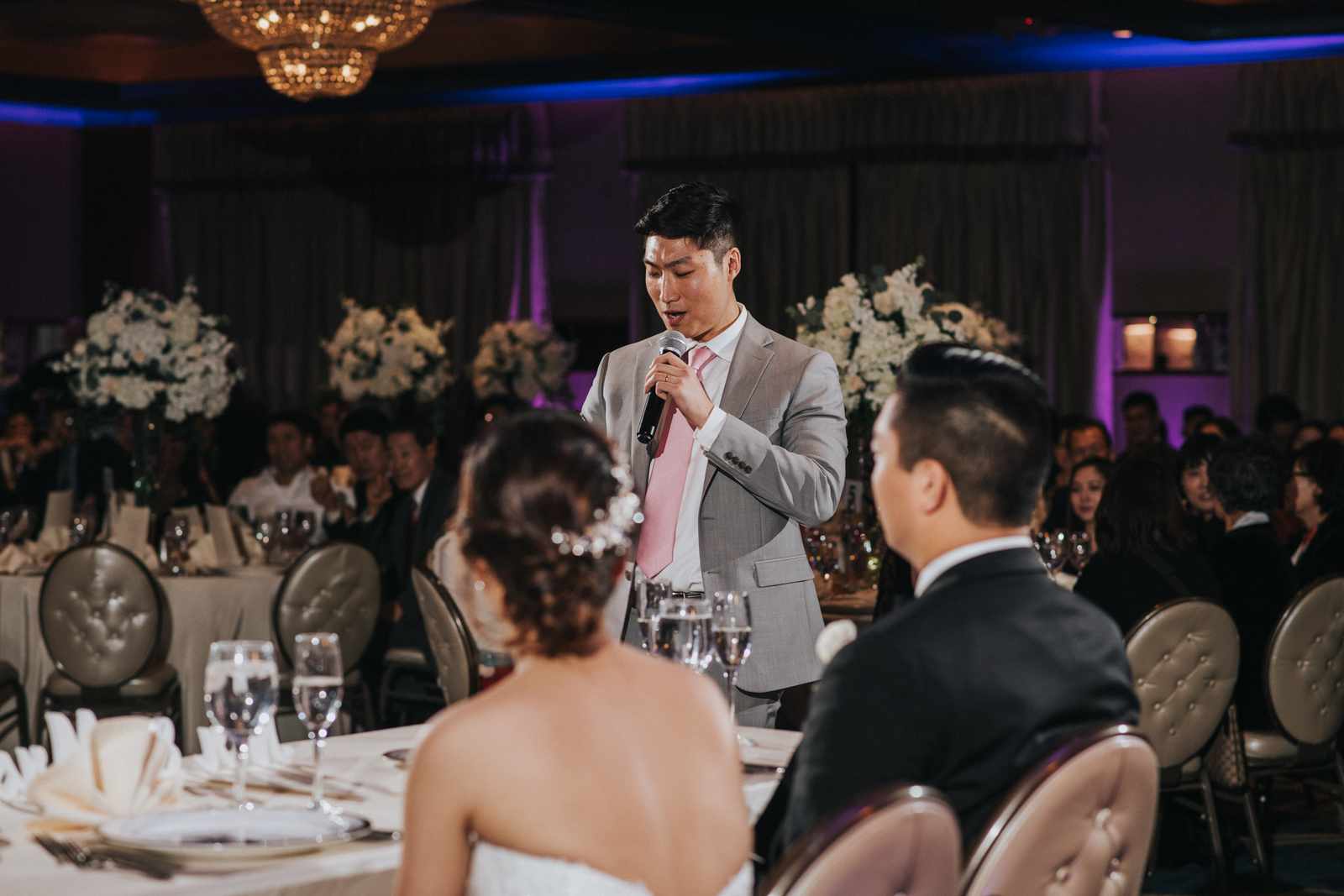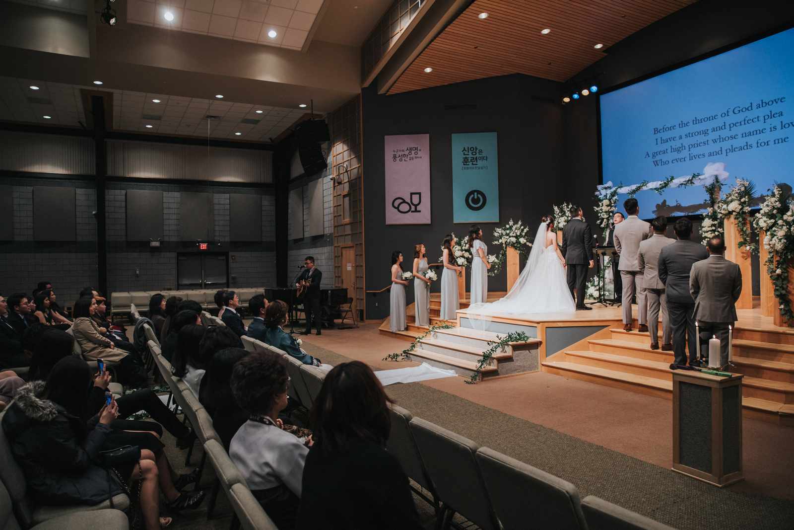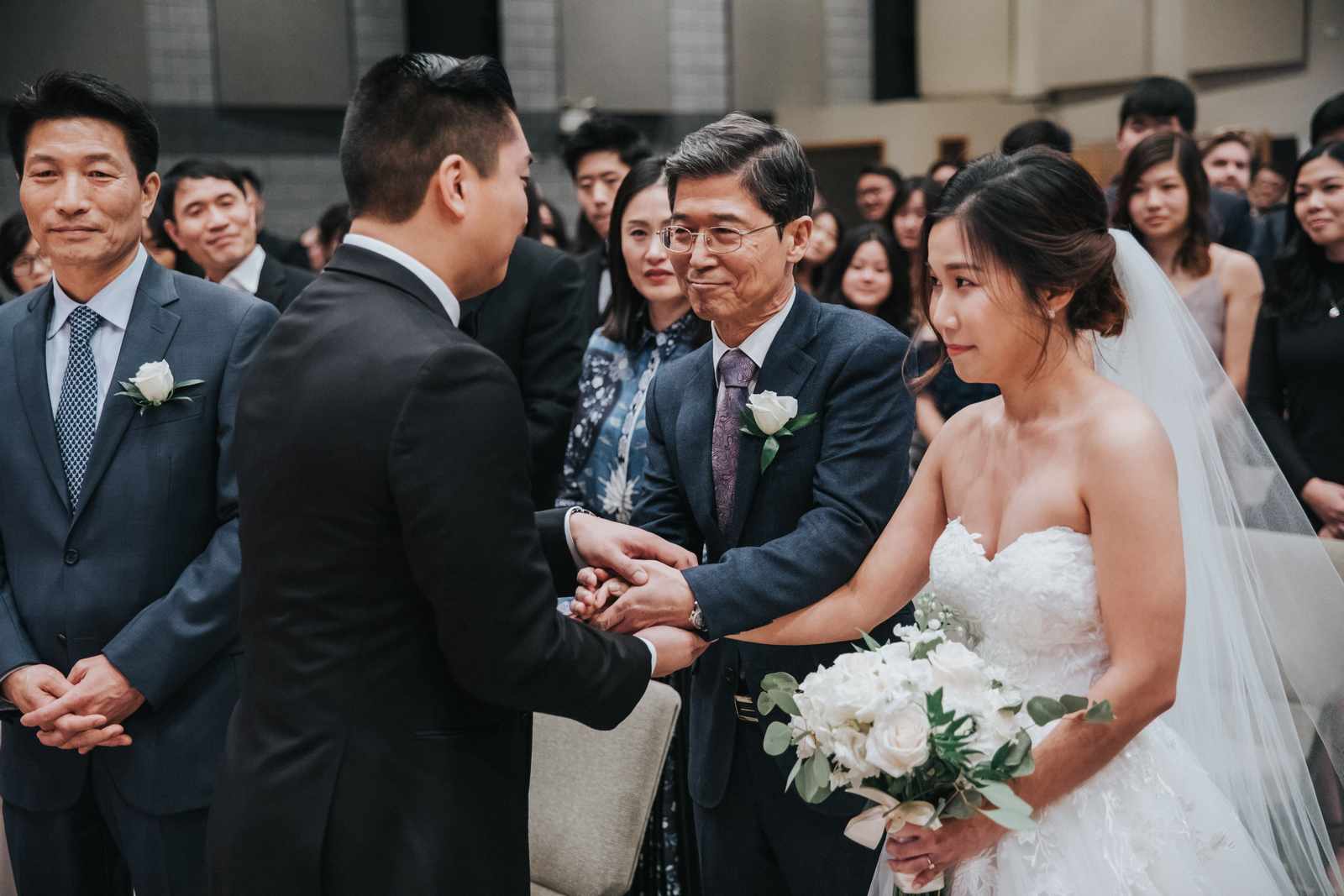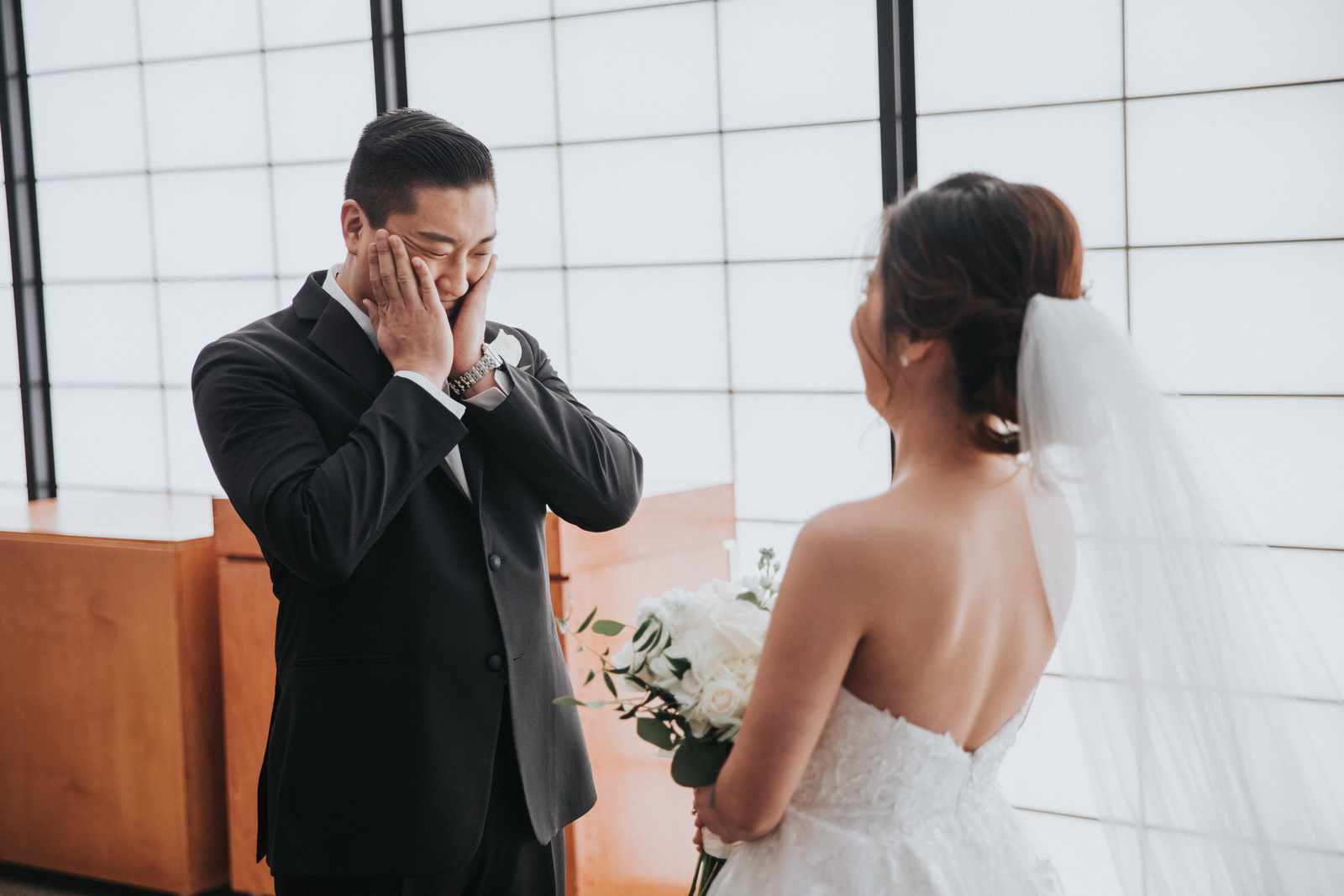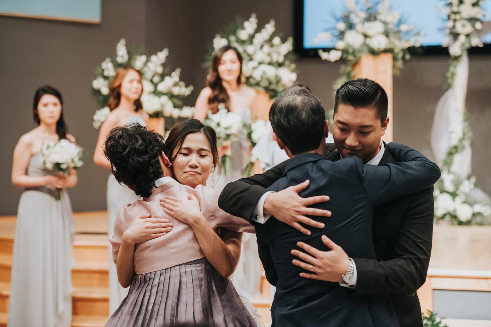 A wonderful winter wedding taking place at the elegant Imperia with church ceremony at the Korean Praise Presbyterian Church in Somerset NJ. We began photographing a few hours before the ceremony began as the bride got ready at a nearby hotel and groom at the church itself. The beginning of the wedding is always the least planned time of the day for us. We arrive and just start capturing anything that catches our eye. The dress, hair and makeup, bridesmaids hanging out, and all the other little moments that happen alongside. Soon it was time for the first look which also was going to take place at the church! With the groom in position his bride made her way up the hallway and into a moment filled with pure joy! We then braved the cold weather to take some photos of the bridal party and couple on the church grounds. The church was soon filled with the wedding guests and the ceremony was ready to begin. This deeply religious Korean wedding ceremony began with an acoustic guitar backing the hymns and flowed beautifully through prayers, vows, and the exchanging of the rings. After a thank you speech given by the bride’s father all of the friends and family headed to the cocktail hour at the Imperia. An hour later, the grand entrances, first dances, and toasts kicked off a reception that can only be described as a giant party full of dancing, laughter, and joy. Every moment from the very beginning to the end was honestly a joy to capture and it was an honor to be the photographer for this wedding.
