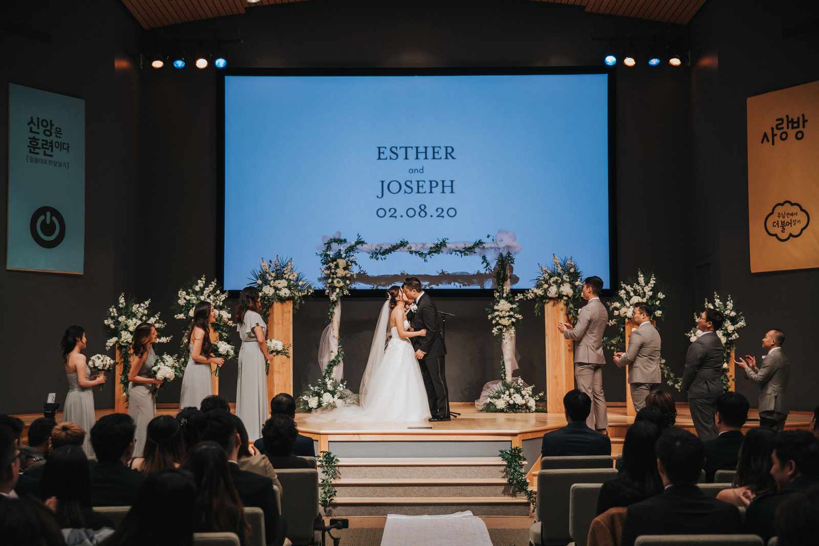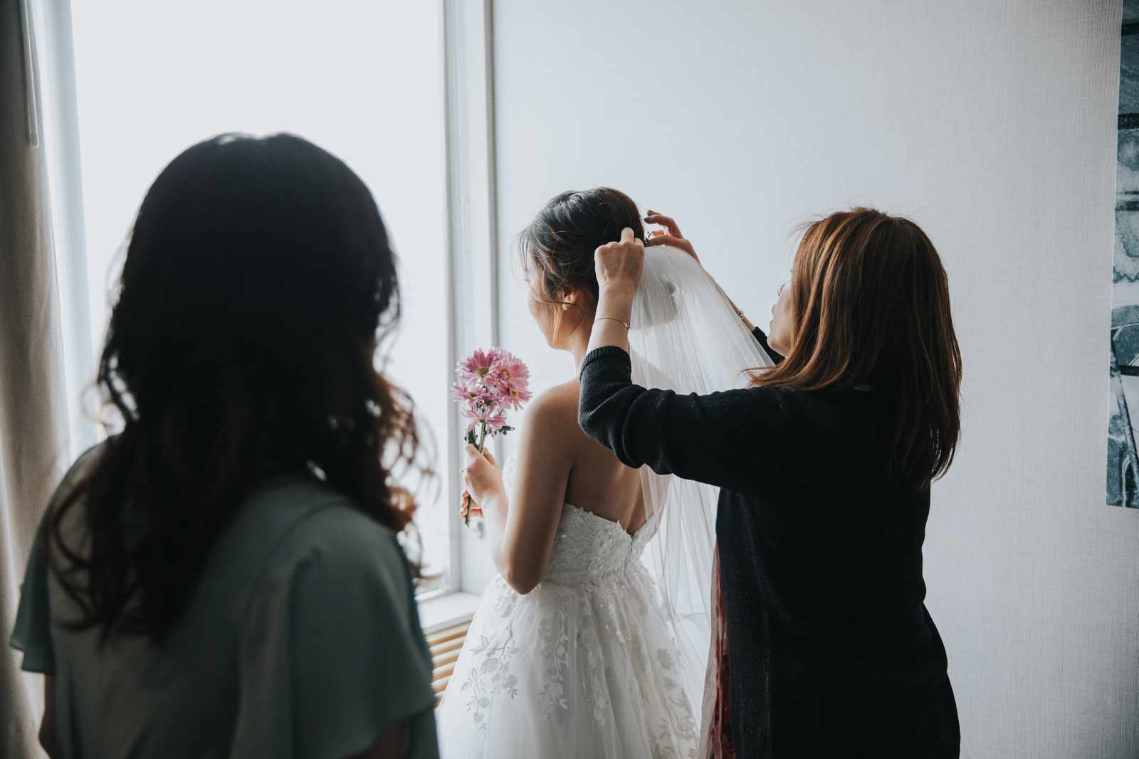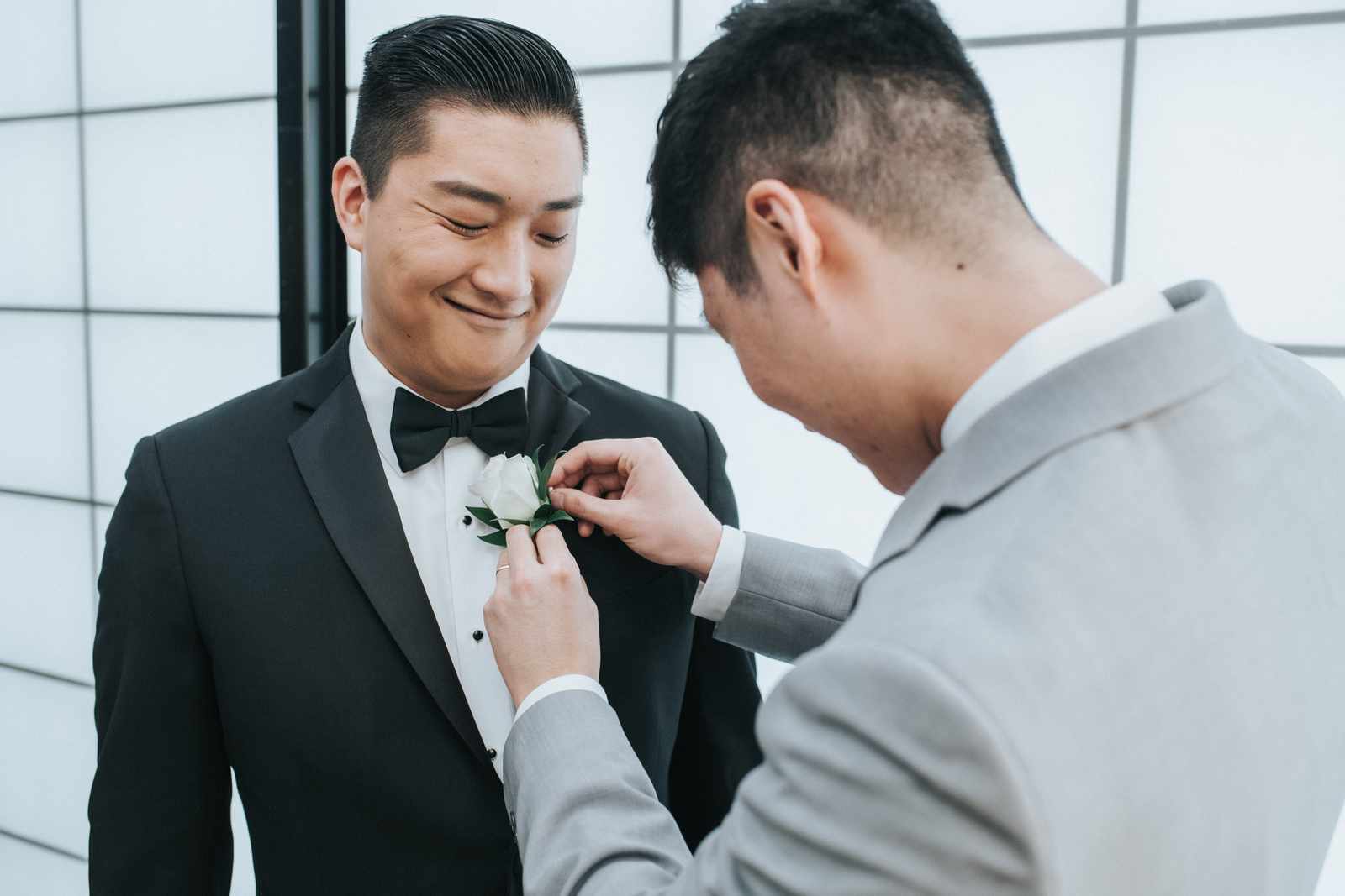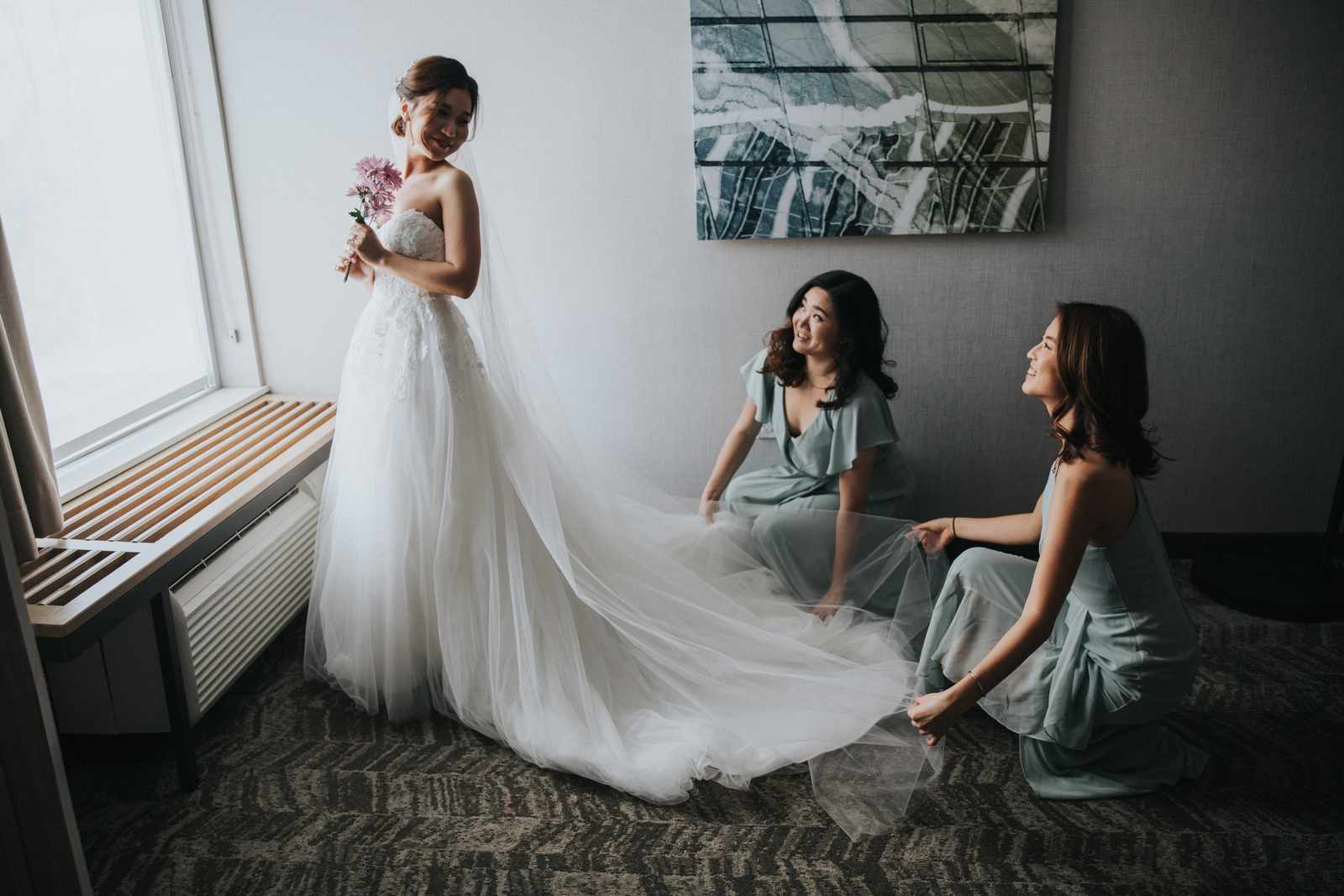 A wonderful winter wedding taking place at the elegant Imperia with church ceremony at the Korean Praise Presbyterian Church in Somerset NJ. We began photographing a few hours before the ceremony began as the bride got ready at a nearby hotel and groom at the church itself. The beginning of the wedding is always the least planned time of the day for us. We arrive and just start capturing anything that catches our eye. The dress, hair and makeup, bridesmaids hanging out, and all the other little moments that happen alongside. Soon it was time for the first look which also was going to take place at the church! With the groom in position his bride made her way up the hallway and into a moment filled with pure joy! We then braved the cold weather to take some photos of the bridal party and couple on the church grounds. The church was soon filled with the wedding guests and the ceremony was ready to begin. This deeply religious Korean wedding ceremony began with an acoustic guitar backing the hymns and flowed beautifully through prayers, vows, and the exchanging of the rings. After a thank you speech given by the bride’s father all of the friends and family headed to the cocktail hour at the Imperia. An hour later, the grand entrances, first dances, and toasts kicked off a reception that can only be described as a giant party full of dancing, laughter, and joy. Every moment from the very beginning to the end was honestly a joy to capture and it was an honor to be the photographer for this wedding.