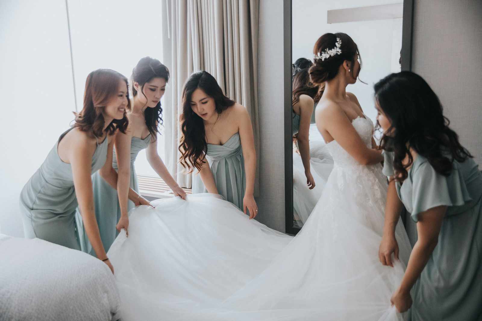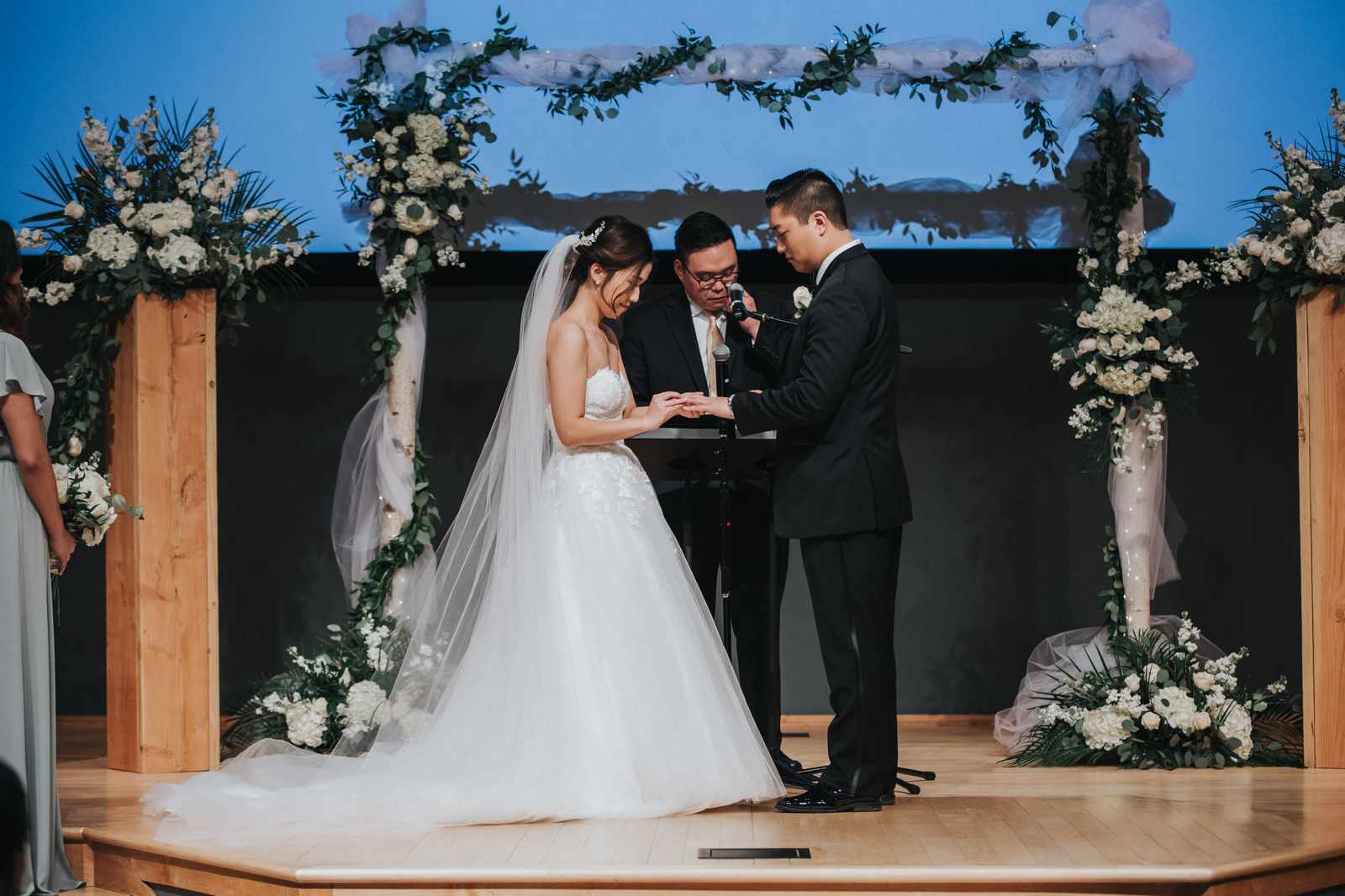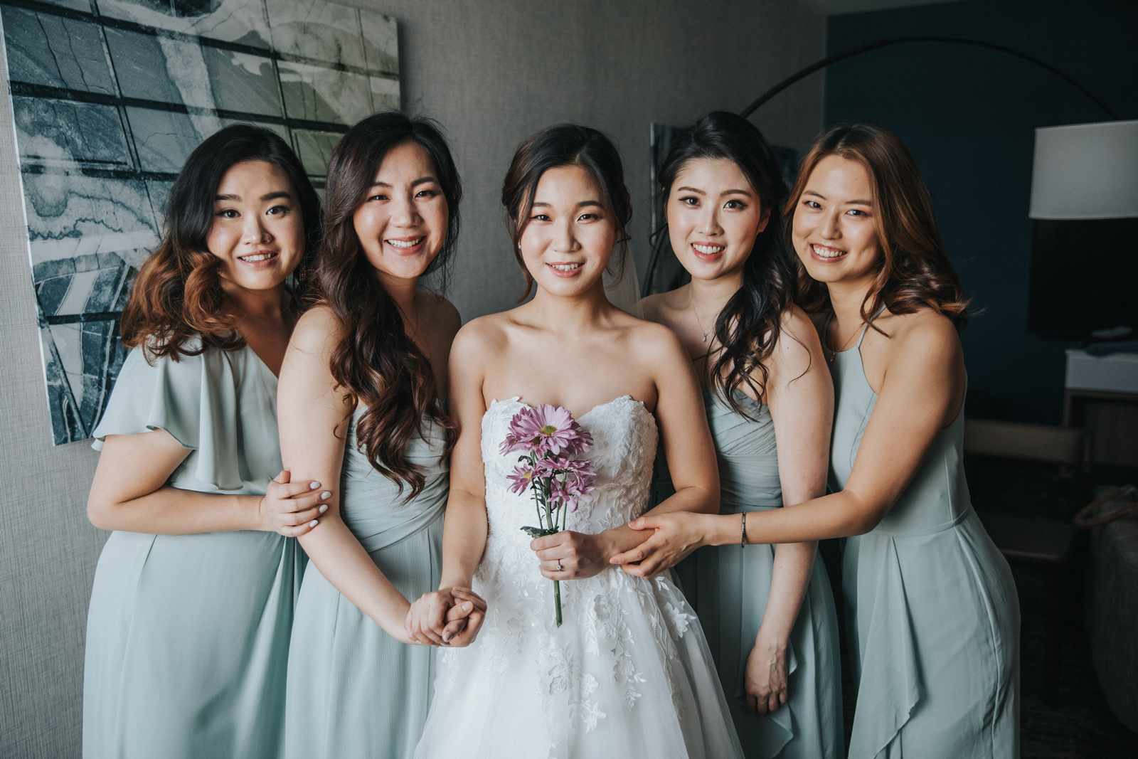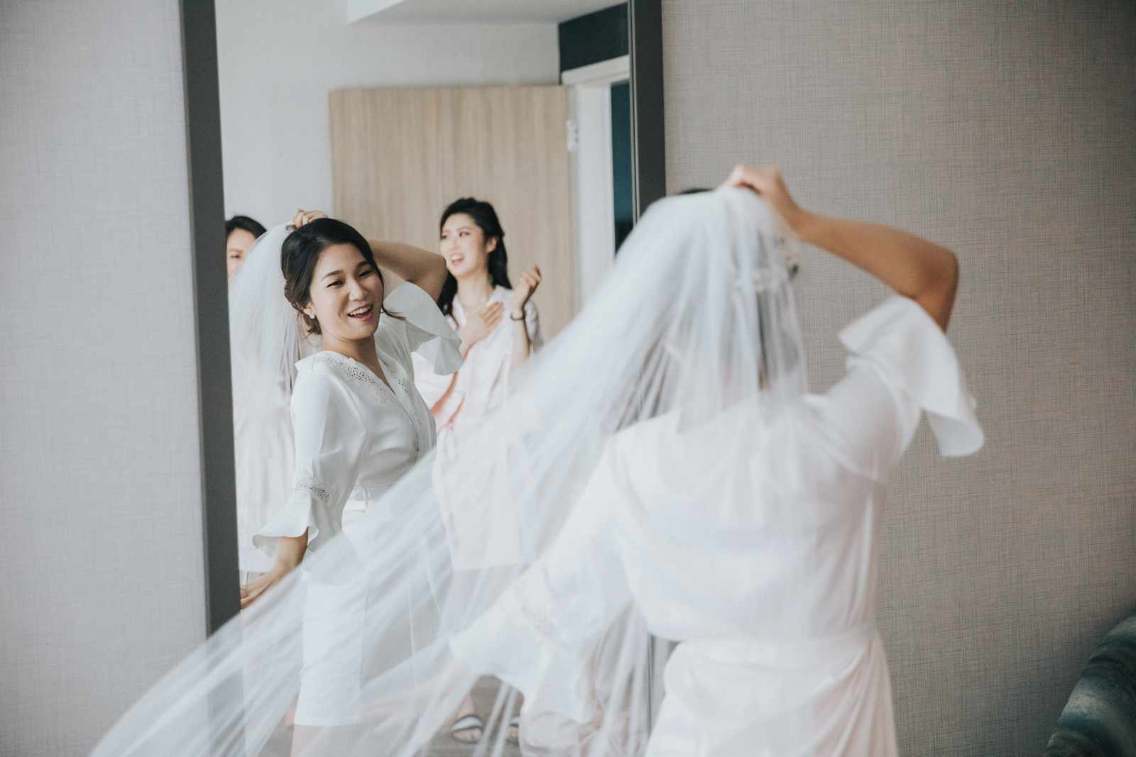 A wonderful winter wedding taking place at the elegant Imperia with church ceremony at the Korean Praise Presbyterian Church in Somerset NJ. We began photographing a few hours before the ceremony began as the bride got ready at a nearby hotel and groom at the church itself. The beginning of the wedding is always the least planned time of the day for us. We arrive and just start capturing anything that catches our eye. The dress, hair and makeup, bridesmaids hanging out, and all the other little moments that happen alongside. Soon it was time for the first look which also was going to take place at the church! With the groom in position his bride made her way up the hallway and into a moment filled with pure joy! We then braved the cold weather to take some photos of the bridal party and couple on the church grounds. The church was soon filled with the wedding guests and the ceremony was ready to begin. This deeply religious Korean wedding ceremony began with an acoustic guitar backing the hymns and flowed beautifully through prayers, vows, and the exchanging of the rings. After a thank you speech given by the bride’s father all of the friends and family headed to the cocktail hour at the Imperia. An hour later, the grand entrances, first dances, and toasts kicked off a reception that can only be described as a giant party full of dancing, laughter, and joy. Every moment from the very beginning to the end was honestly a joy to capture and it was an honor to be the photographer for this wedding.