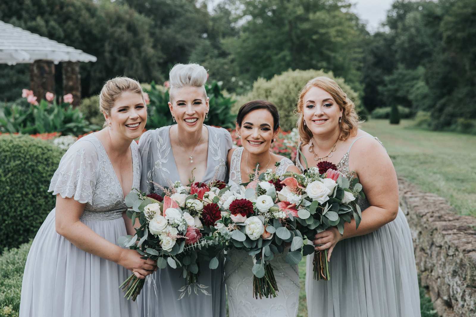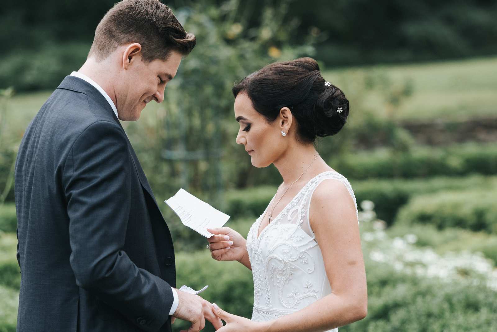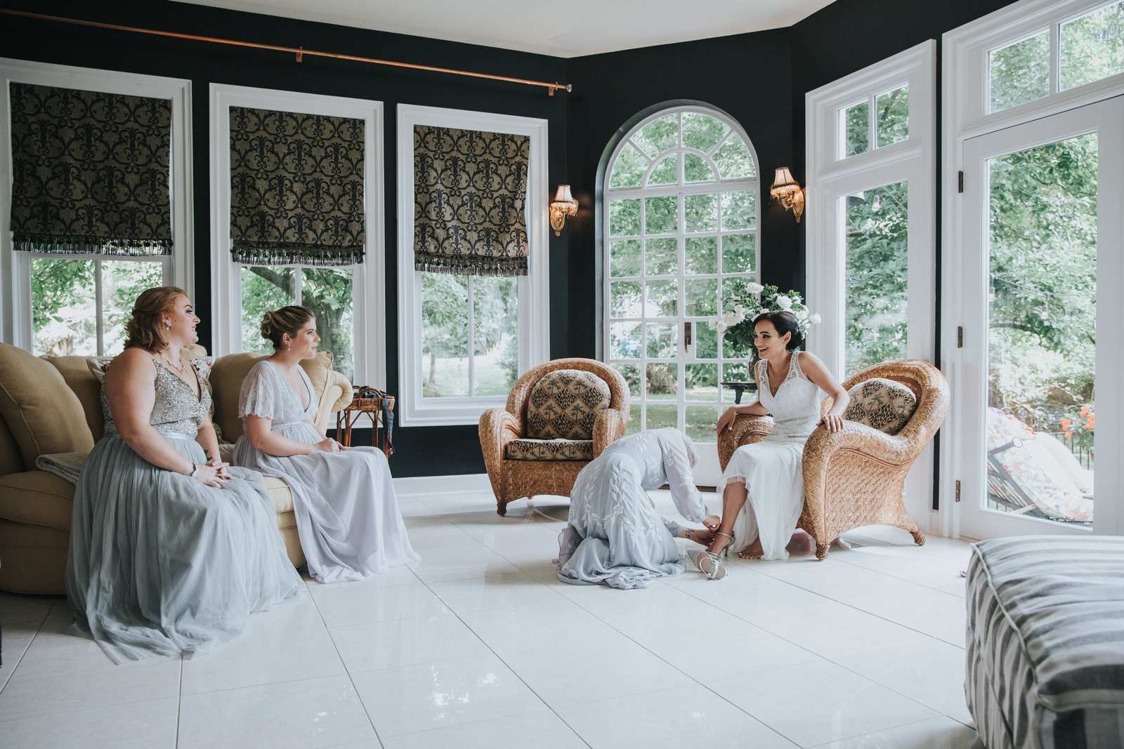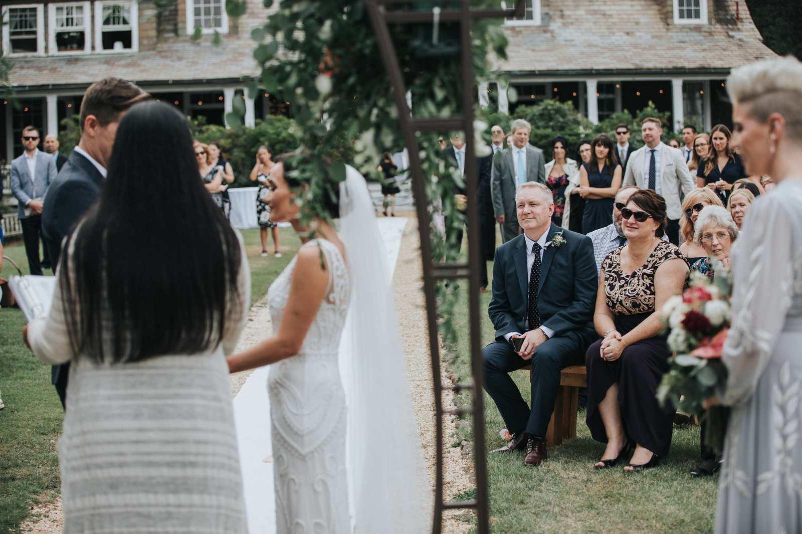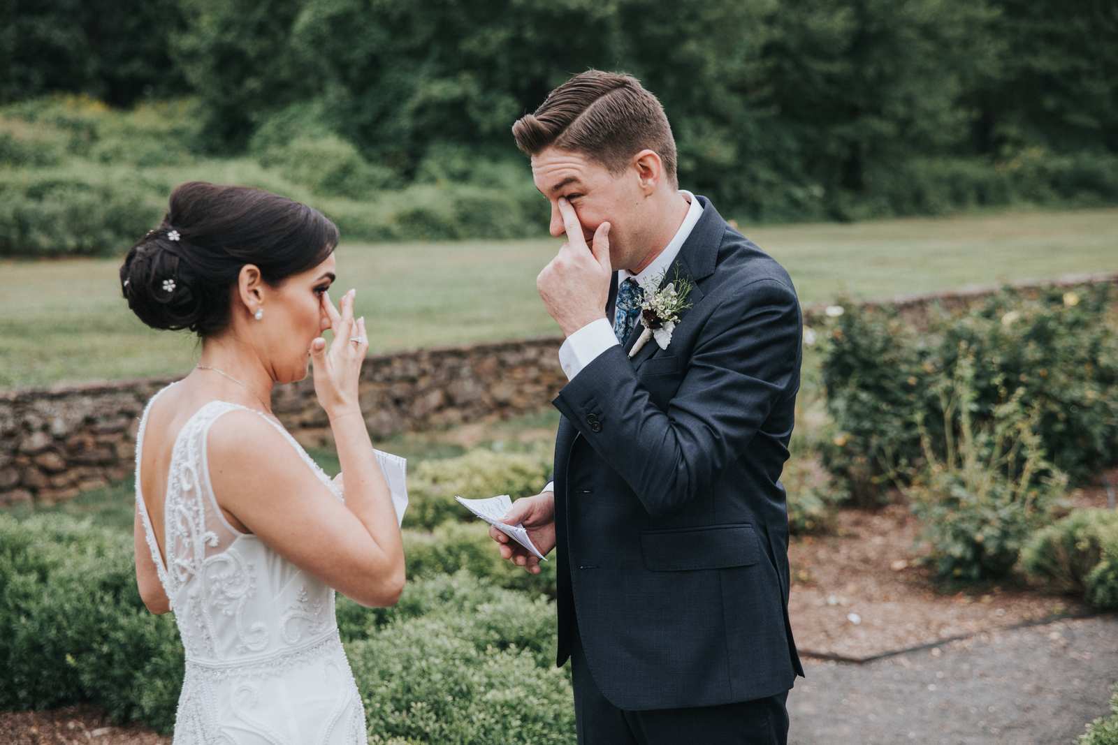 But we began this day at the brides parents beautiful victorian house down the road in Red Bank to capture all the candid getting ready moments of the bride and bridesmaids. We love the photos from this more relaxed atmosphere where everyone just wanted to hang out and have a good time while preparing for the day ahead. But before the ceremony we made our way Deep Cut Gardens in Middleton for the first look! We love that the couple decided to take a moment and read notes that they had written to each other right after the initial reveal. The grounds of the garden were as beautiful as always for all of the couples and bridal party portraits with fields of flowers, greenhouses, and giant trees all making for amazing spots.