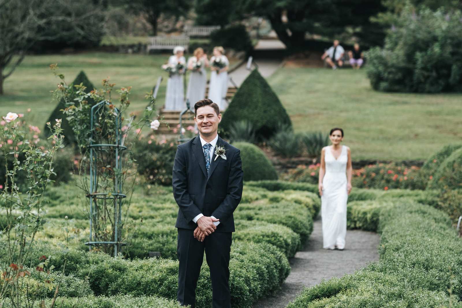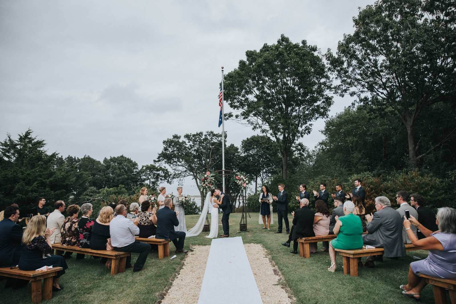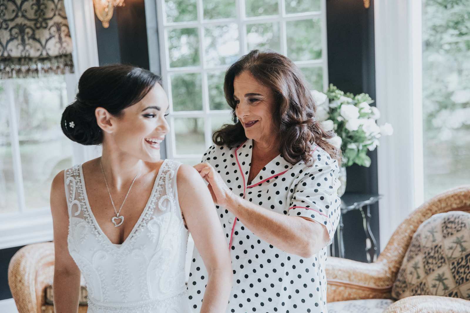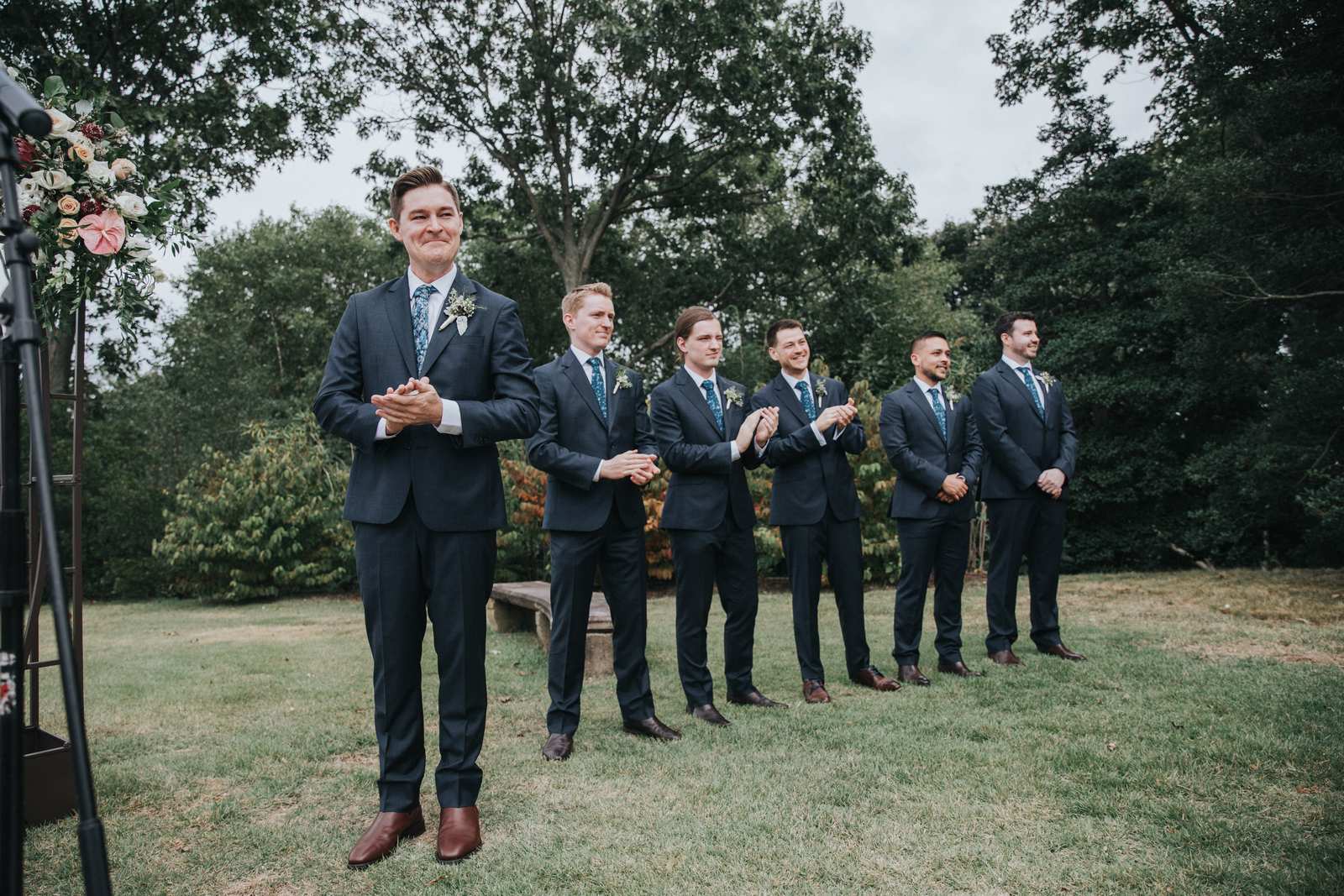 But we began this day at the brides parents beautiful victorian house down the road in Red Bank to capture all the candid getting ready moments of the bride and bridesmaids. We love the photos from this more relaxed atmosphere where everyone just wanted to hang out and have a good time while preparing for the day ahead. But before the ceremony we made our way Deep Cut Gardens in Middleton for the first look! We love that the couple decided to take a moment and read notes that they had written to each other right after the initial reveal. The grounds of the garden were as beautiful as always for all of the couples and bridal party portraits with fields of flowers, greenhouses, and giant trees all making for amazing spots.