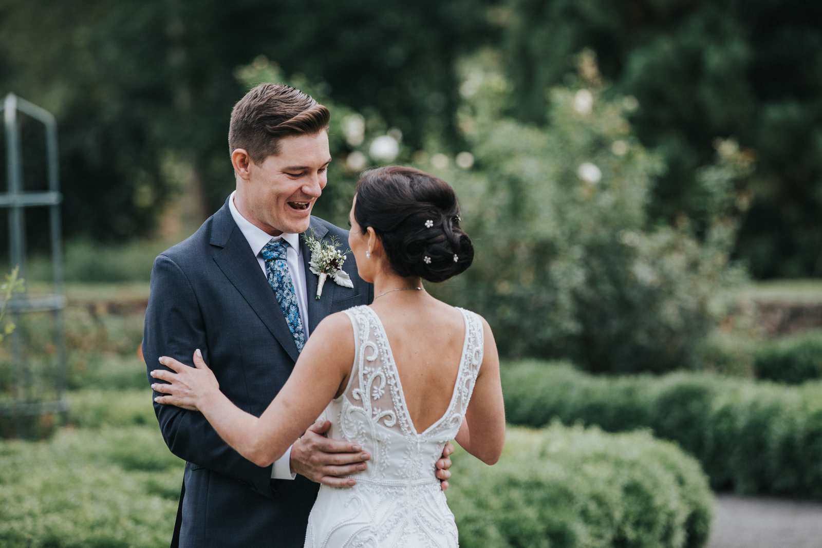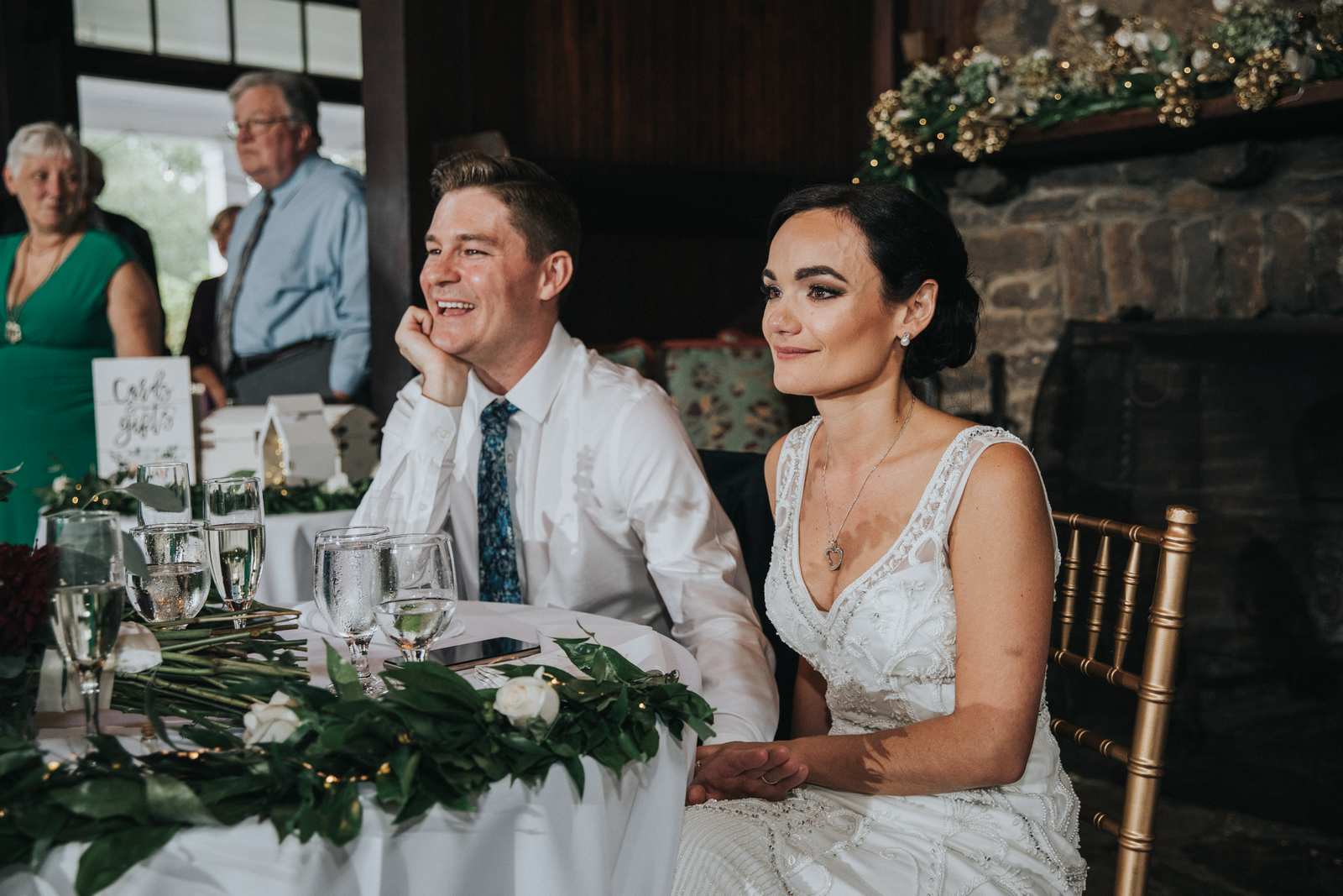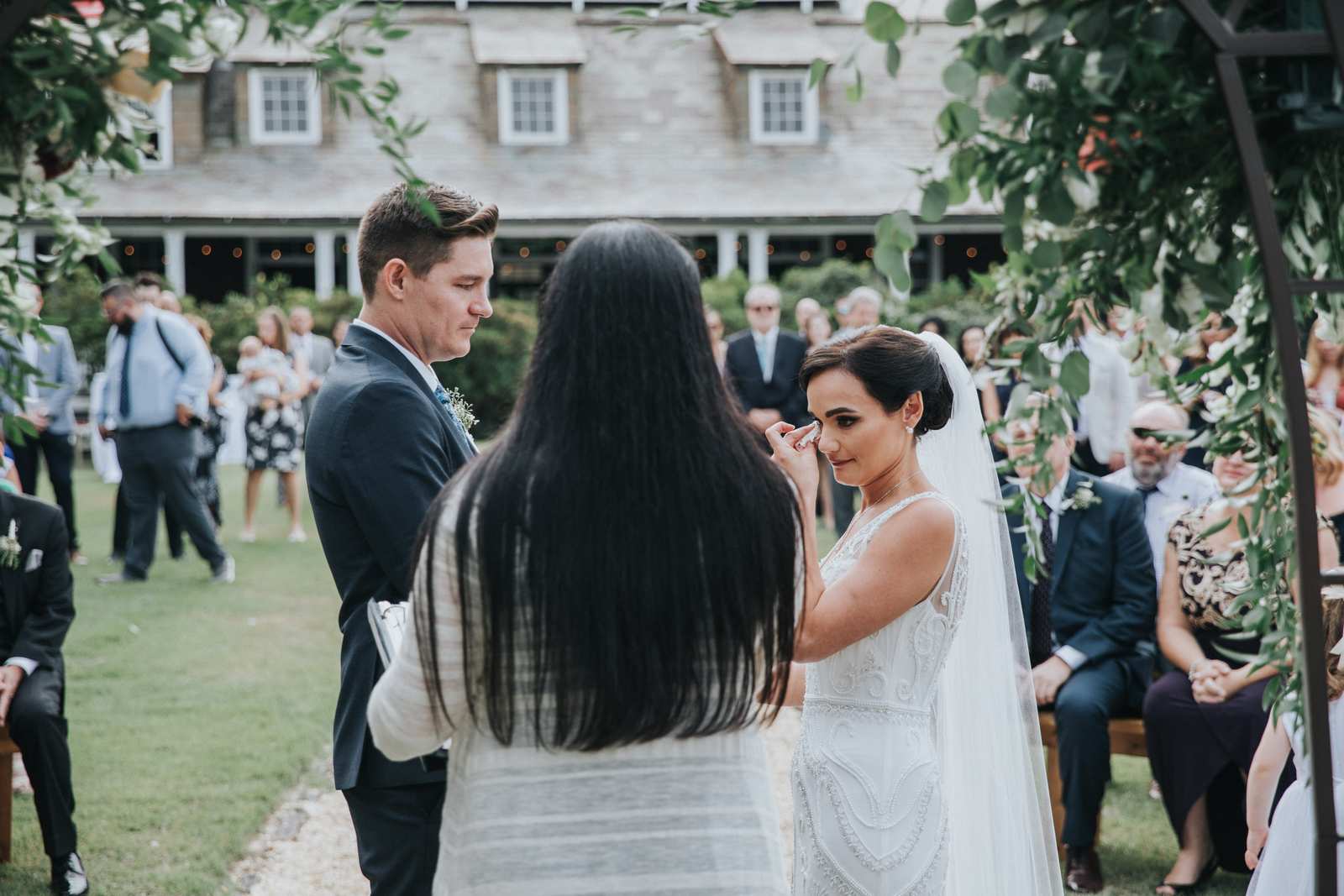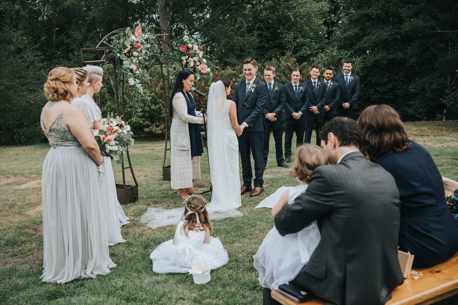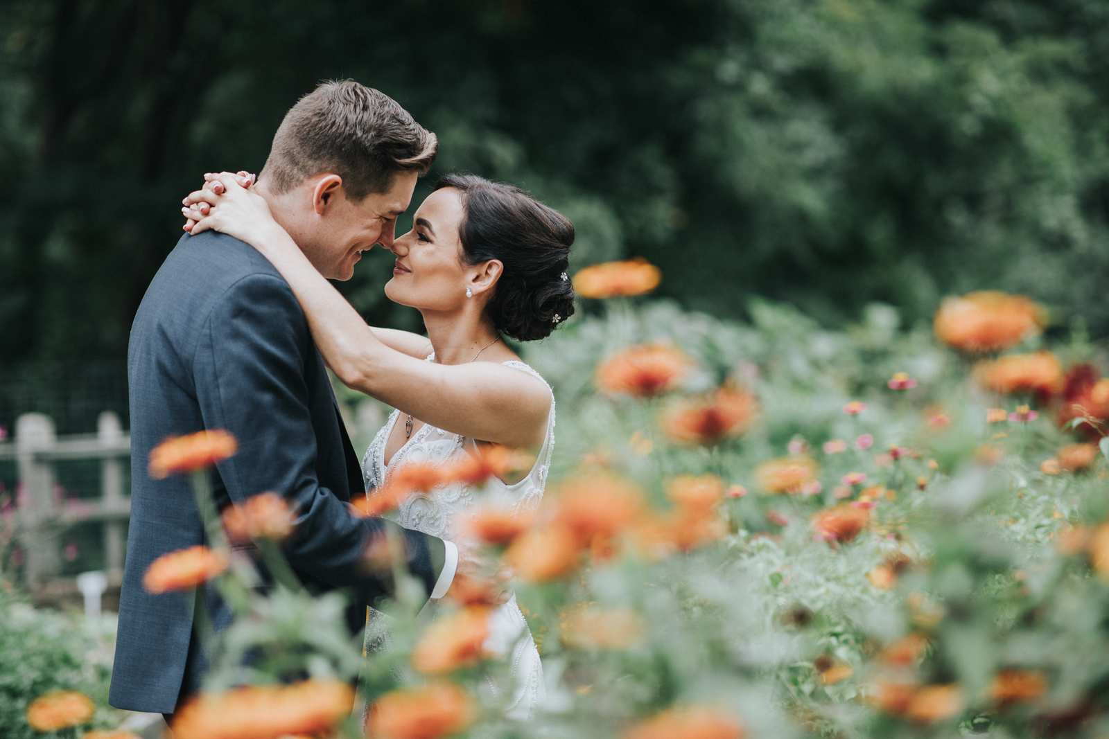 But we began this day at the brides parents beautiful victorian house down the road in Red Bank to capture all the candid getting ready moments of the bride and bridesmaids. We love the photos from this more relaxed atmosphere where everyone just wanted to hang out and have a good time while preparing for the day ahead. But before the ceremony we made our way Deep Cut Gardens in Middleton for the first look! We love that the couple decided to take a moment and read notes that they had written to each other right after the initial reveal. The grounds of the garden were as beautiful as always for all of the couples and bridal party portraits with fields of flowers, greenhouses, and giant trees all making for amazing spots.