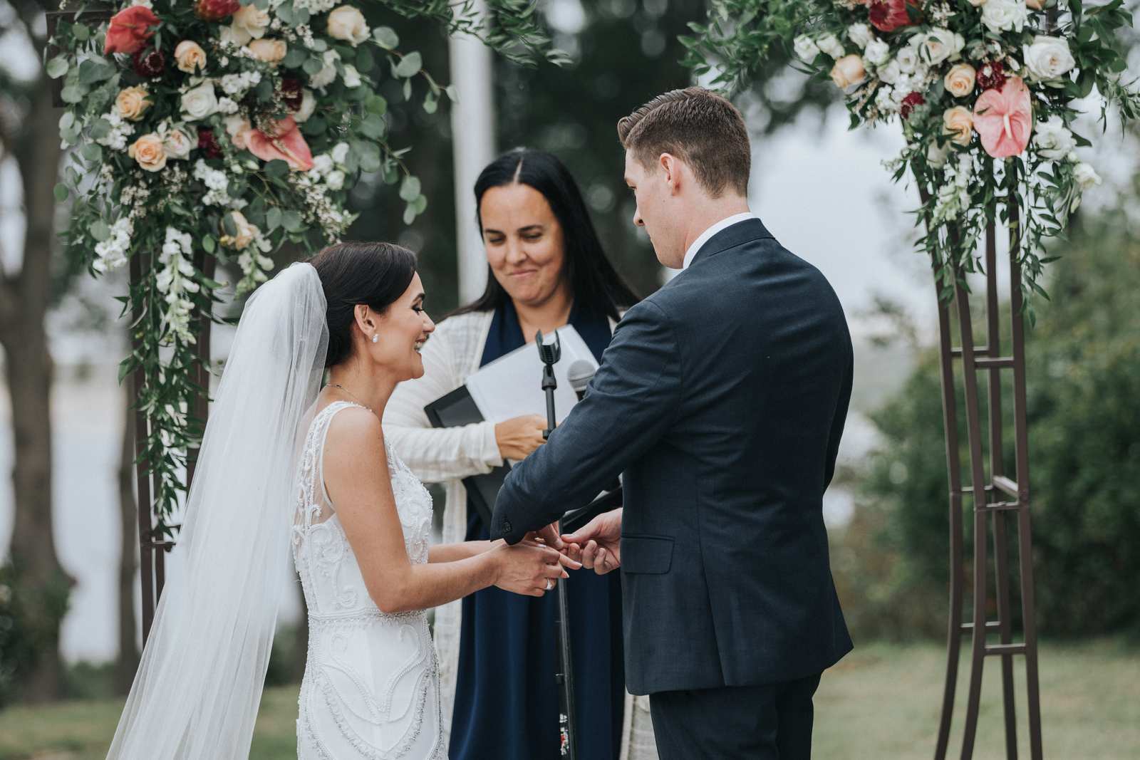 The Water Witch Club is one of the most unique wedding venues we have come across and photographed at in NJ. After driving up windy dirt roads in Atlantic Highlands you come across a charming building built in the very early 1900s located at one of the highest points on the entire Atlantic Seaboard. It is full of interesting little nooks and crannies for guests (and photographers) to explore and the courtyard overlooks the Sandy Hook Bay and Atlantic Ocean making it the perfect spot for a ceremony!