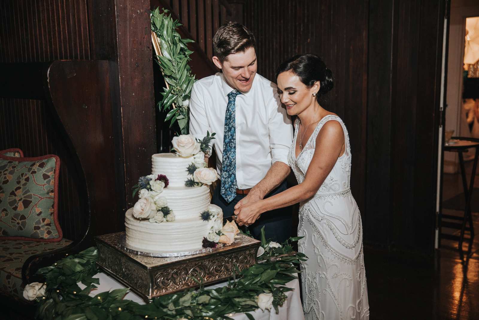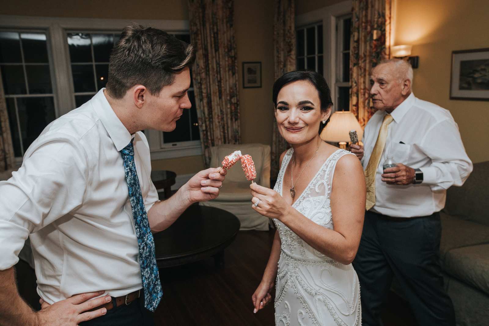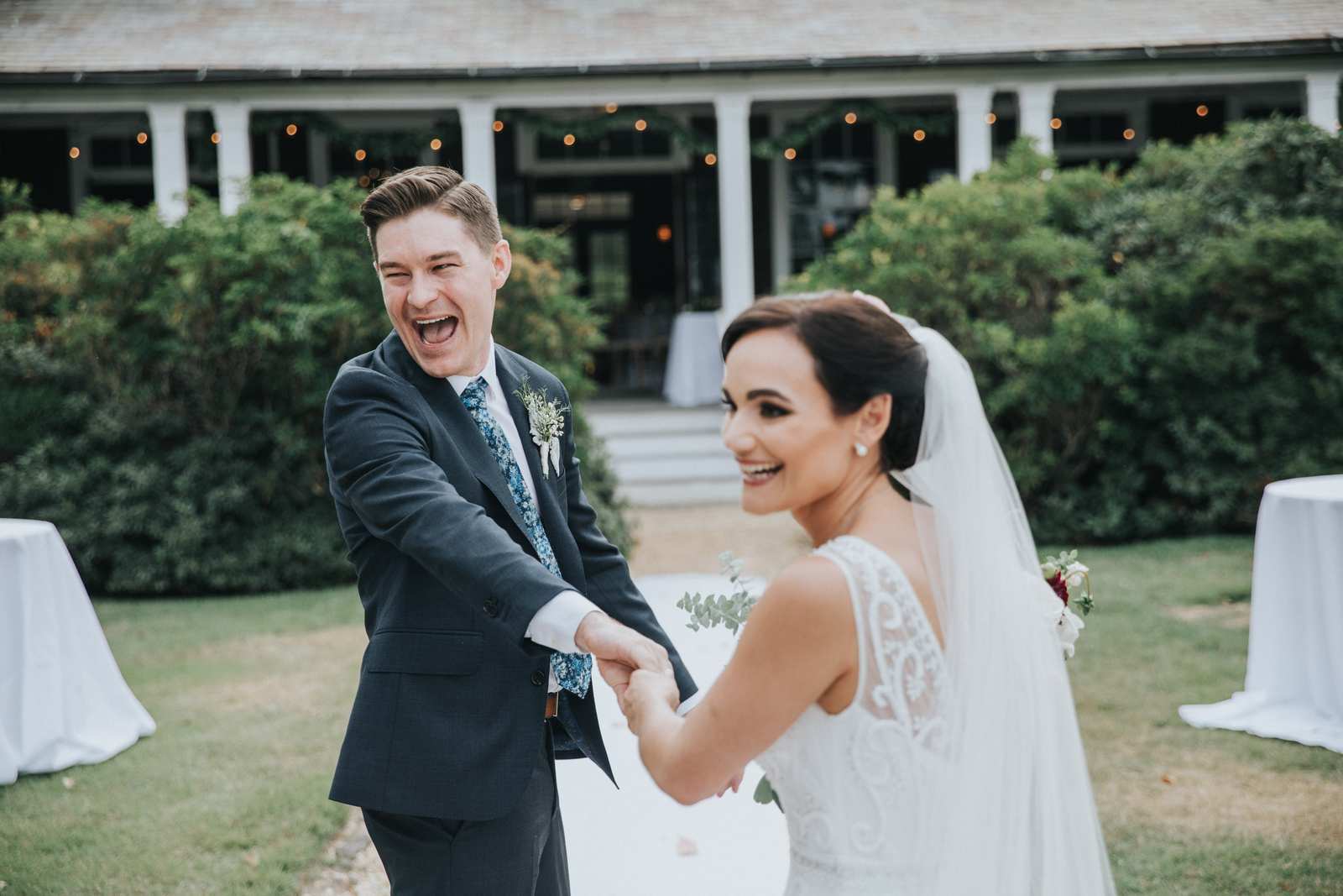 We then finally headed up those dirt roads to the Water Witch Club itself for the final preparations before the ceremony! With friends and family all spread around the courtyard on various benches it gave a very intimate feel as the couple exchange vows, rings, and a kiss. The cocktail hour and reception was split between the inside of the club and the various porches which allowed everyone to explore and mingle all throughout the grounds as opposed to being stuck at their tables. As much as we enjoyed photographing all the big moments with the entrances, toasts, and dances in this unique ballroom we had just as much fun just capturing everyone having a great time throughout the night.