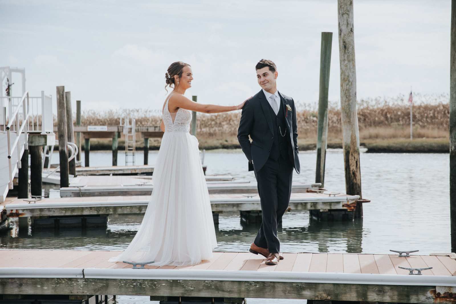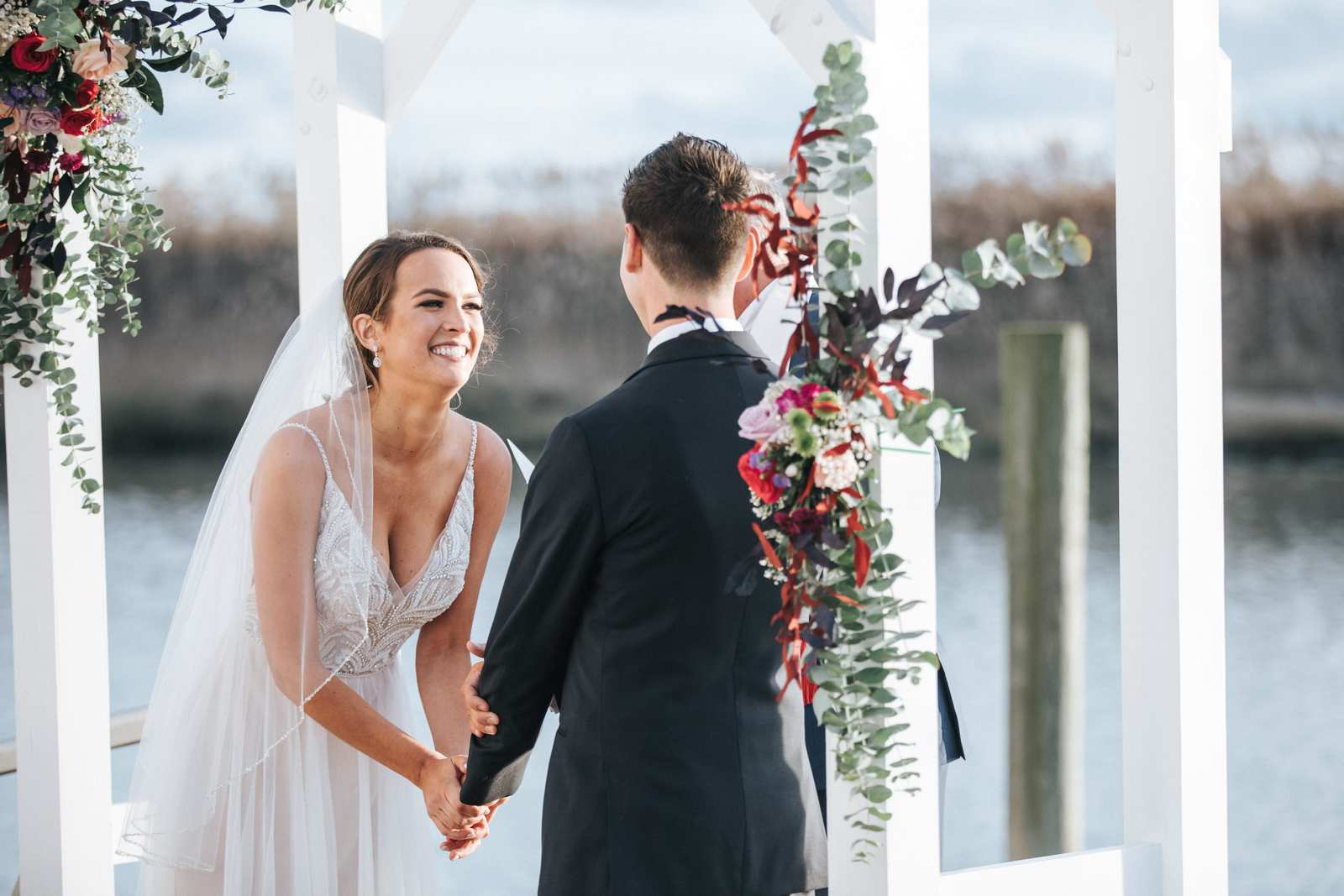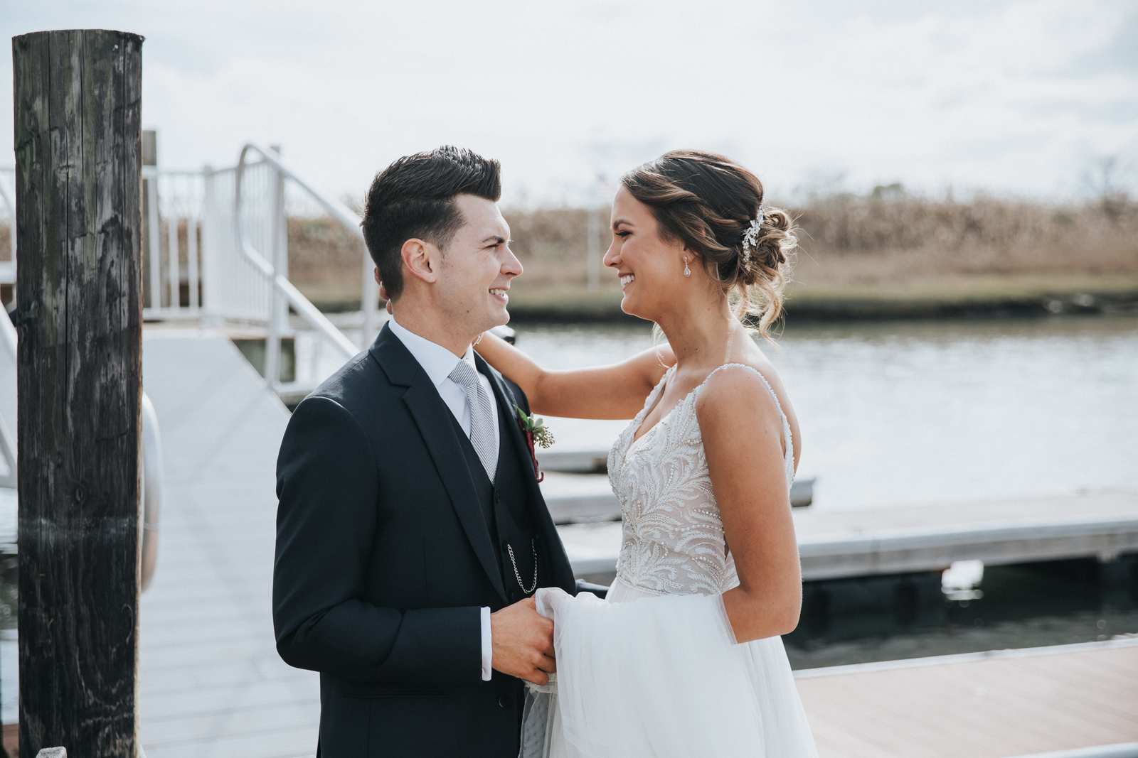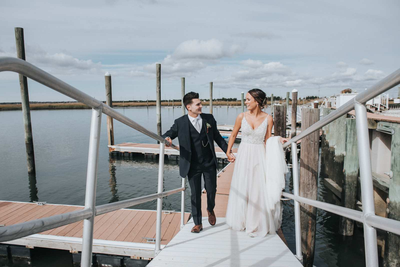 Our favorite photos from this wedding day that took place at the Sea Isle City Yacht Club at the Jersey Shore! It was the perfect day and perfect couple to capture photos of during the getting ready, the waterfront ceremony on the docks, portraits on the beach, and reception in the yacht club’s ballroom.