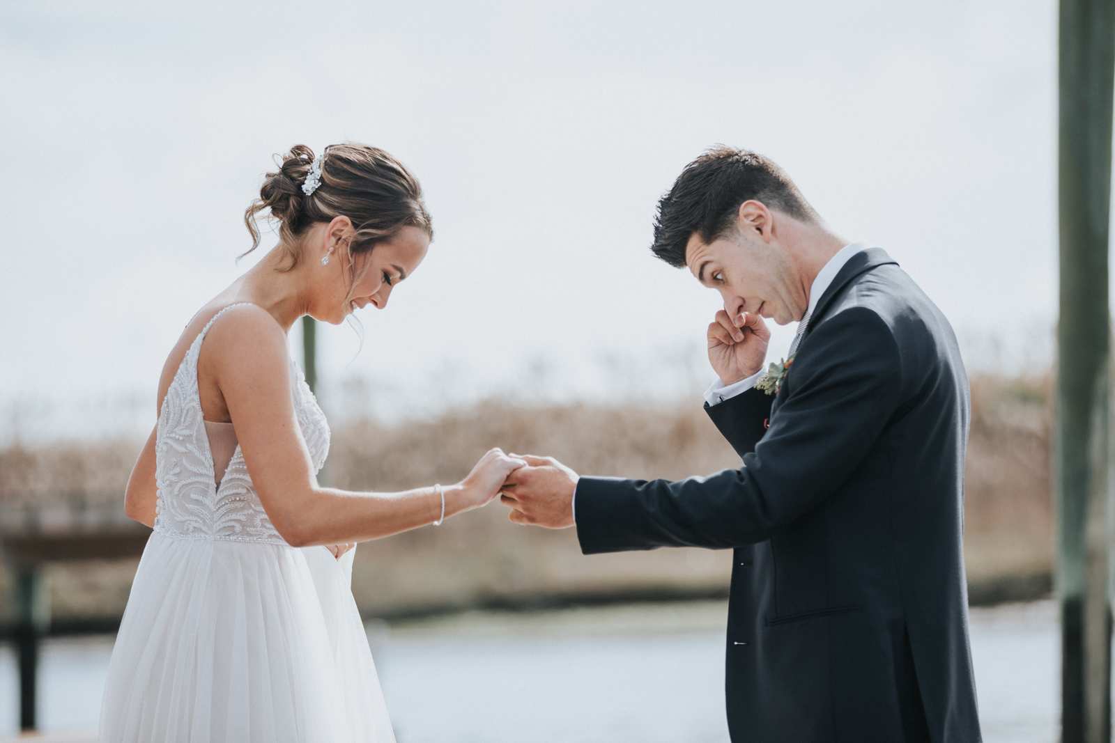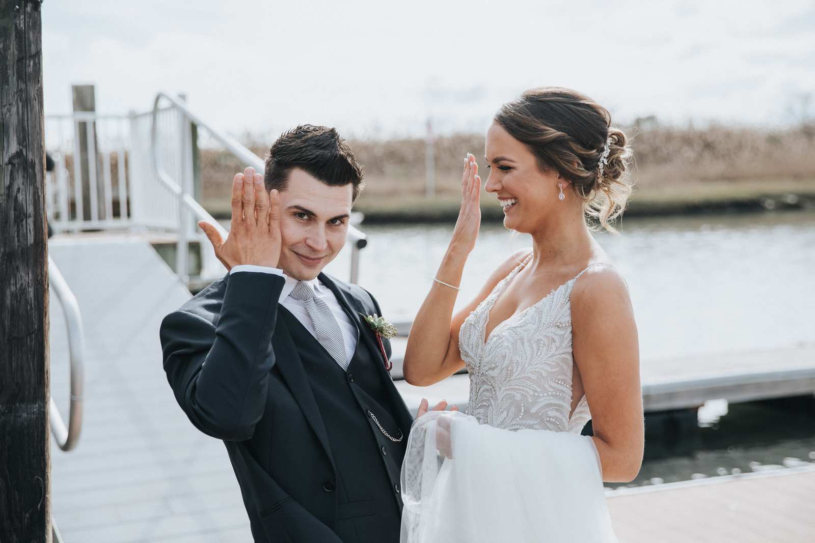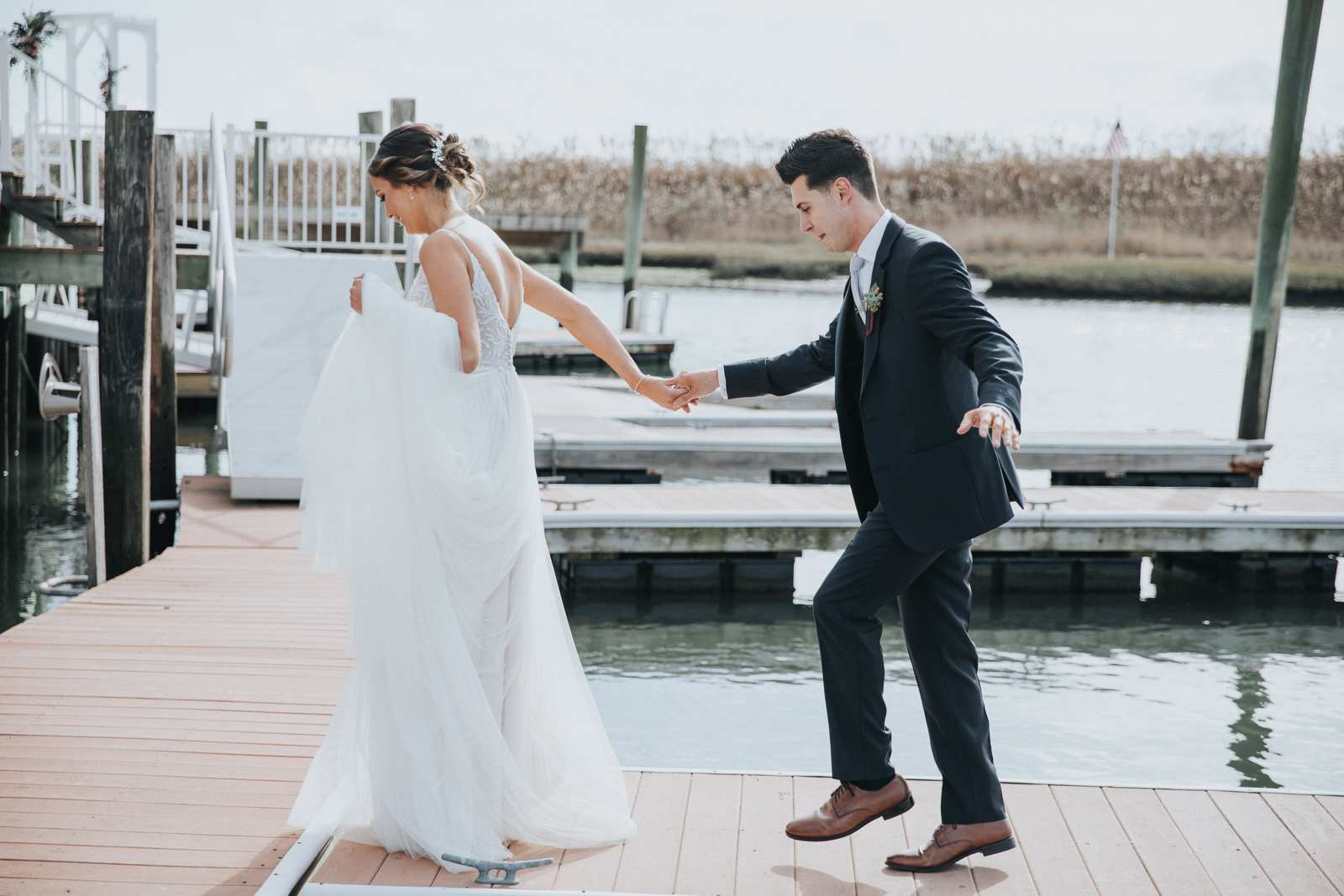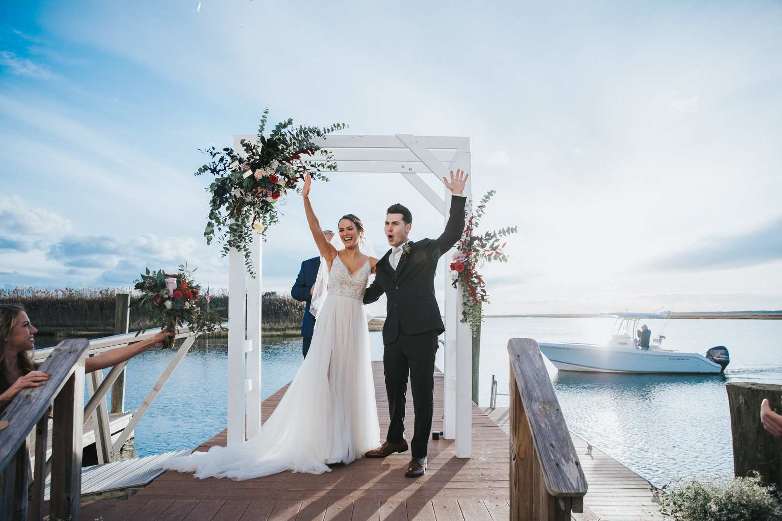 Our favorite photos from this wedding day that took place at the Sea Isle City Yacht Club at the Jersey Shore! It was the perfect day and perfect couple to capture photos of during the getting ready, the waterfront ceremony on the docks, portraits on the beach, and reception in the yacht club’s ballroom.